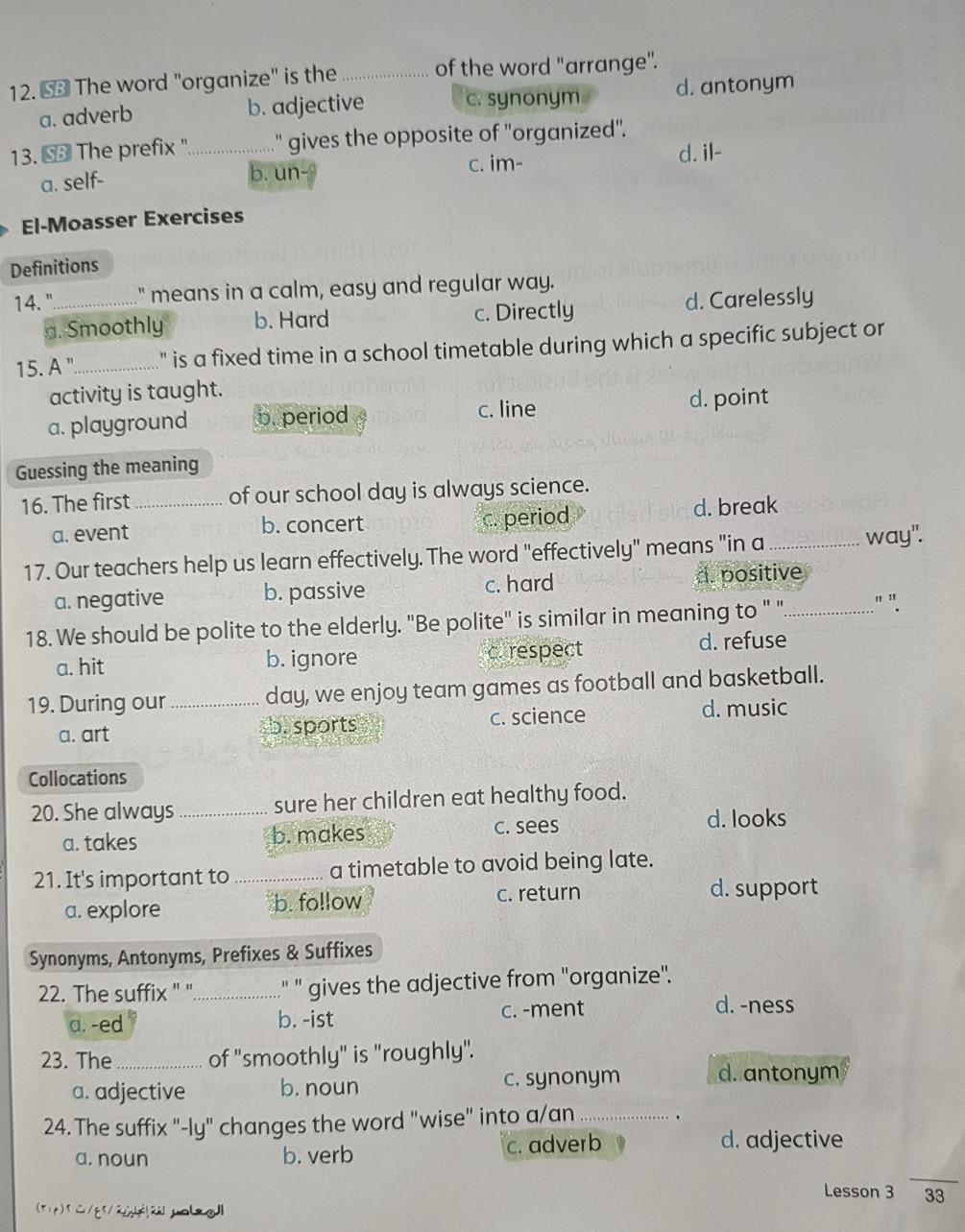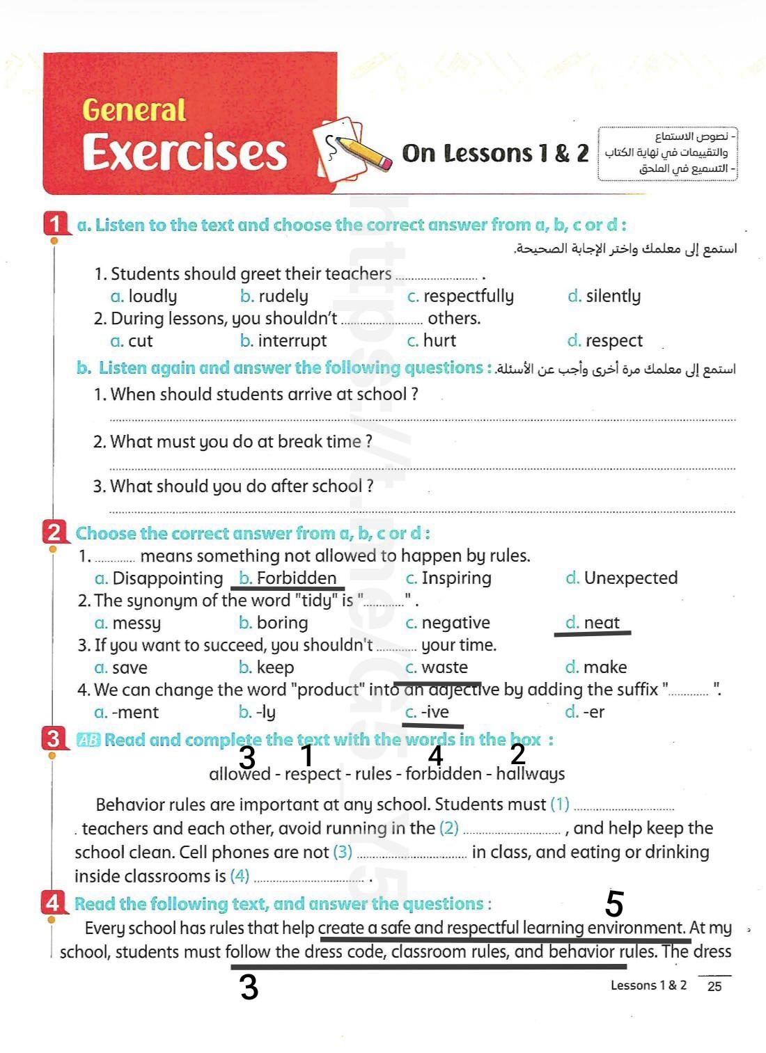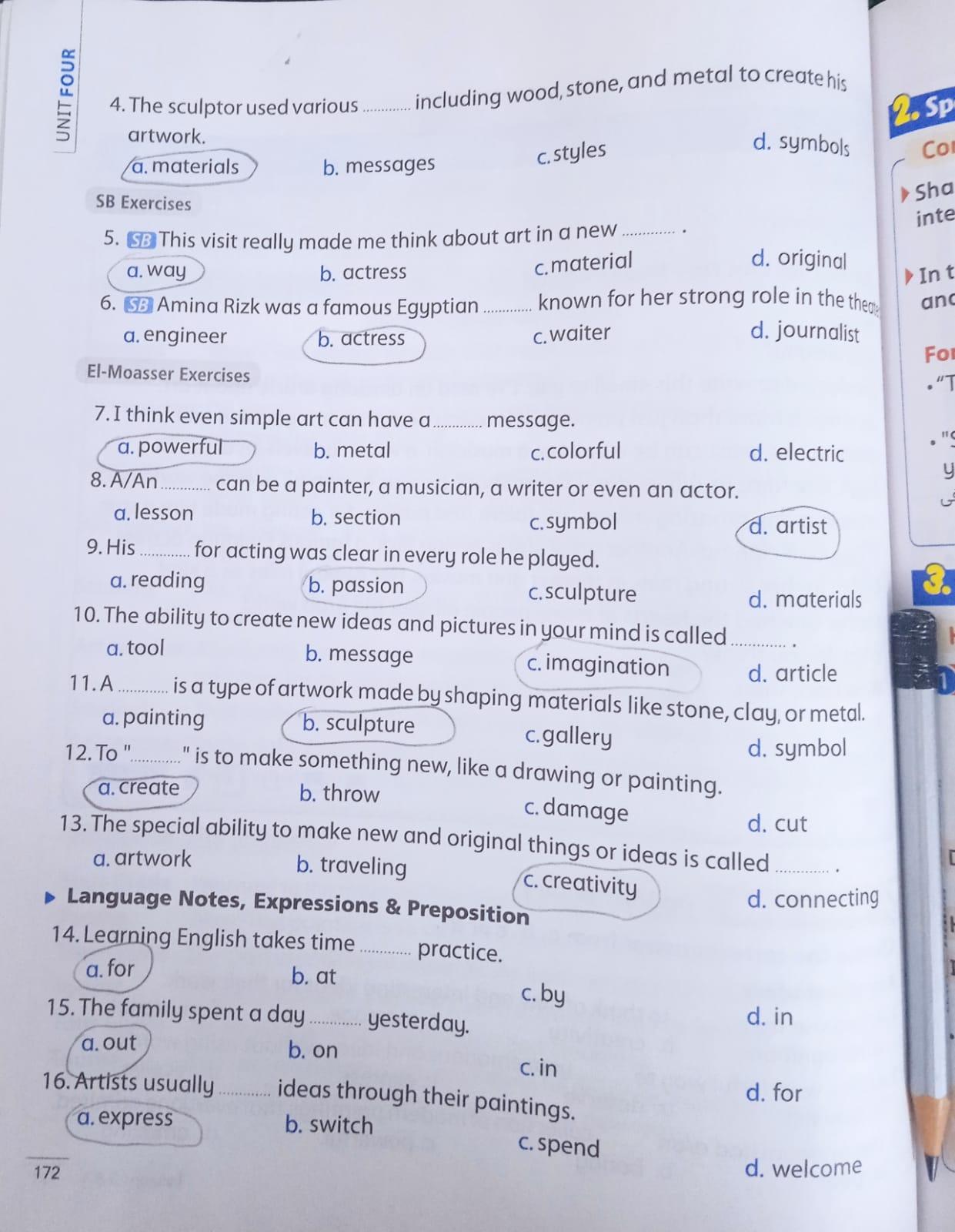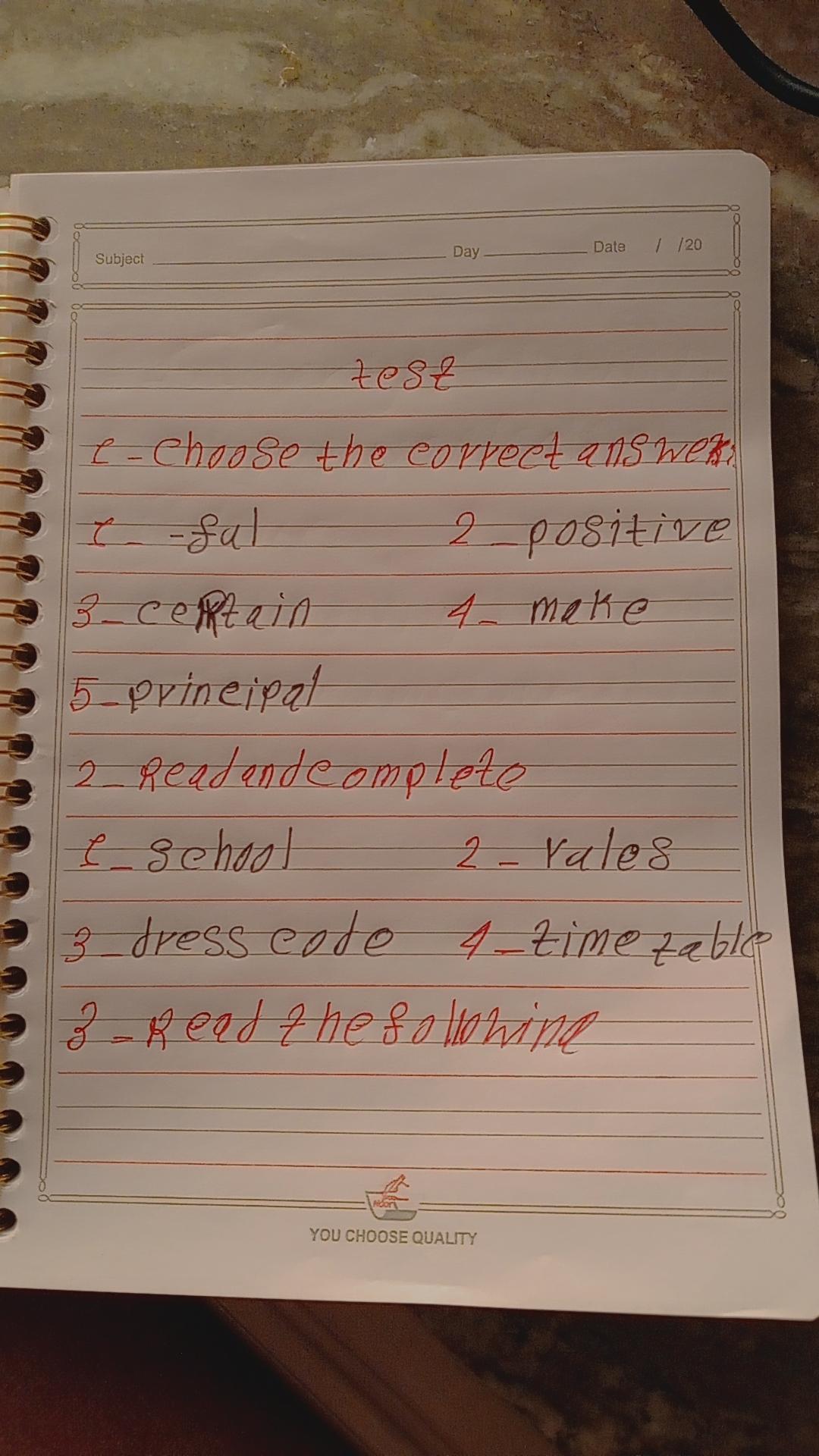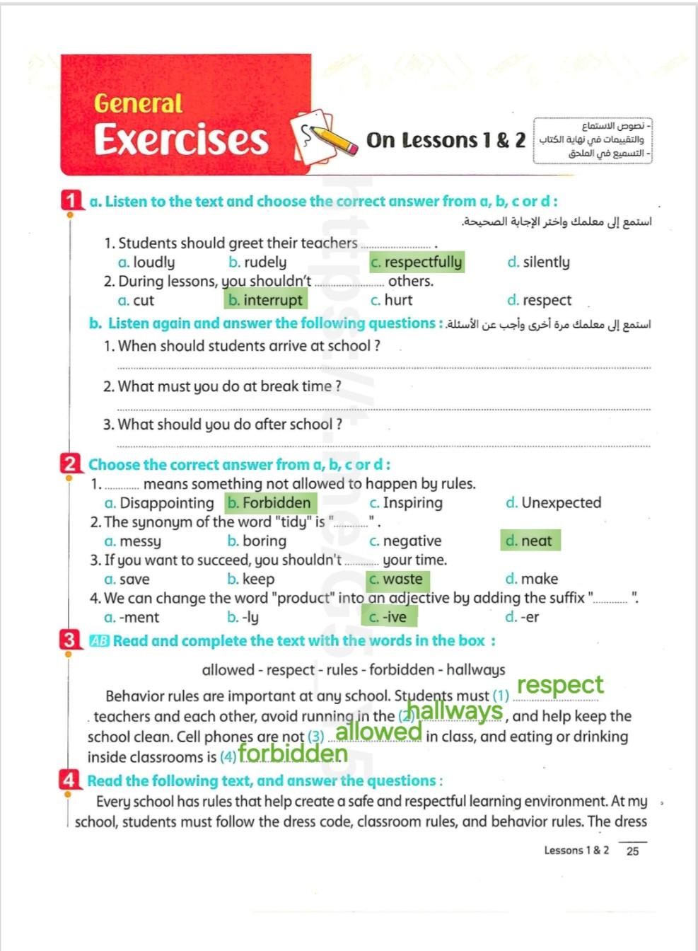 Today, we answered the test on U.9 on pages (132,133, and 134) and the general exercise on Review 3 on pages (137, 138, 139)… Page 140 is left for next time in sha’allah. Our homework for today is to write a paragraph (page 134) on job skills