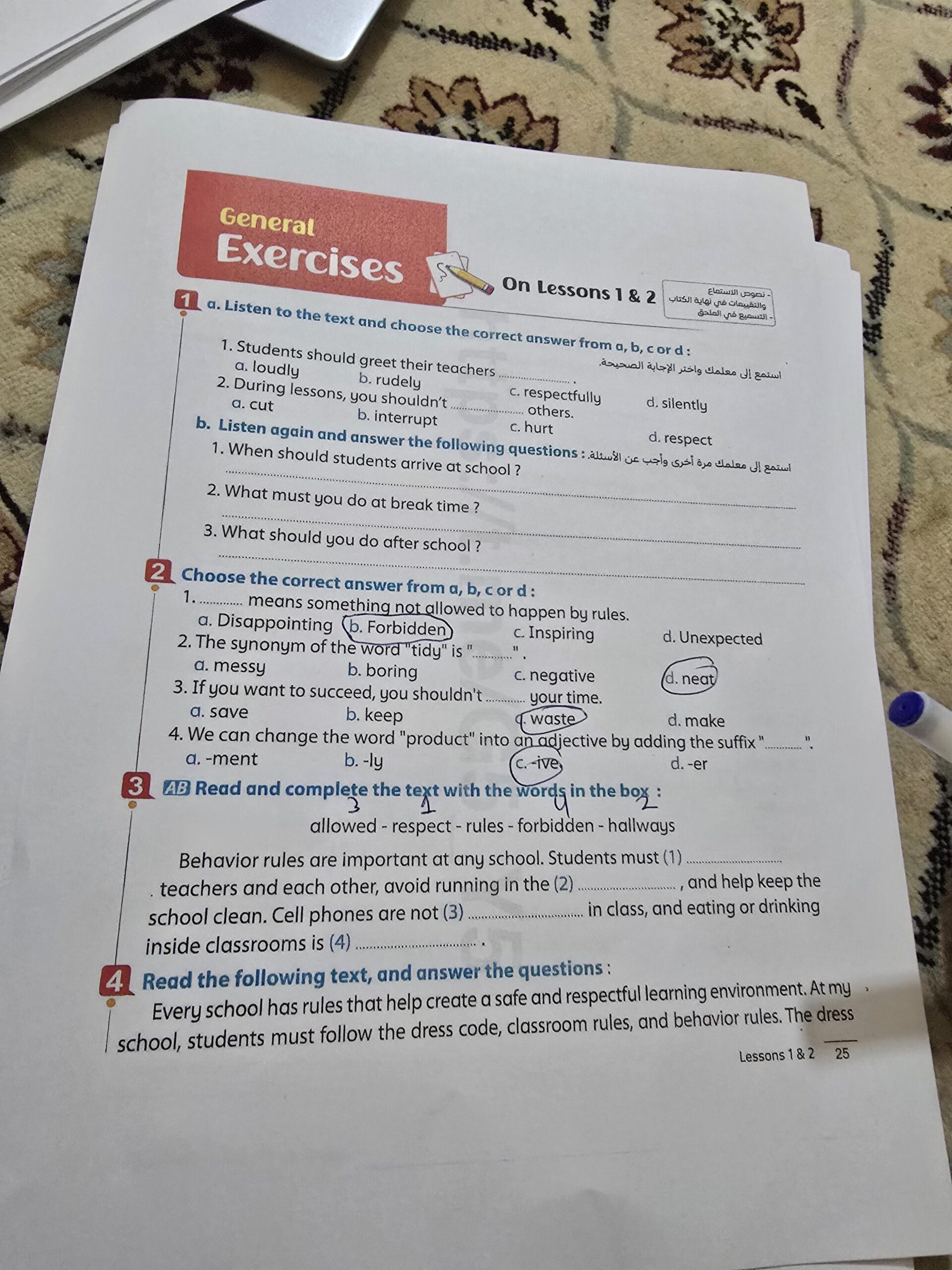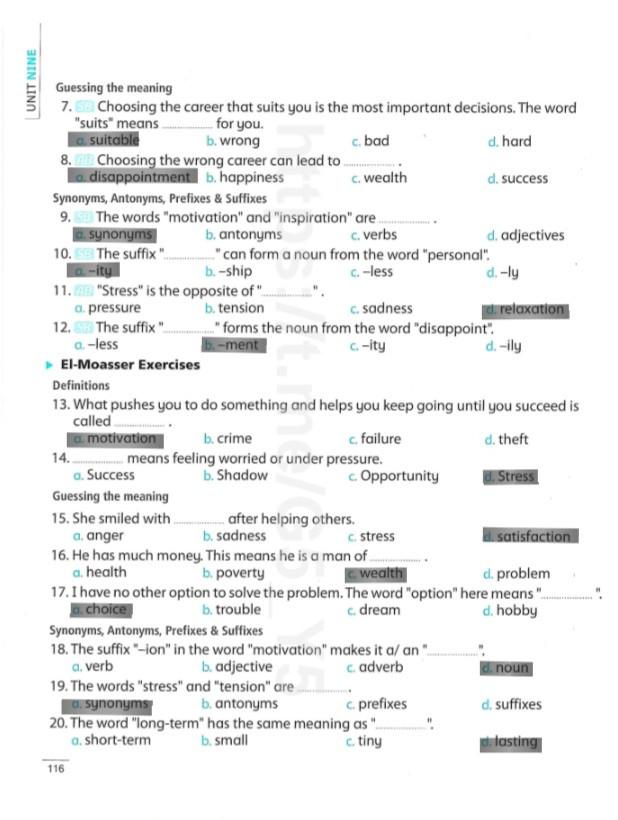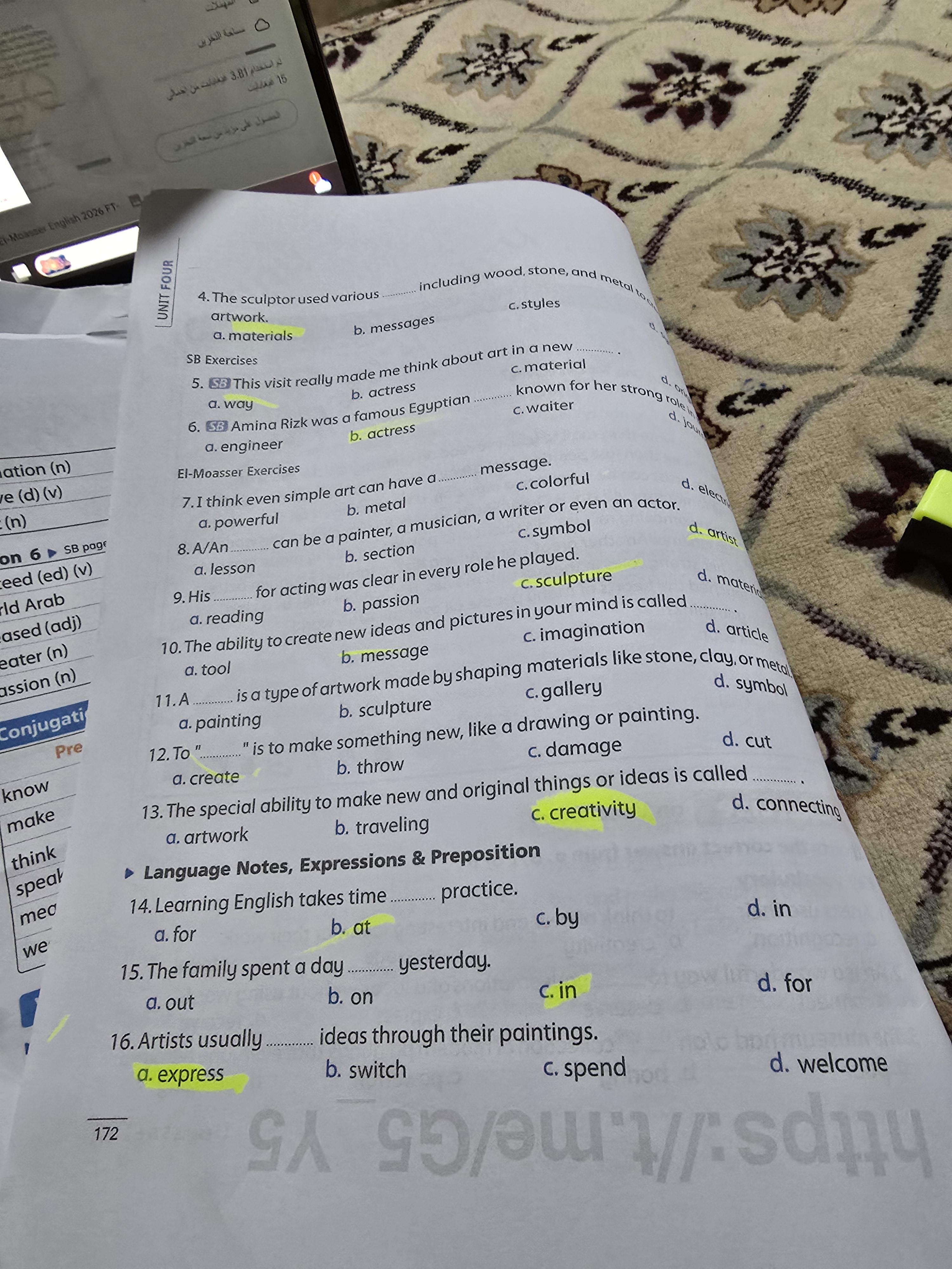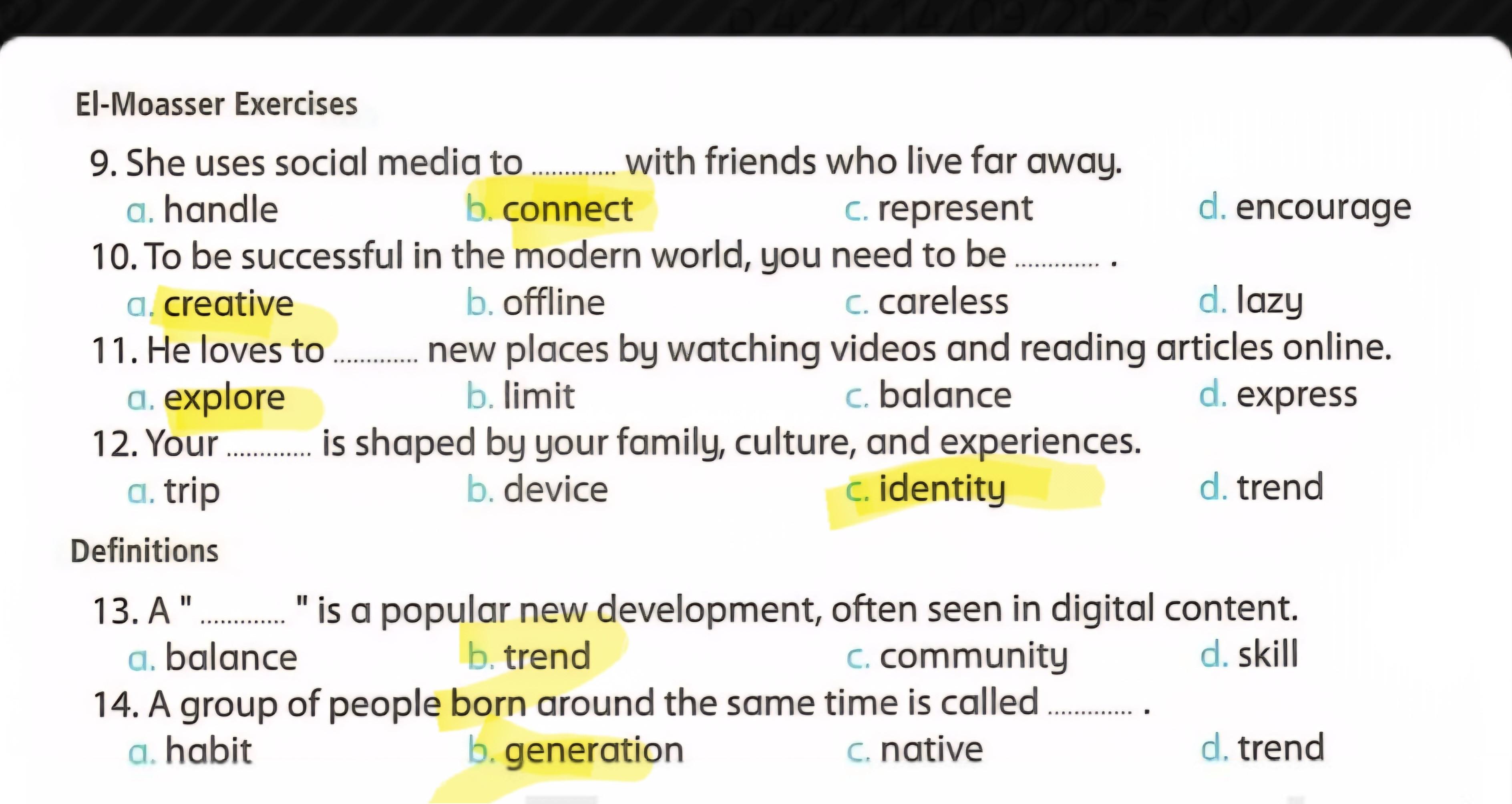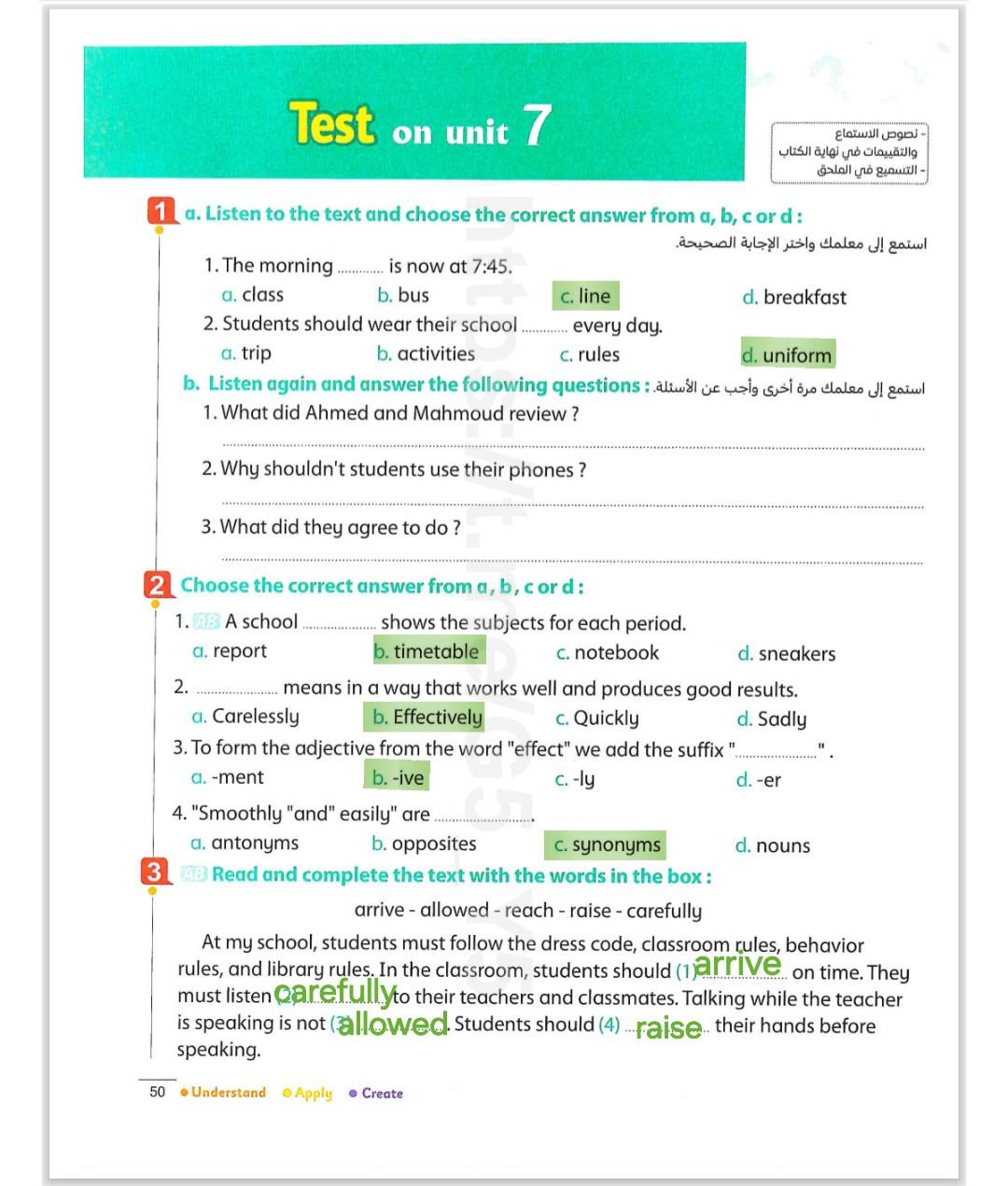 Today, we answered the test on U.9 on pages (132,133, and 134) and the general exercise on Review 3 on pages (137, 138, 139)… Page 140 is left for next time in sha’allah. Our homework for today is to write a paragraph (page 134) on job skills