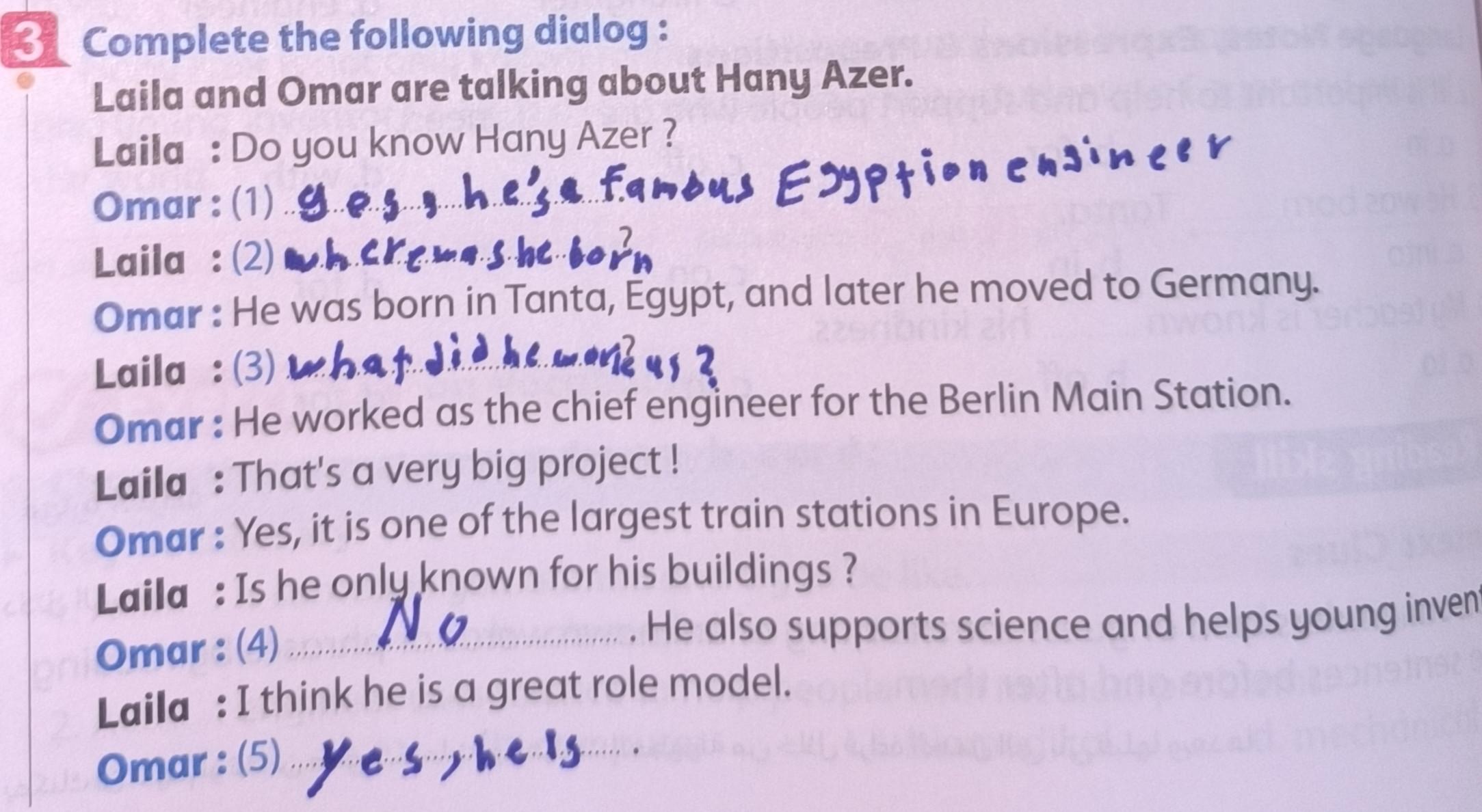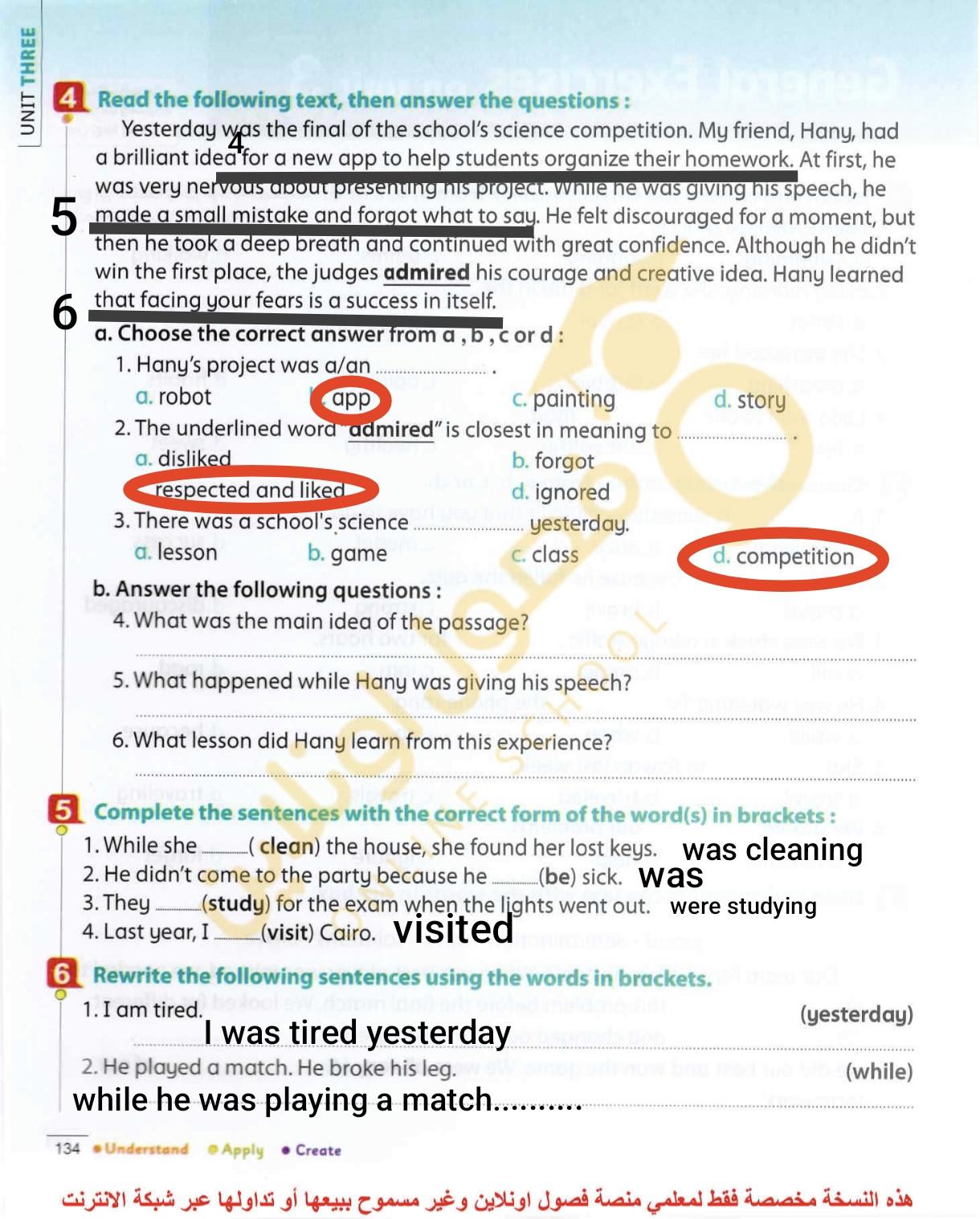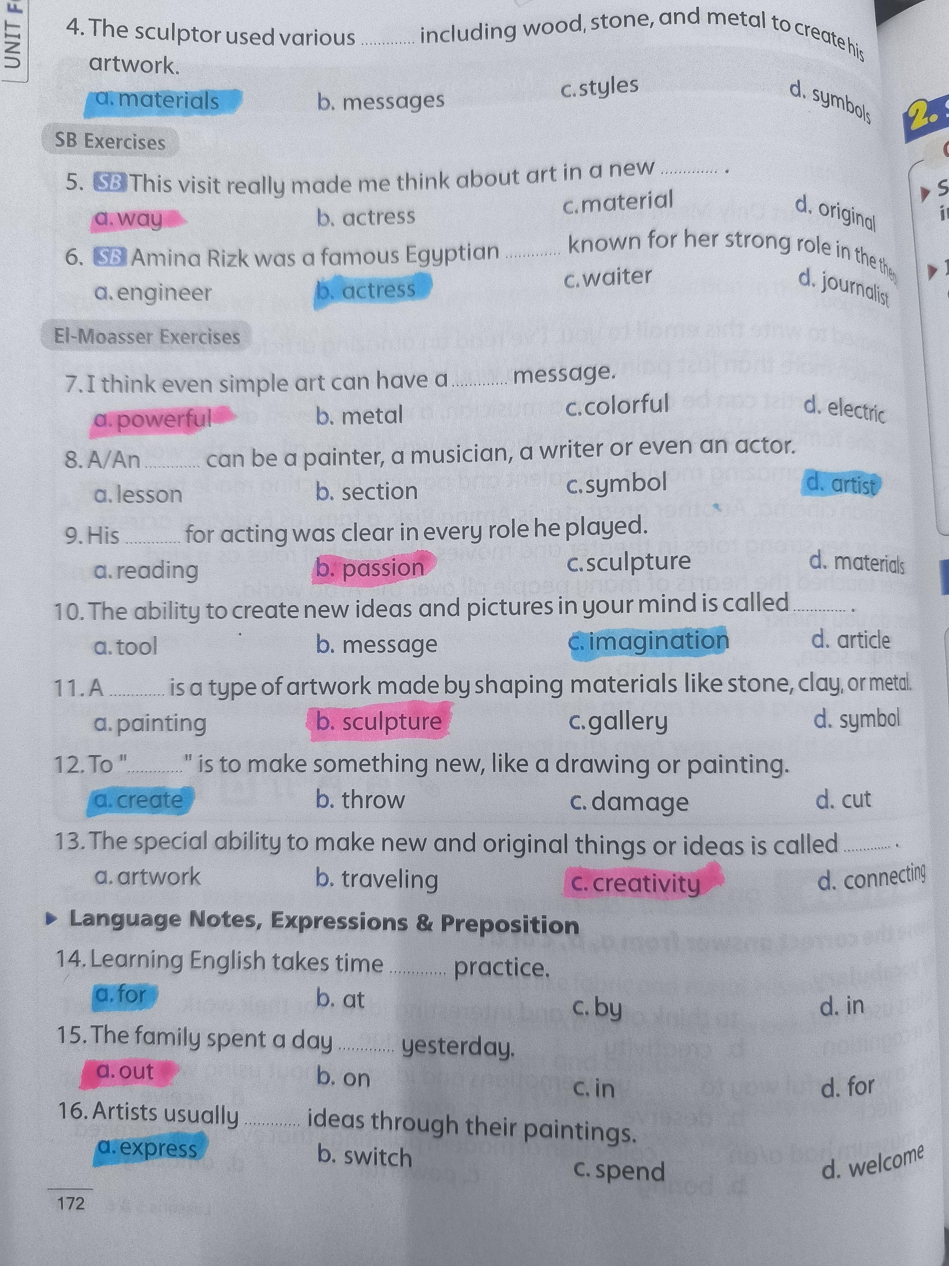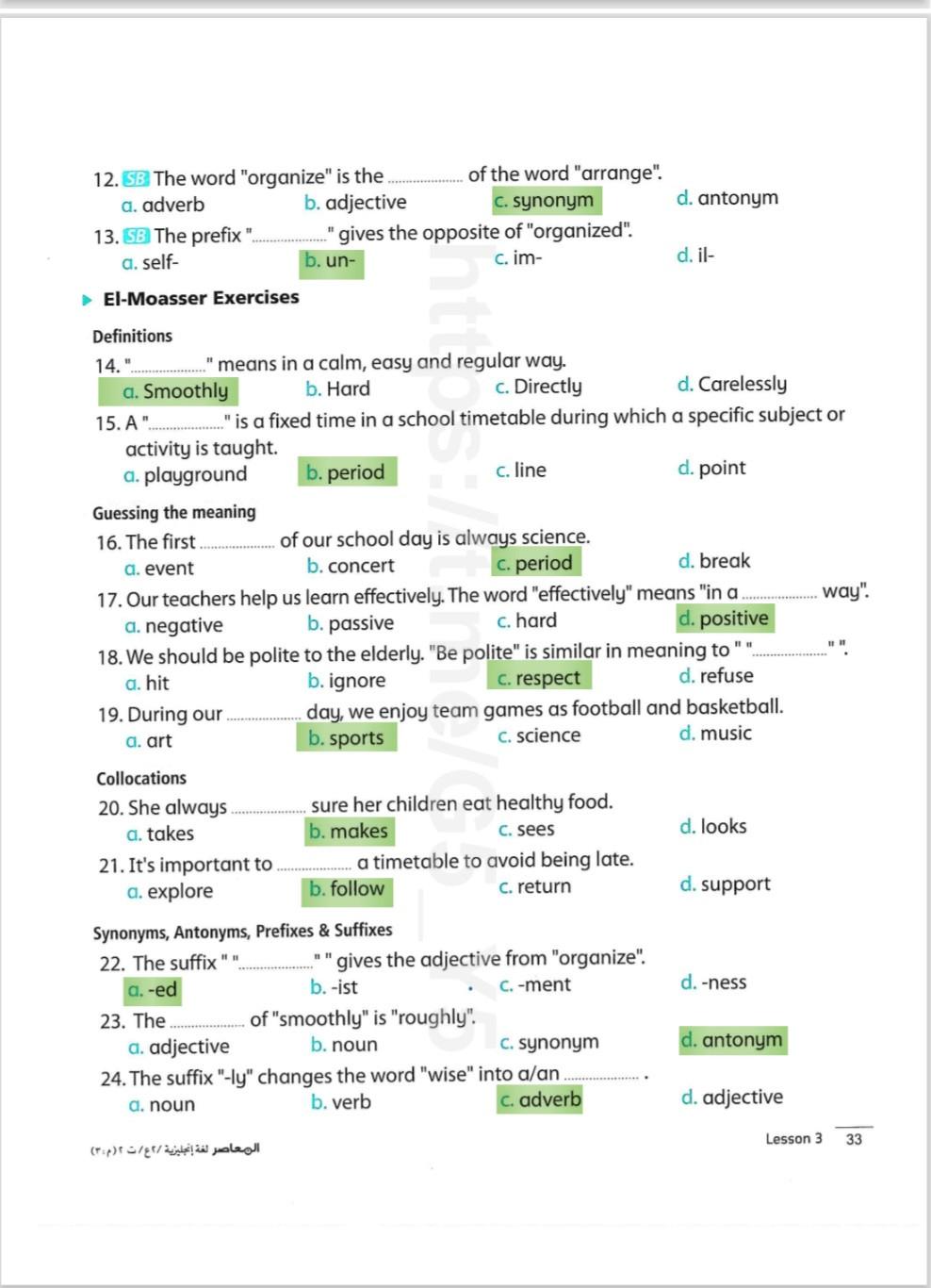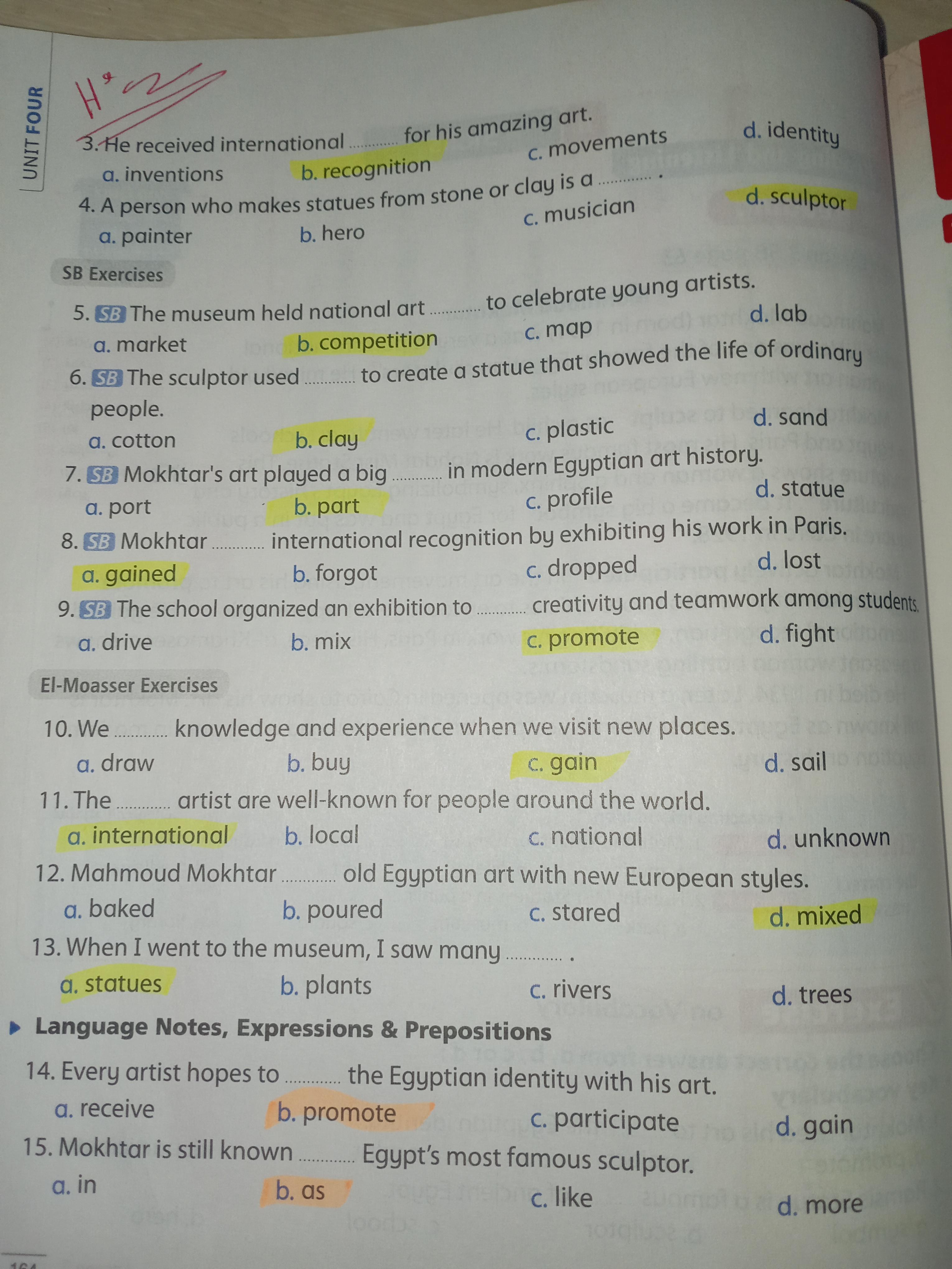 Today, we answered the test on U.9 on pages (132,133, and 134) and the general exercise on Review 3 on pages (137, 138, 139)… Page 140 is left for next time in sha’allah. Our homework for today is to write a paragraph (page 134) on job skills