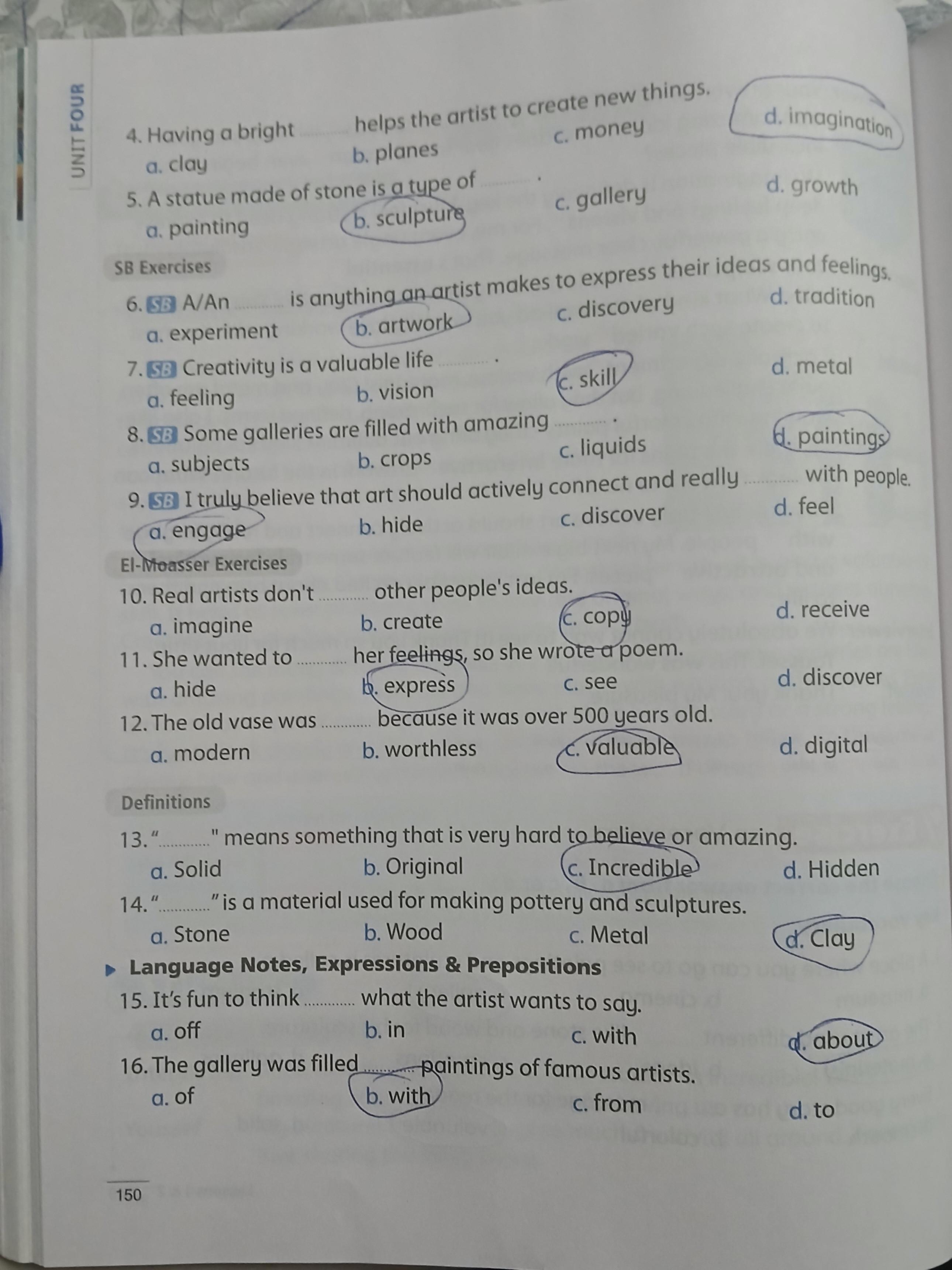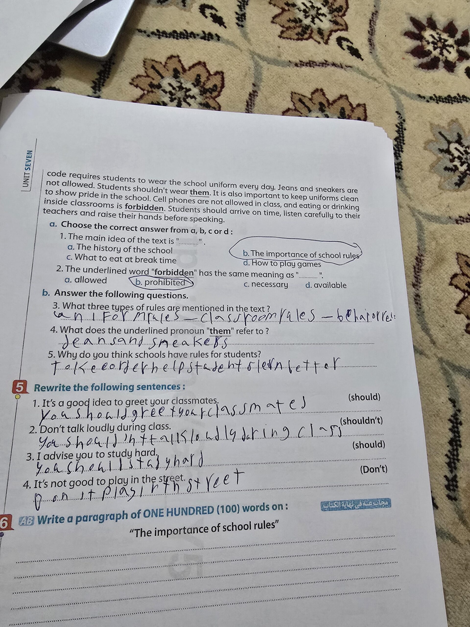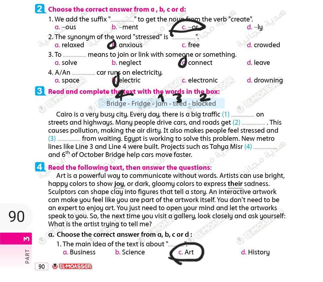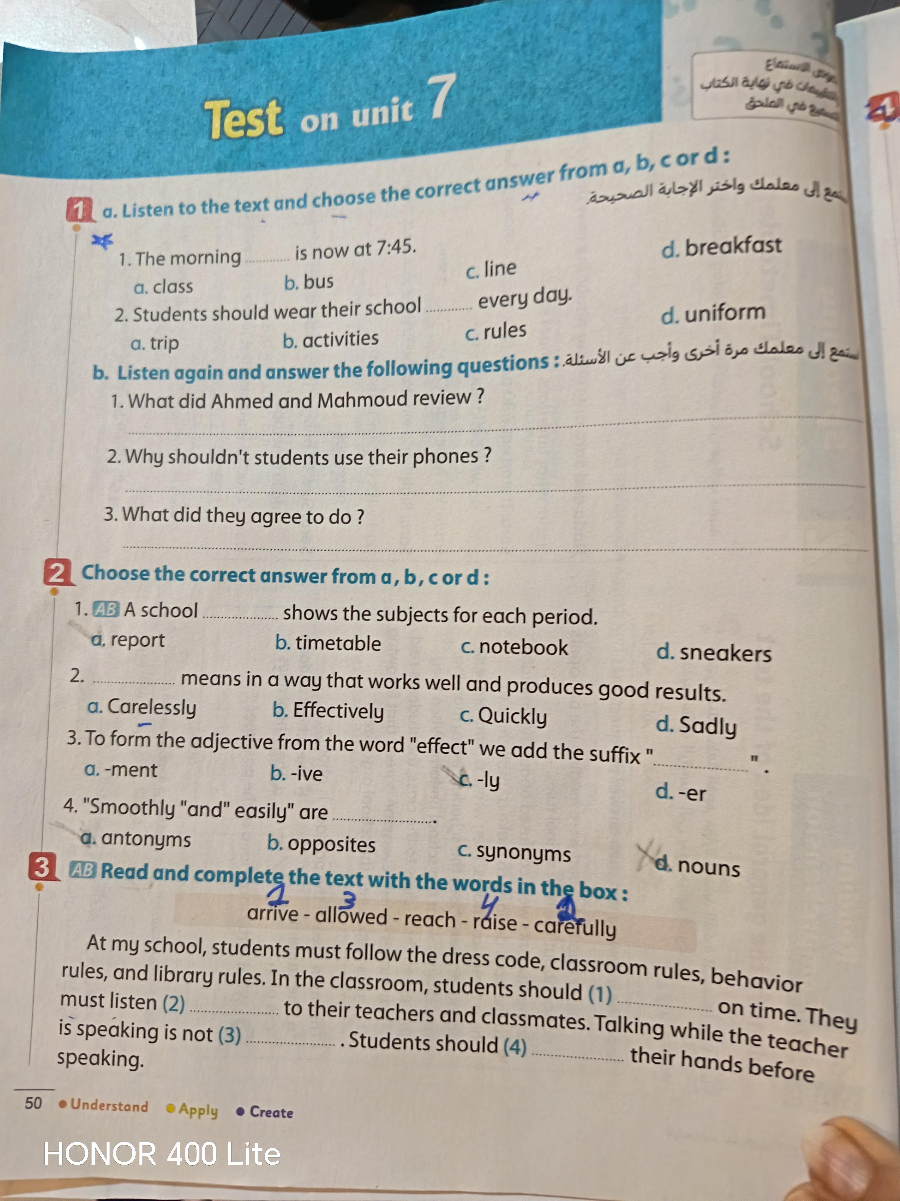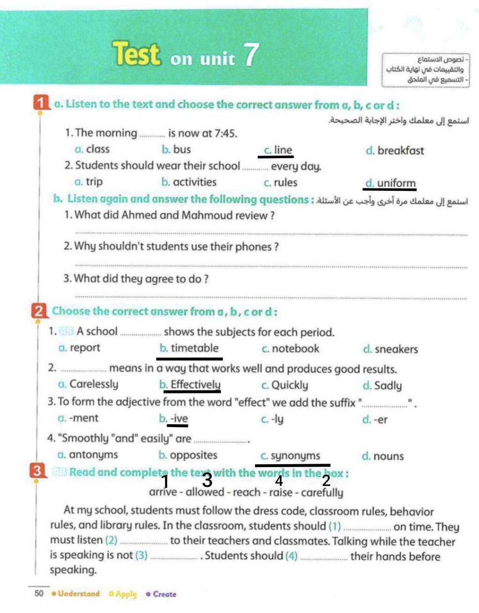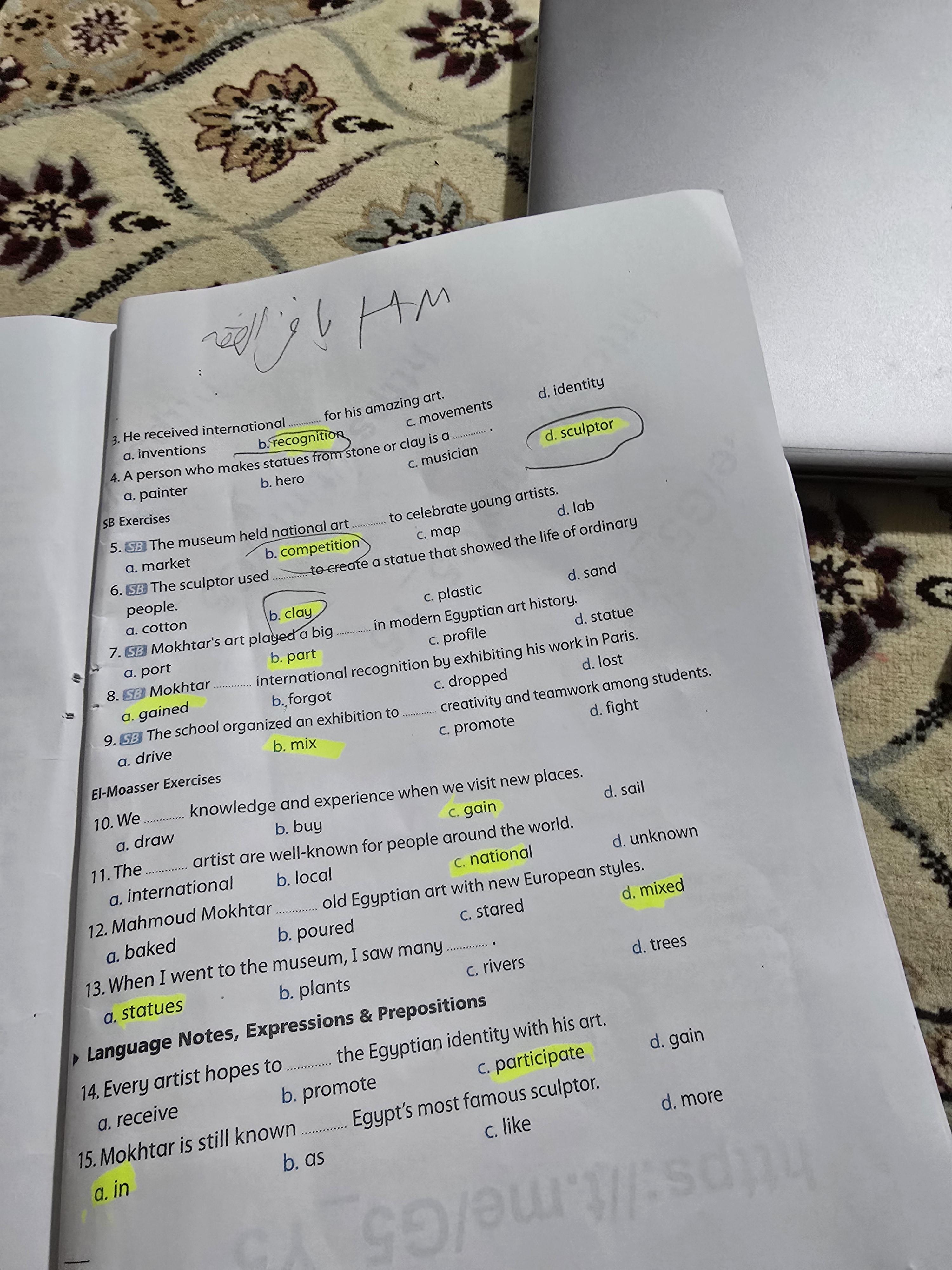 Today, we answered the test on U.9 on pages (132,133, and 134) and the general exercise on Review 3 on pages (137, 138, 139)… Page 140 is left for next time in sha’allah. Our homework for today is to write a paragraph (page 134) on job skills