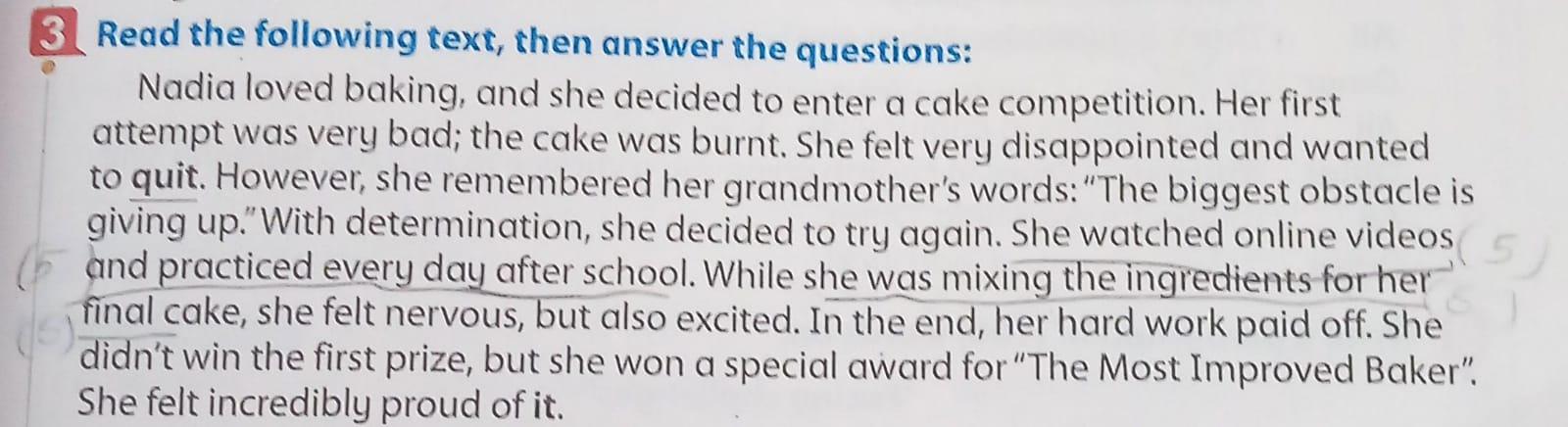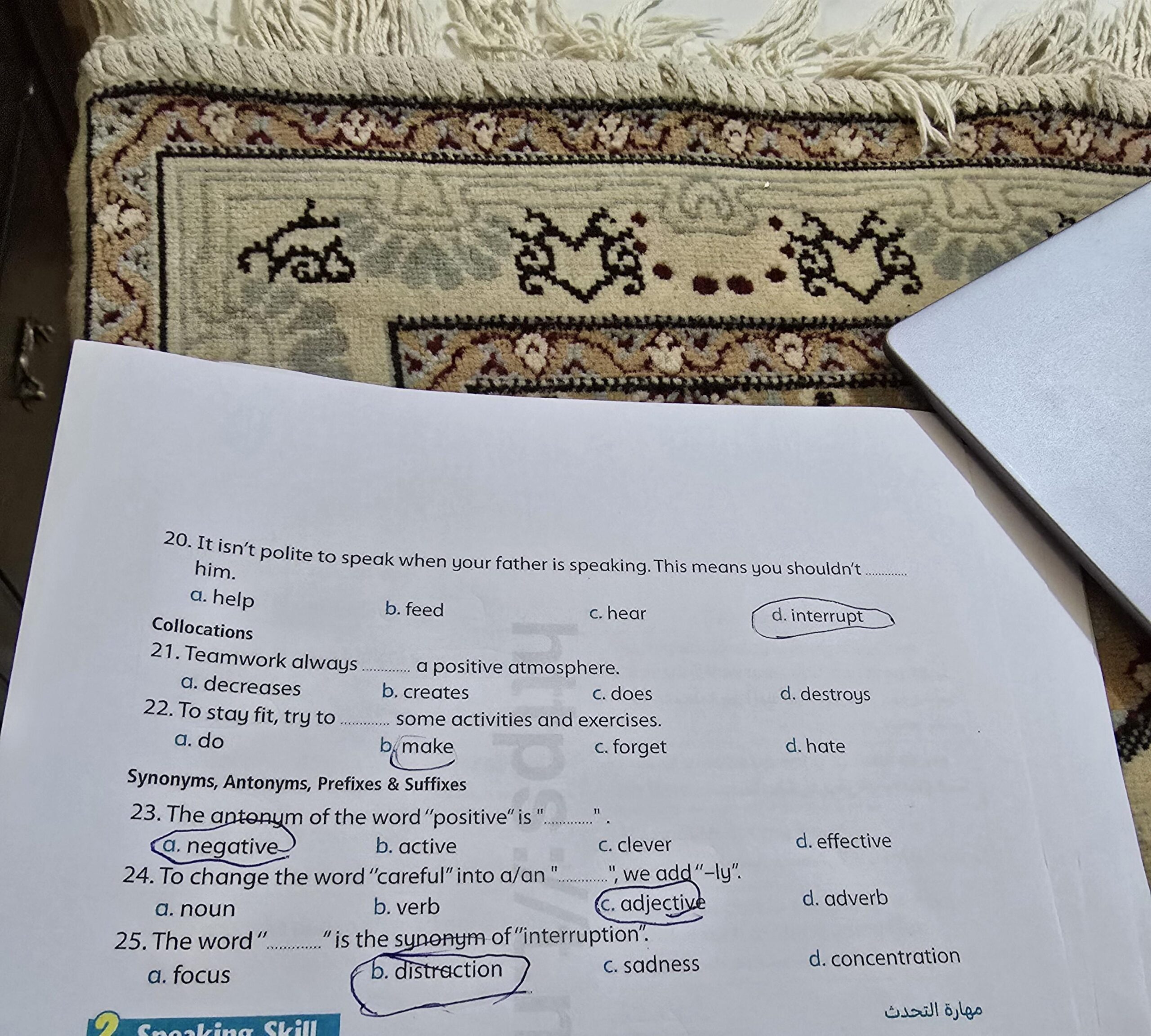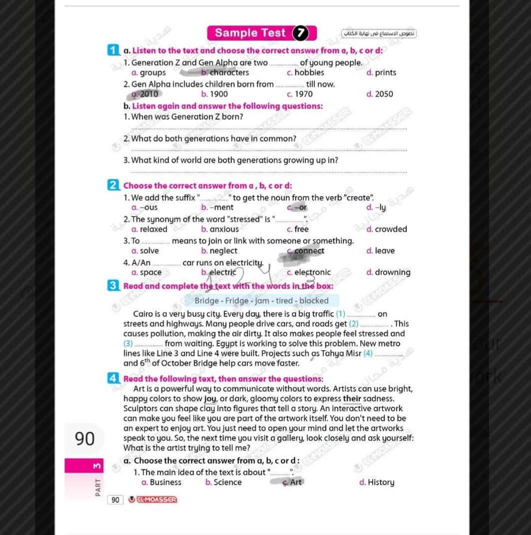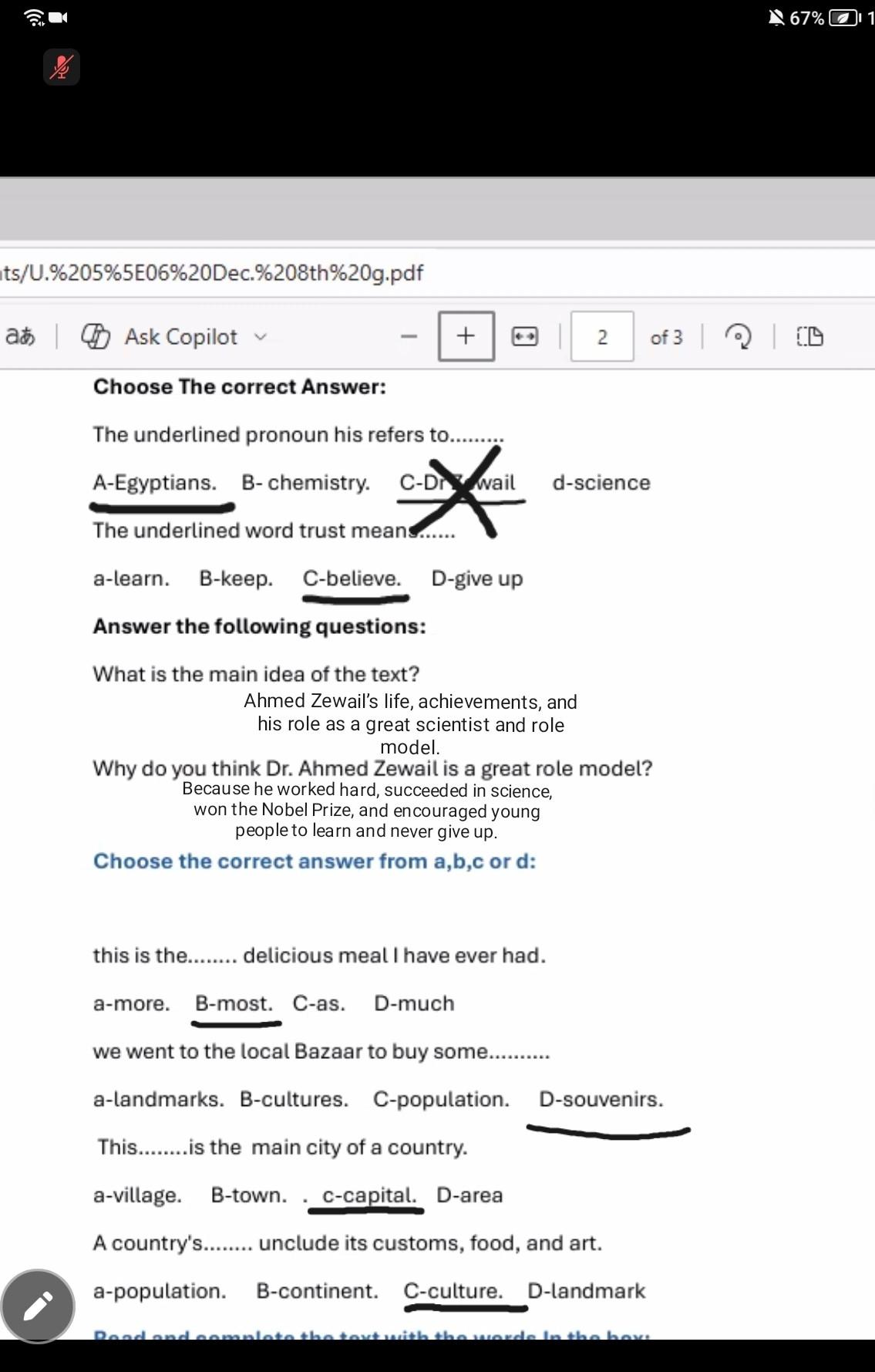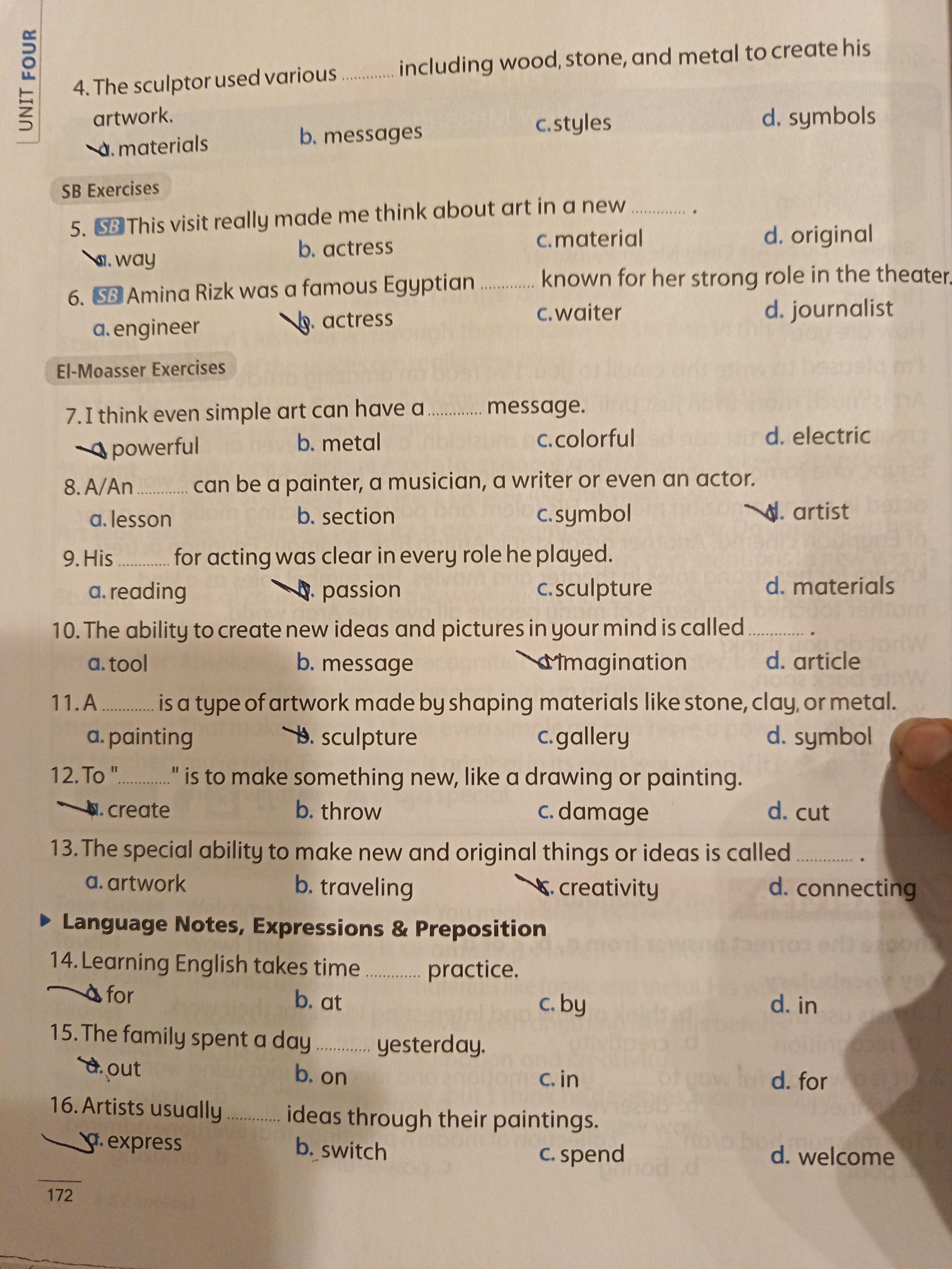 Today, we answered the test on U.9 on pages (132,133, and 134) and the general exercise on Review 3 on pages (137, 138, 139)… Page 140 is left for next time in sha’allah. Our homework for today is to write a paragraph (page 134) on job skills