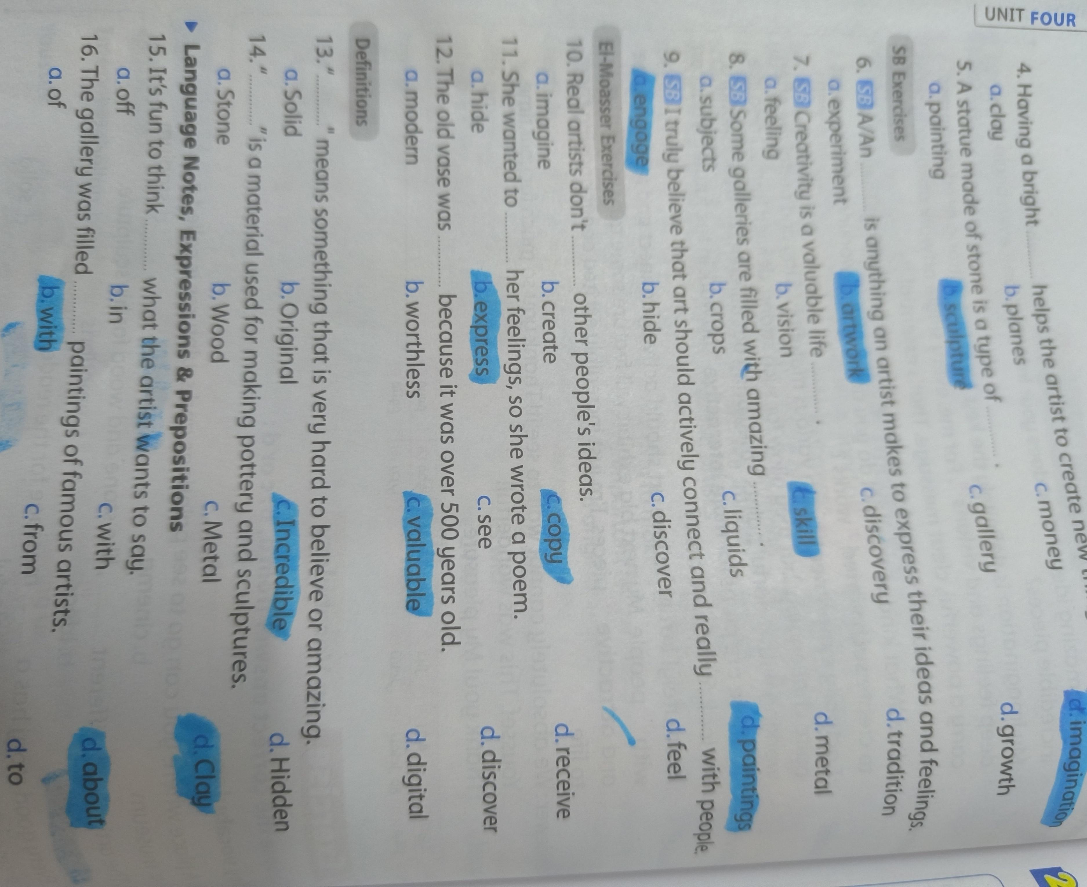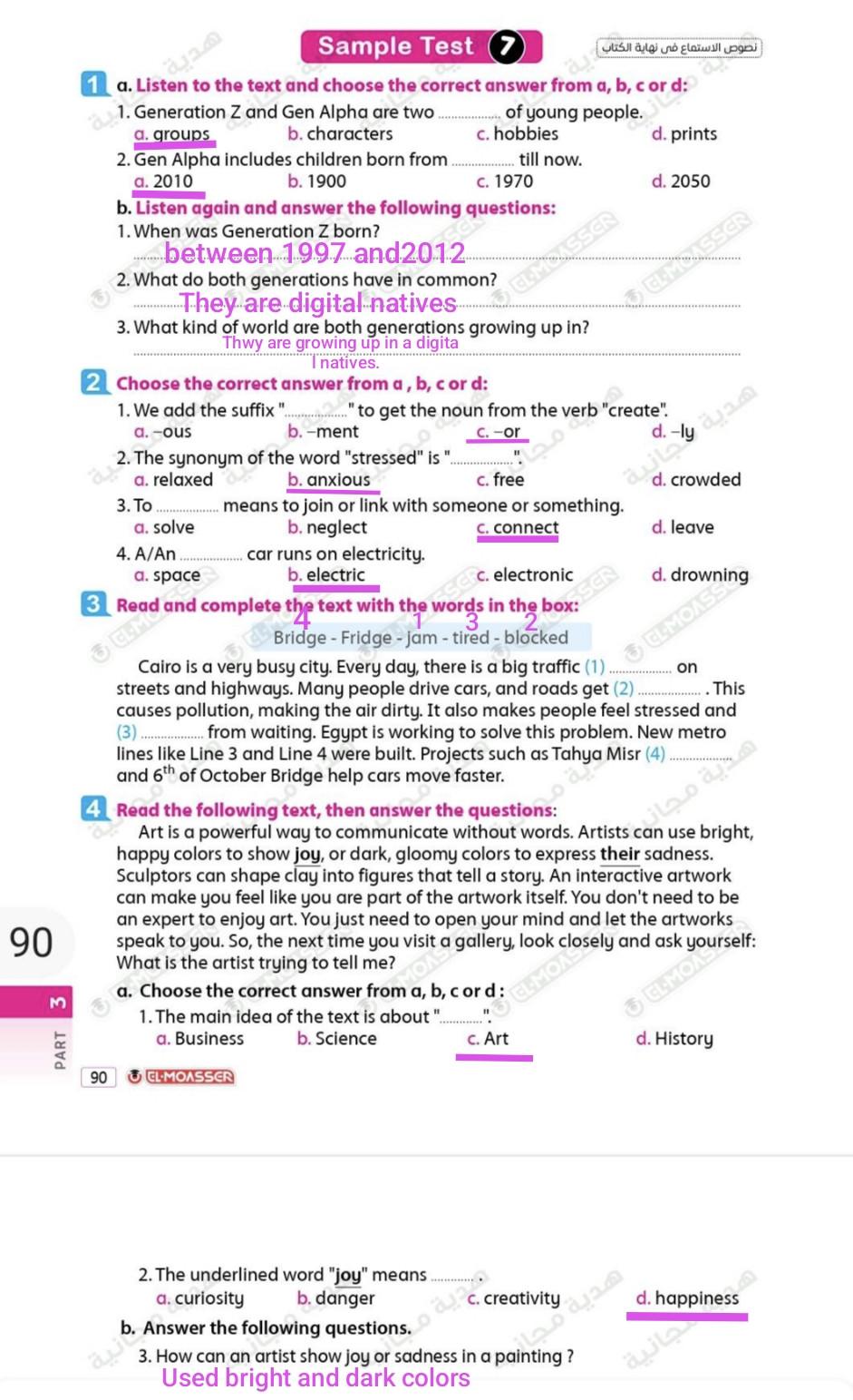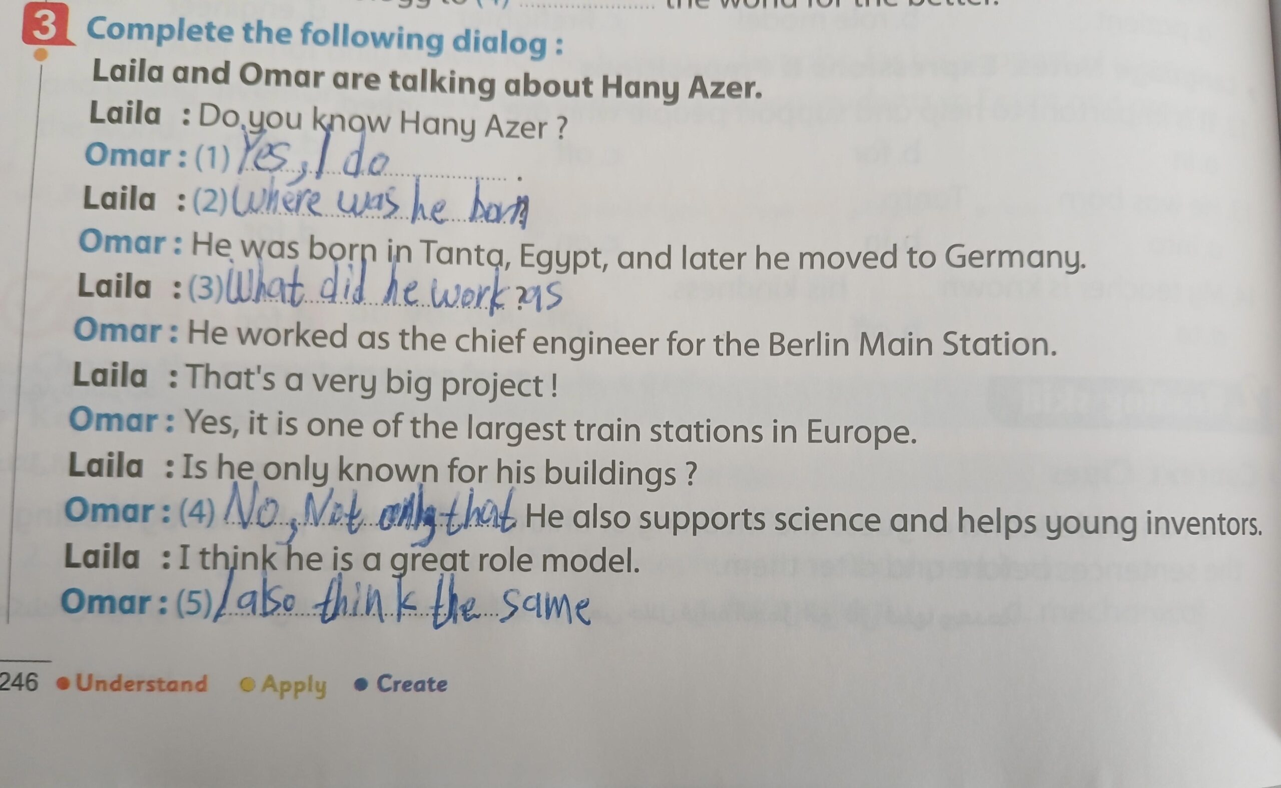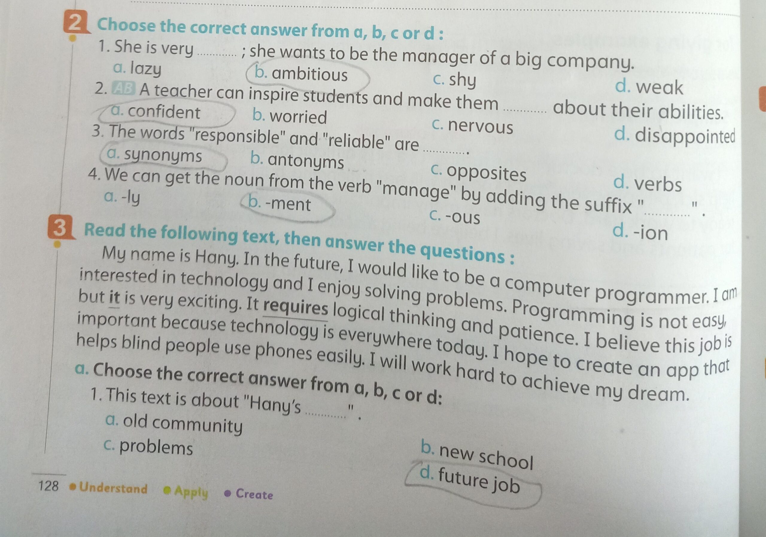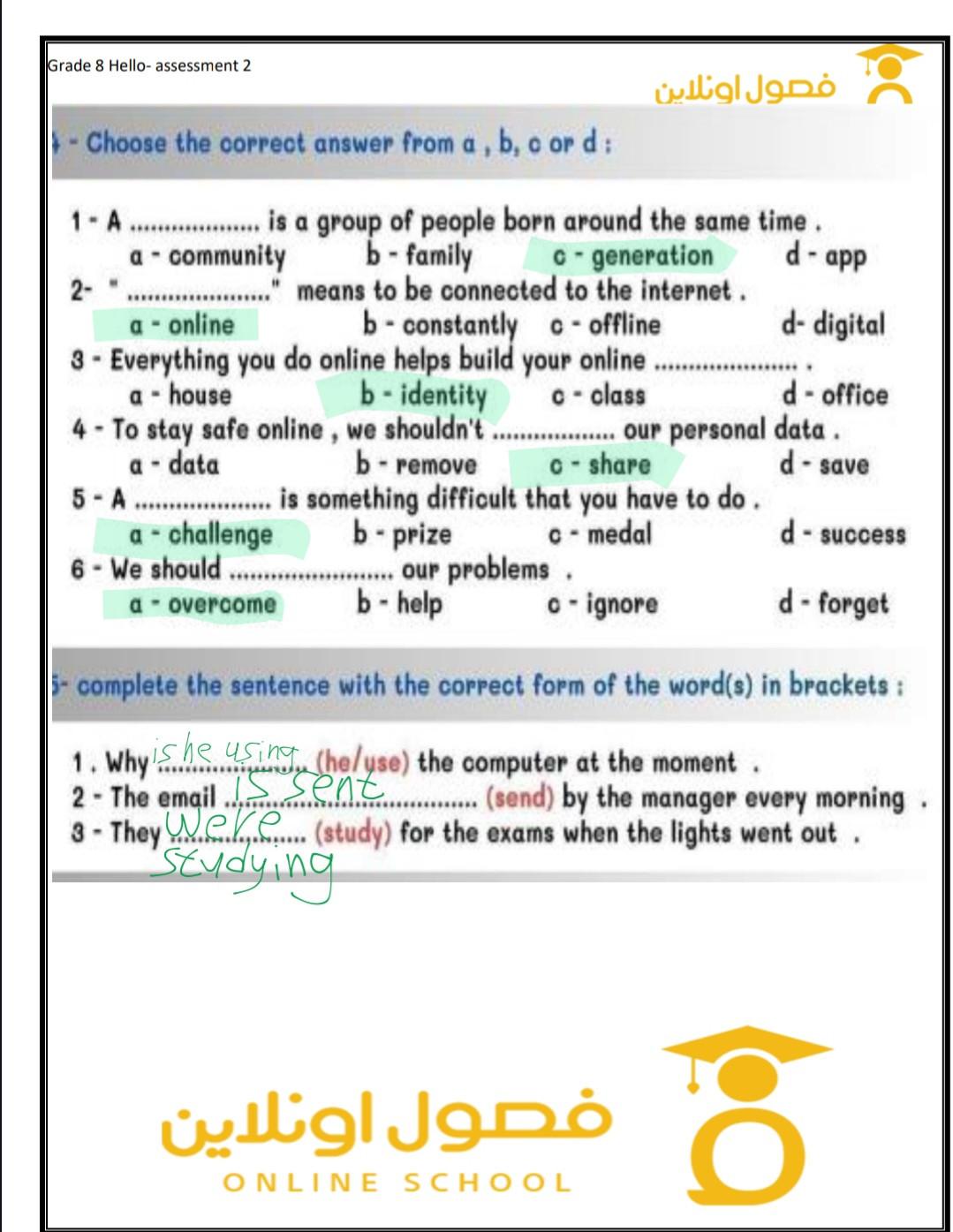 Today, we answered the test on U.9 on pages (132,133, and 134) and the general exercise on Review 3 on pages (137, 138, 139)… Page 140 is left for next time in sha’allah. Our homework for today is to write a paragraph (page 134) on job skills