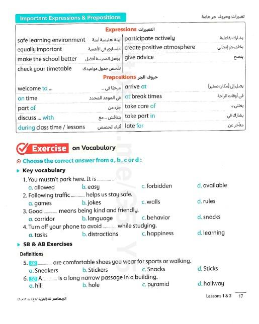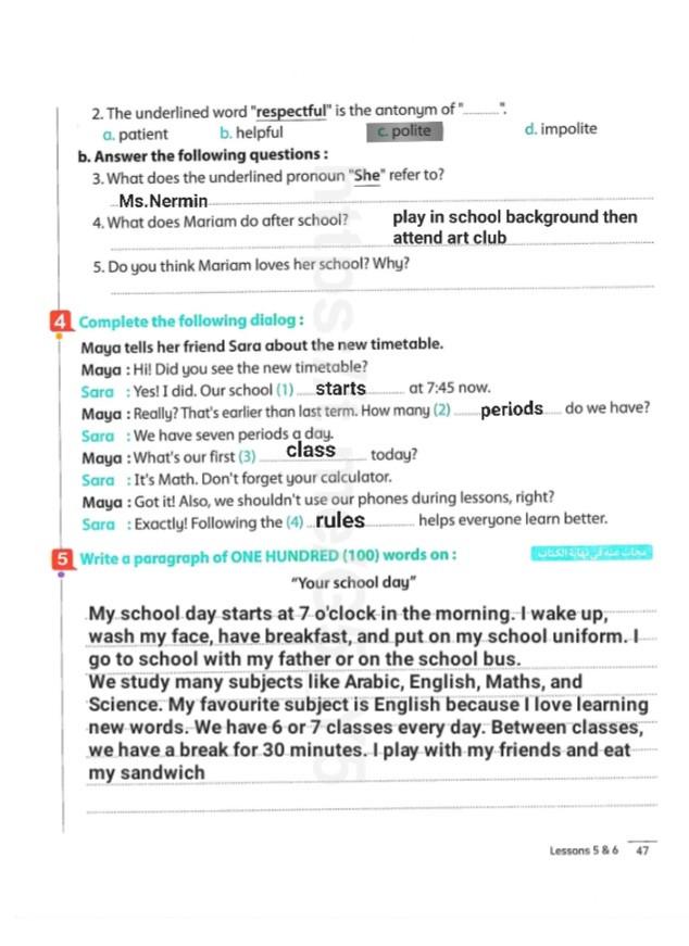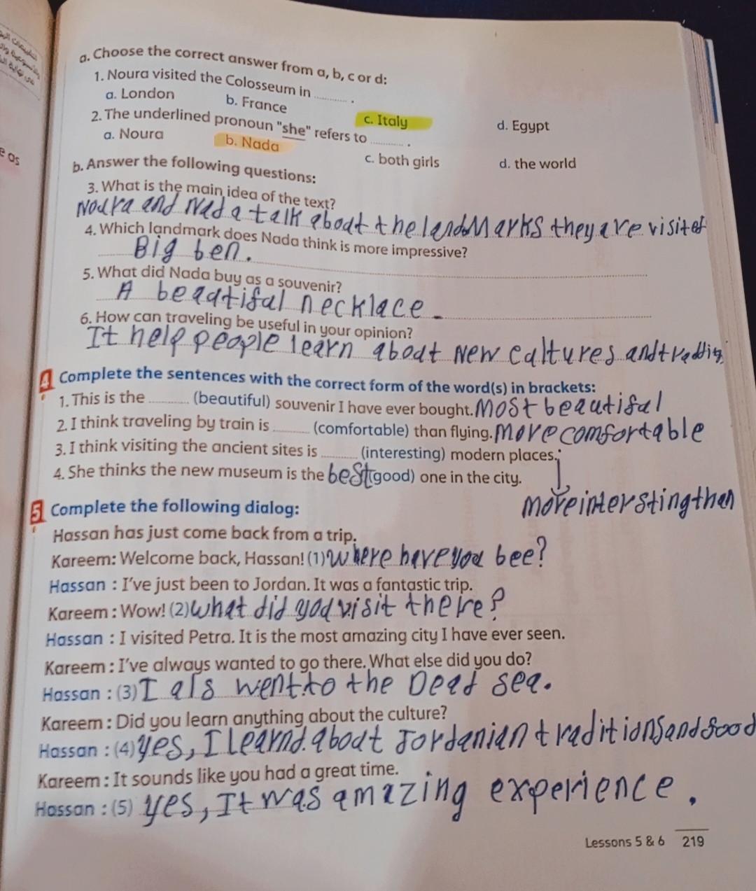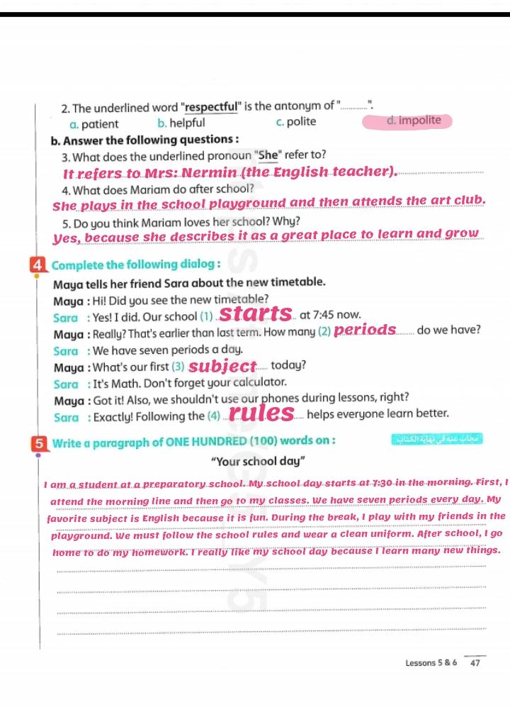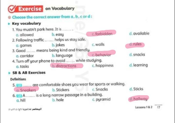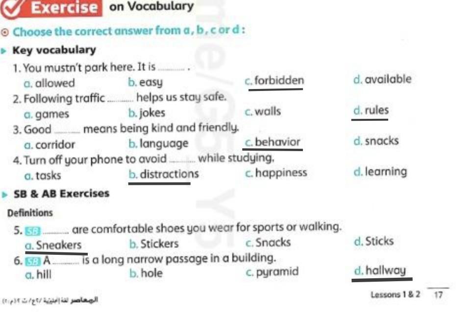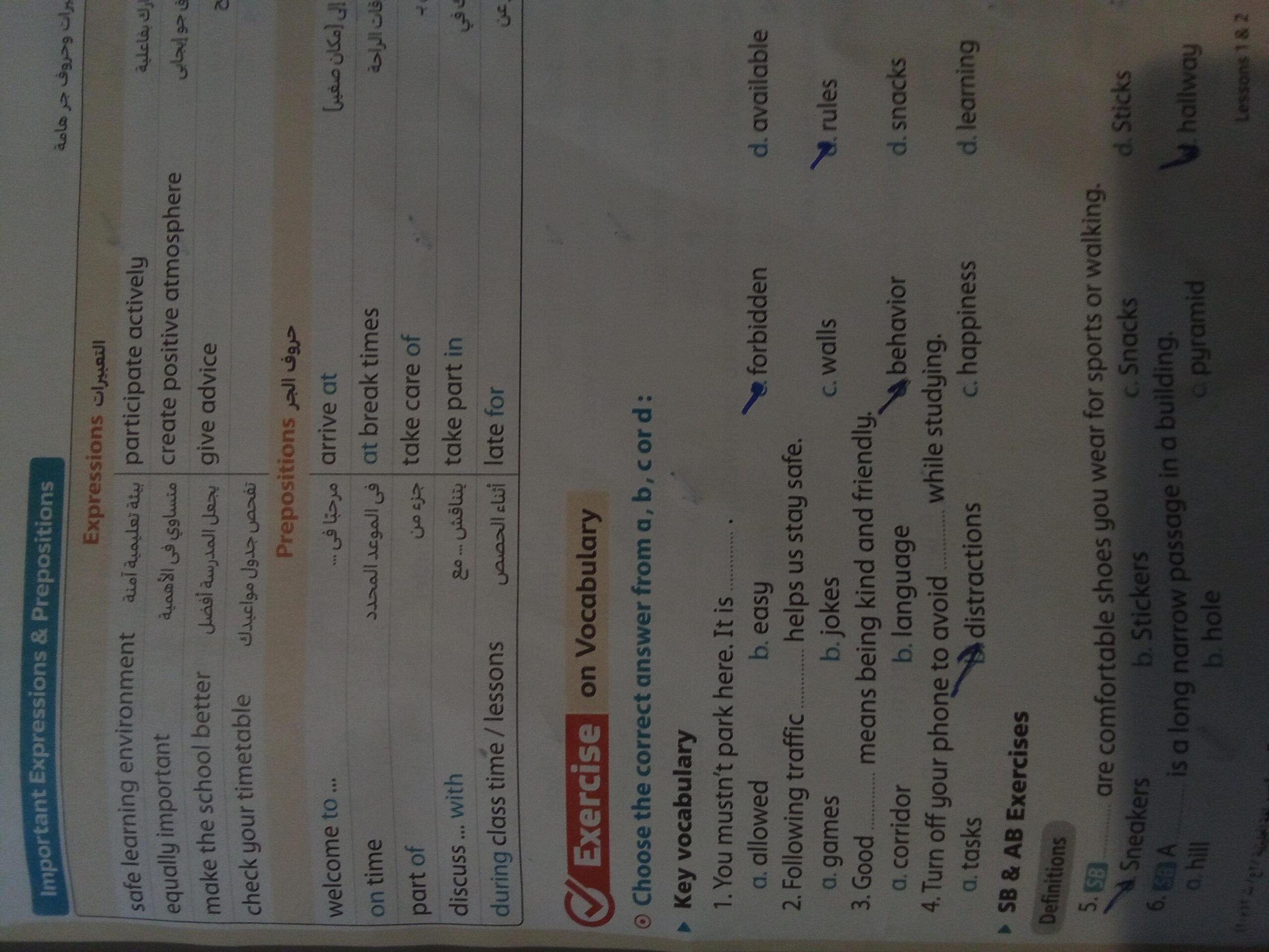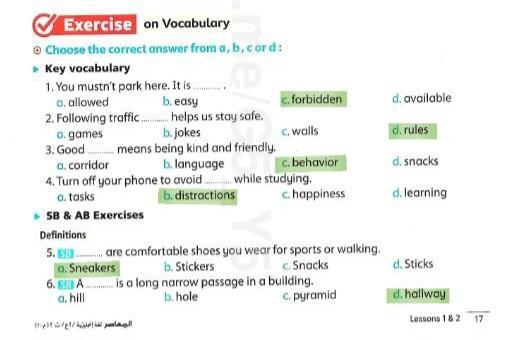We have studied Lessons 5,6 in unit 1. Memorize the key vocabulary in page 38 answer these questions