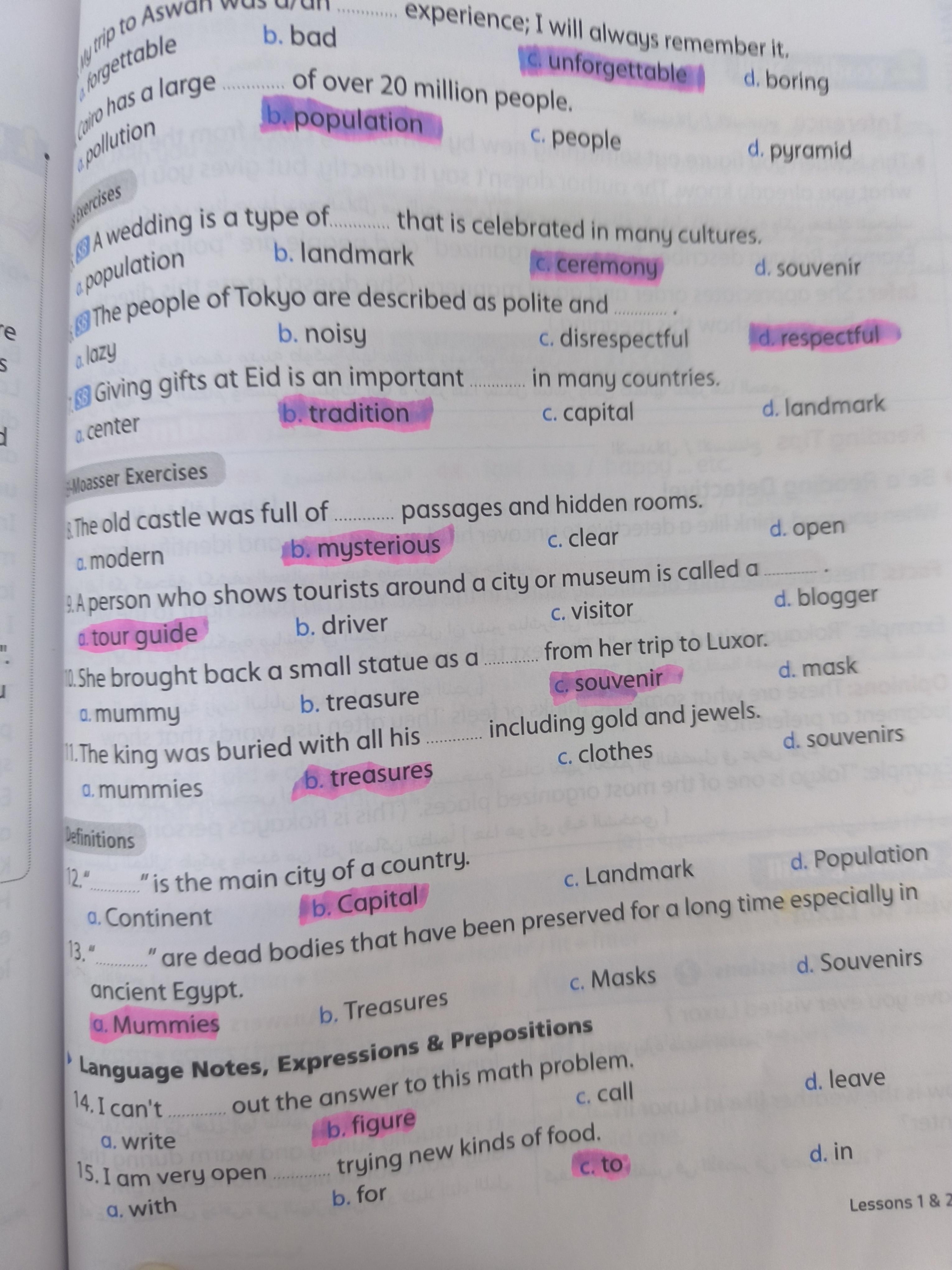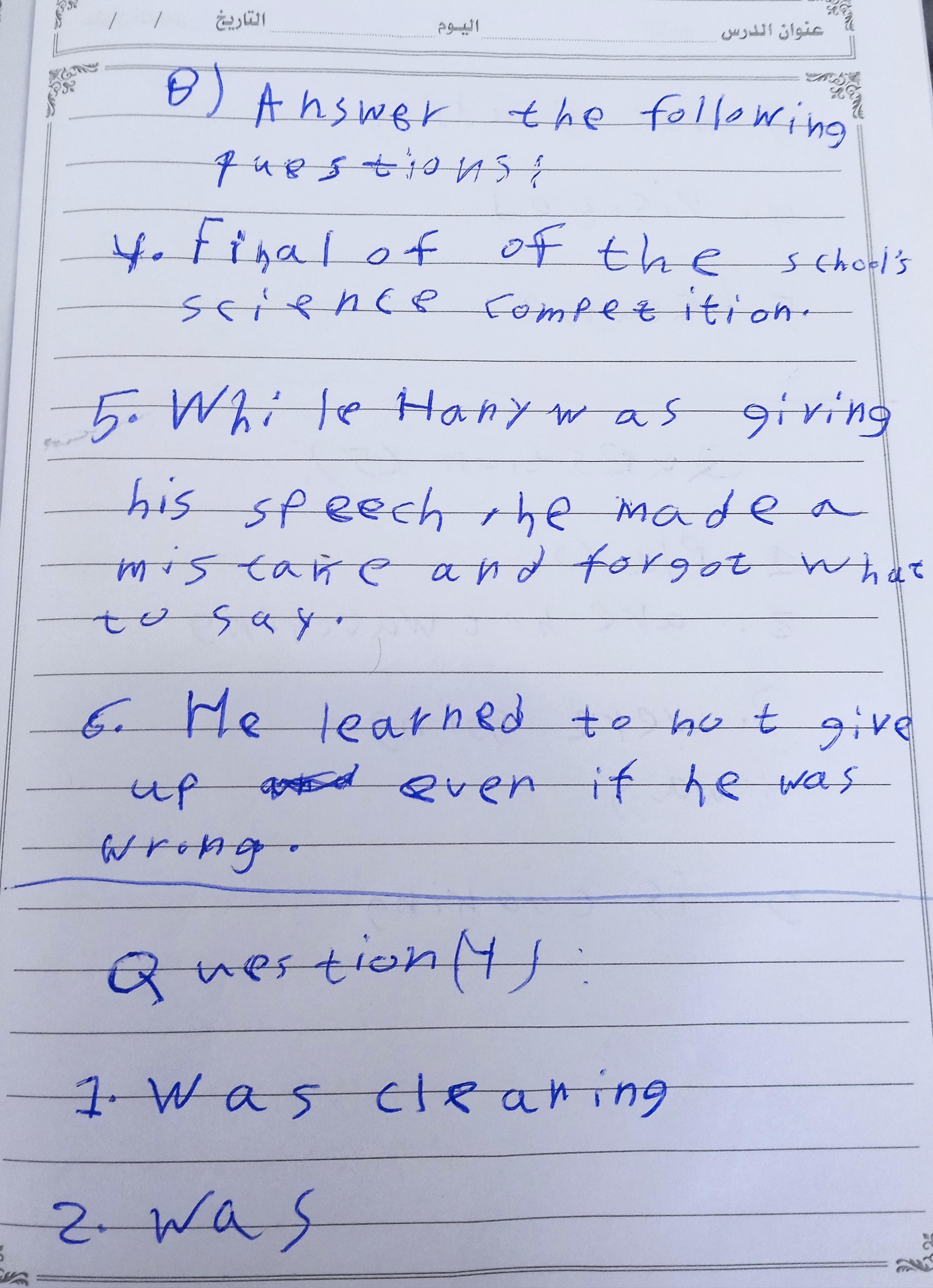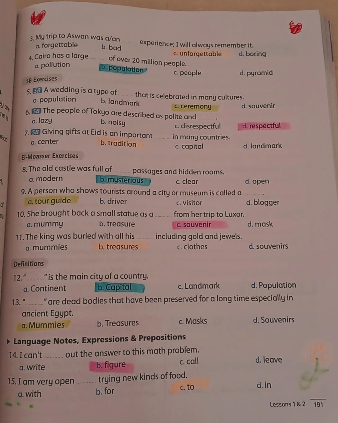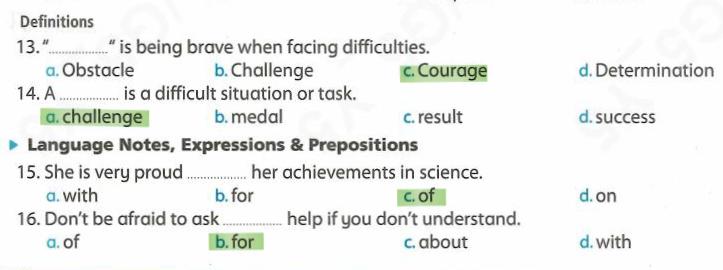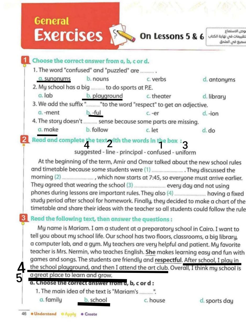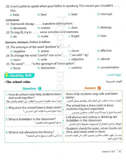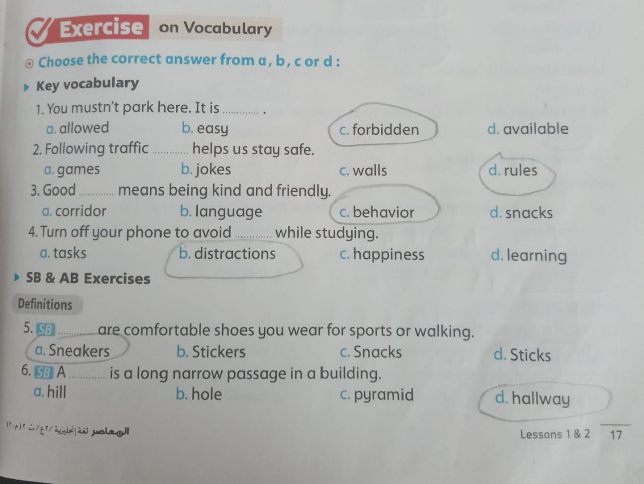 We have studied Lessons 5,6 in unit 1. Memorize the key vocabulary in page 38 answer these questions
