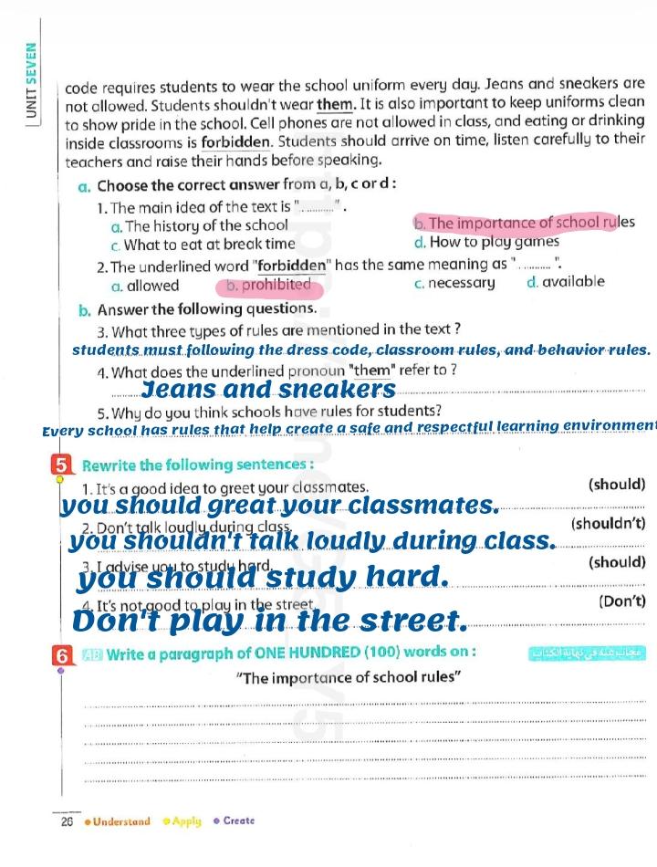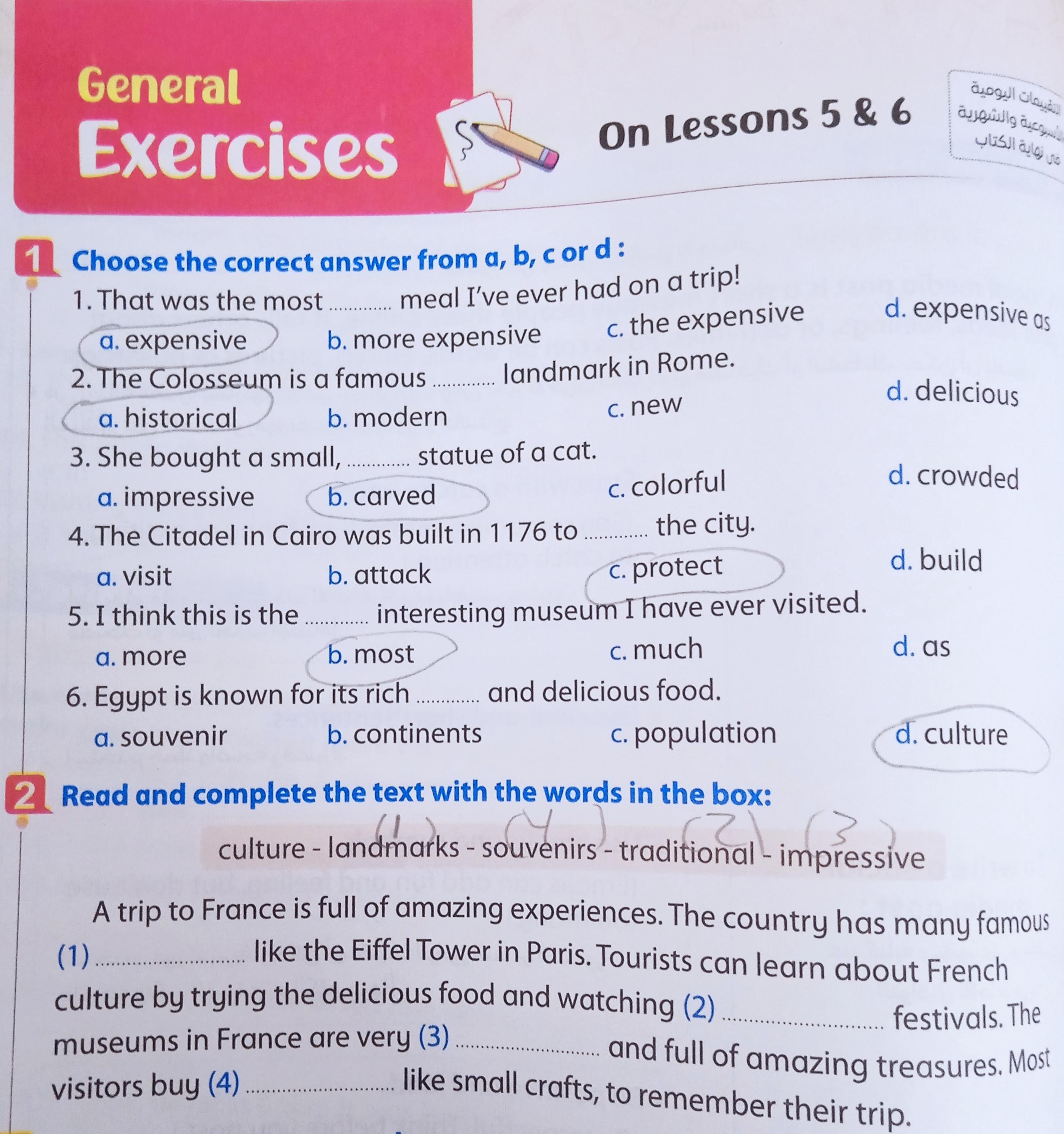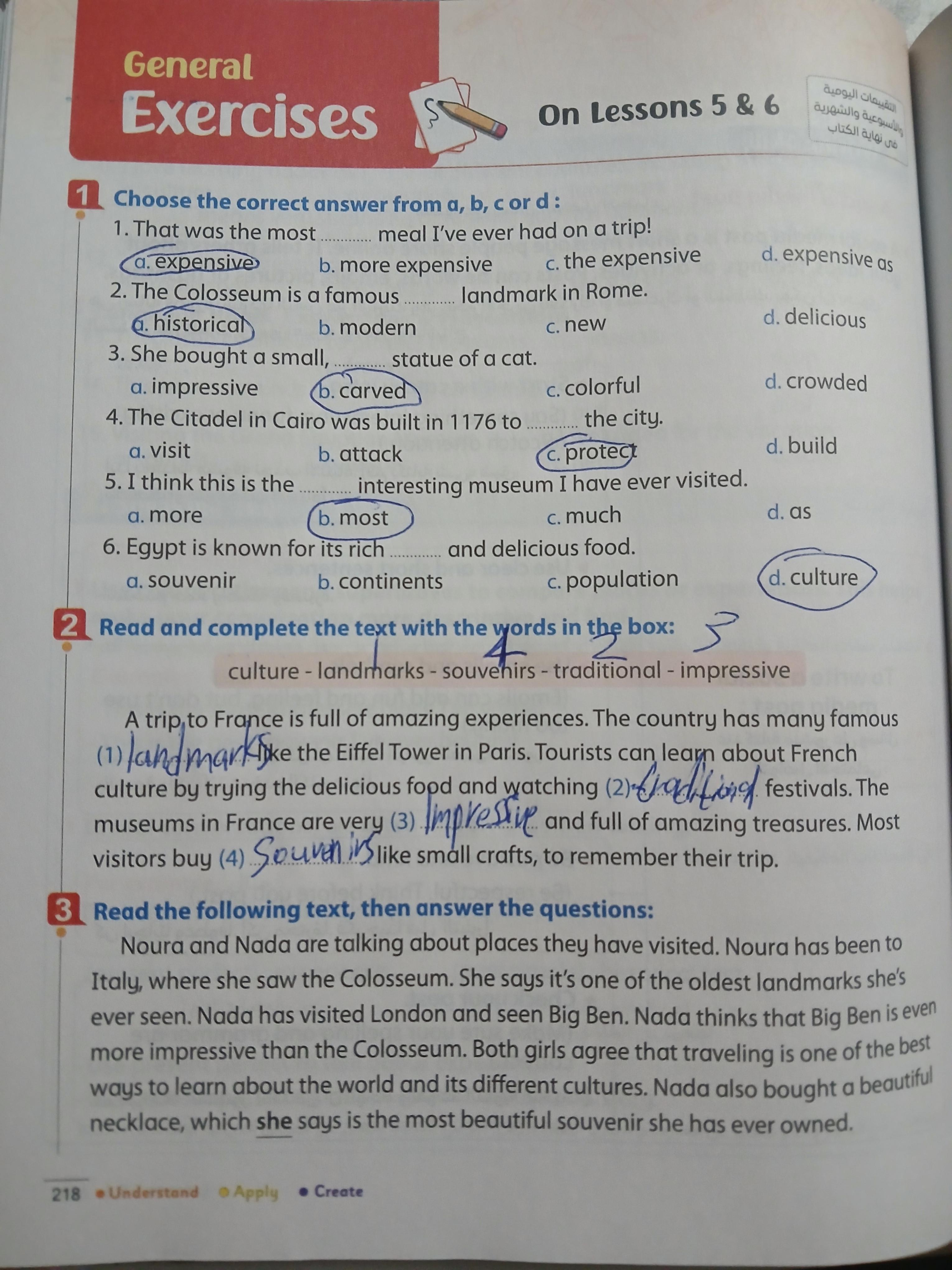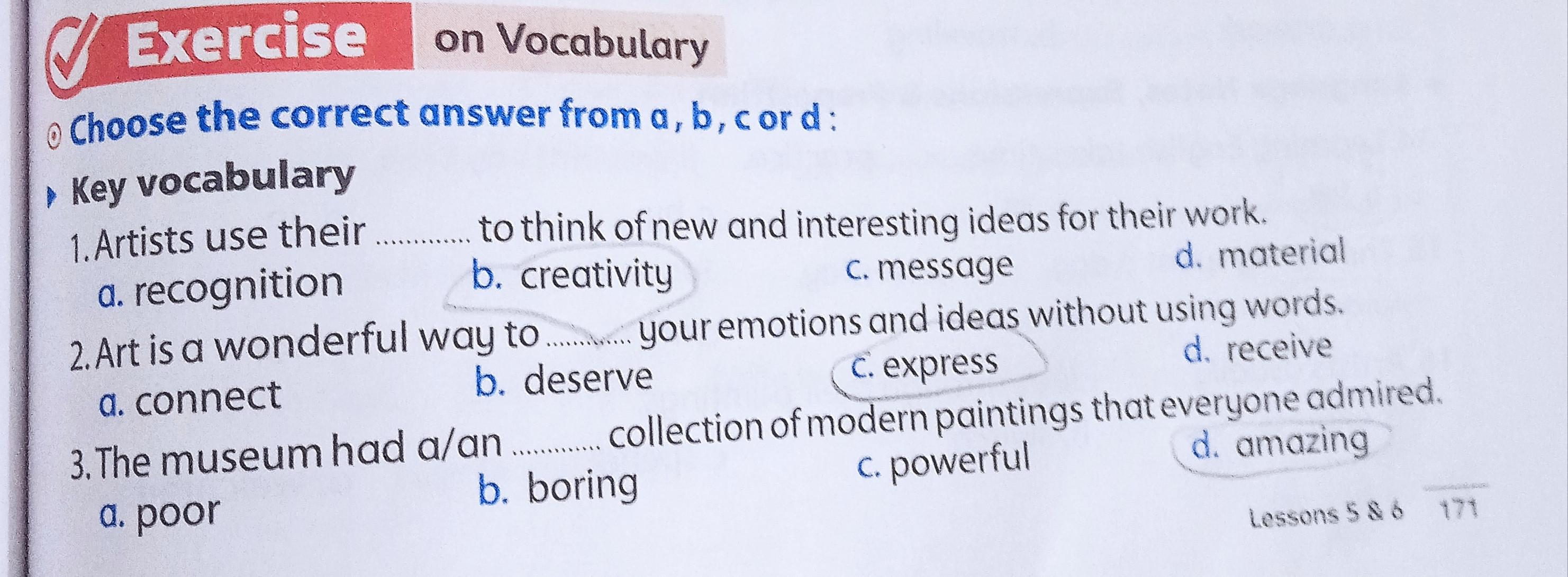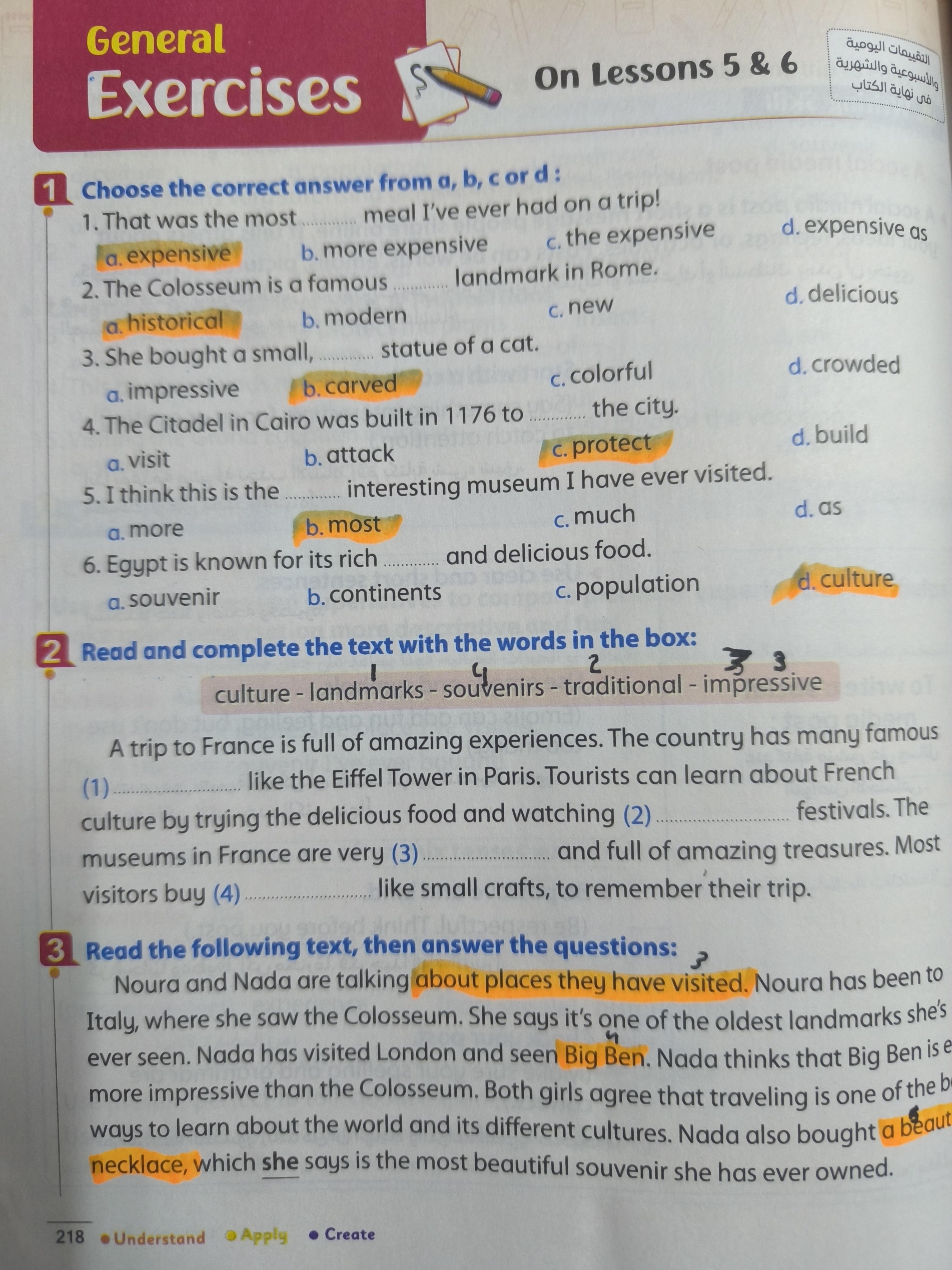 We have studied Lessons 5,6 in unit 1. Memorize the key vocabulary in page 38 answer these questions