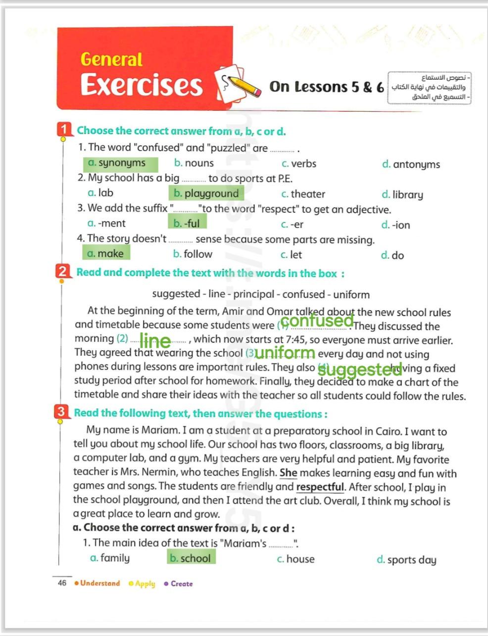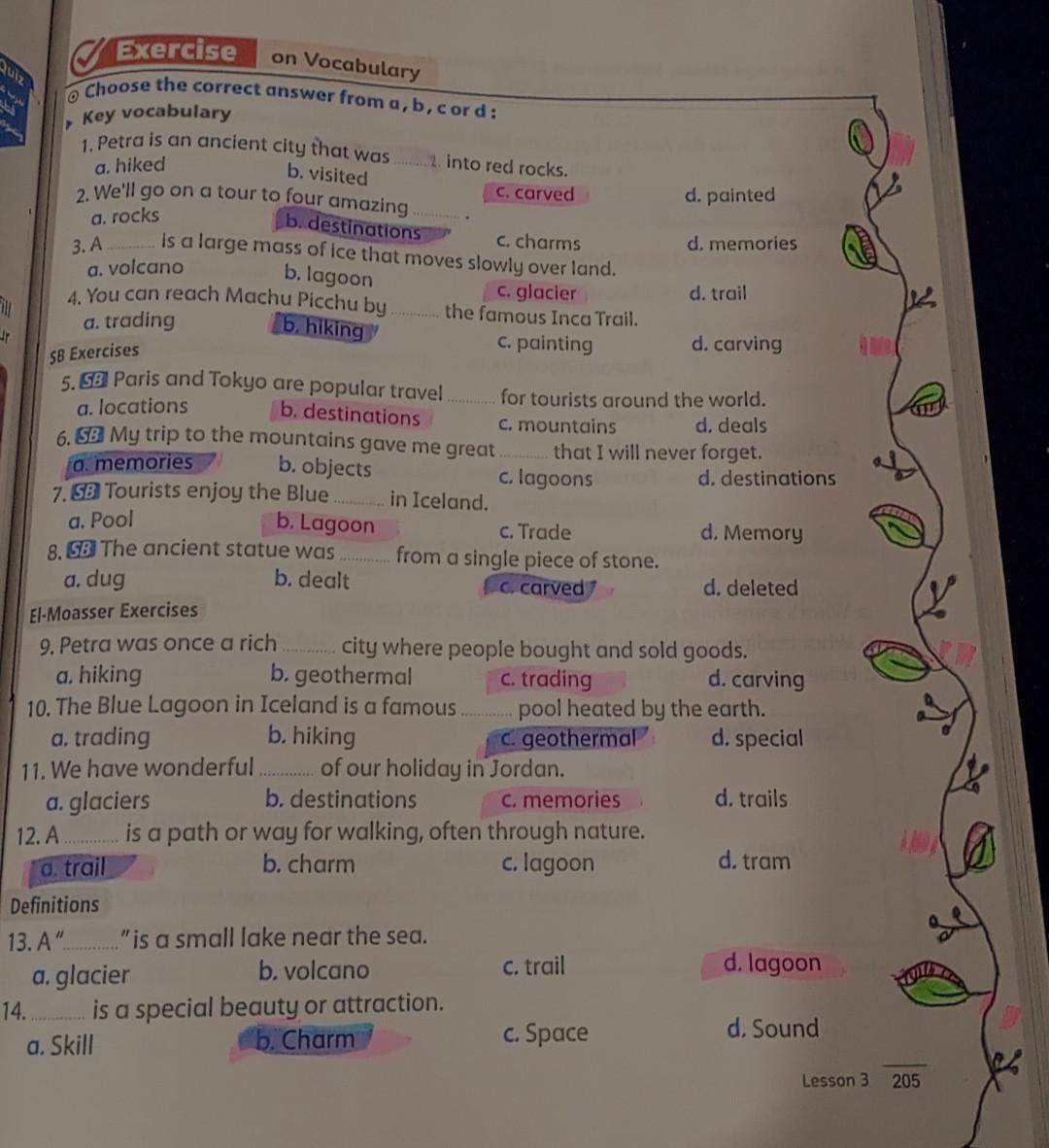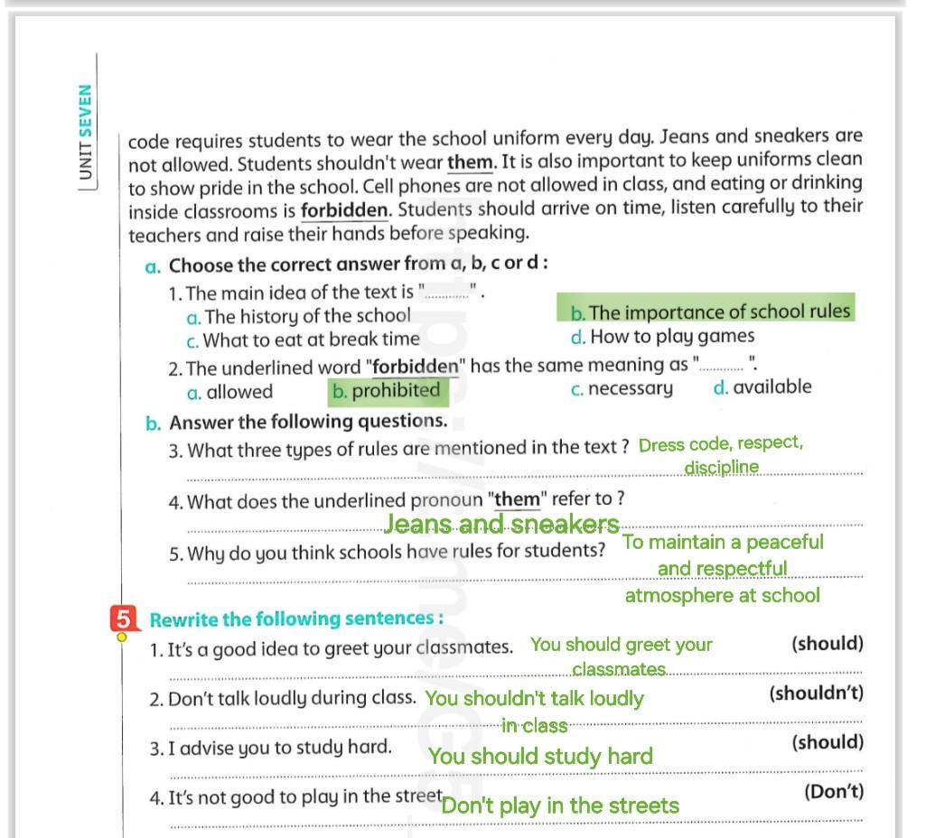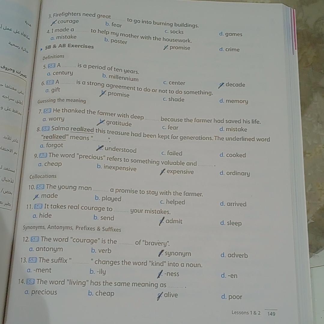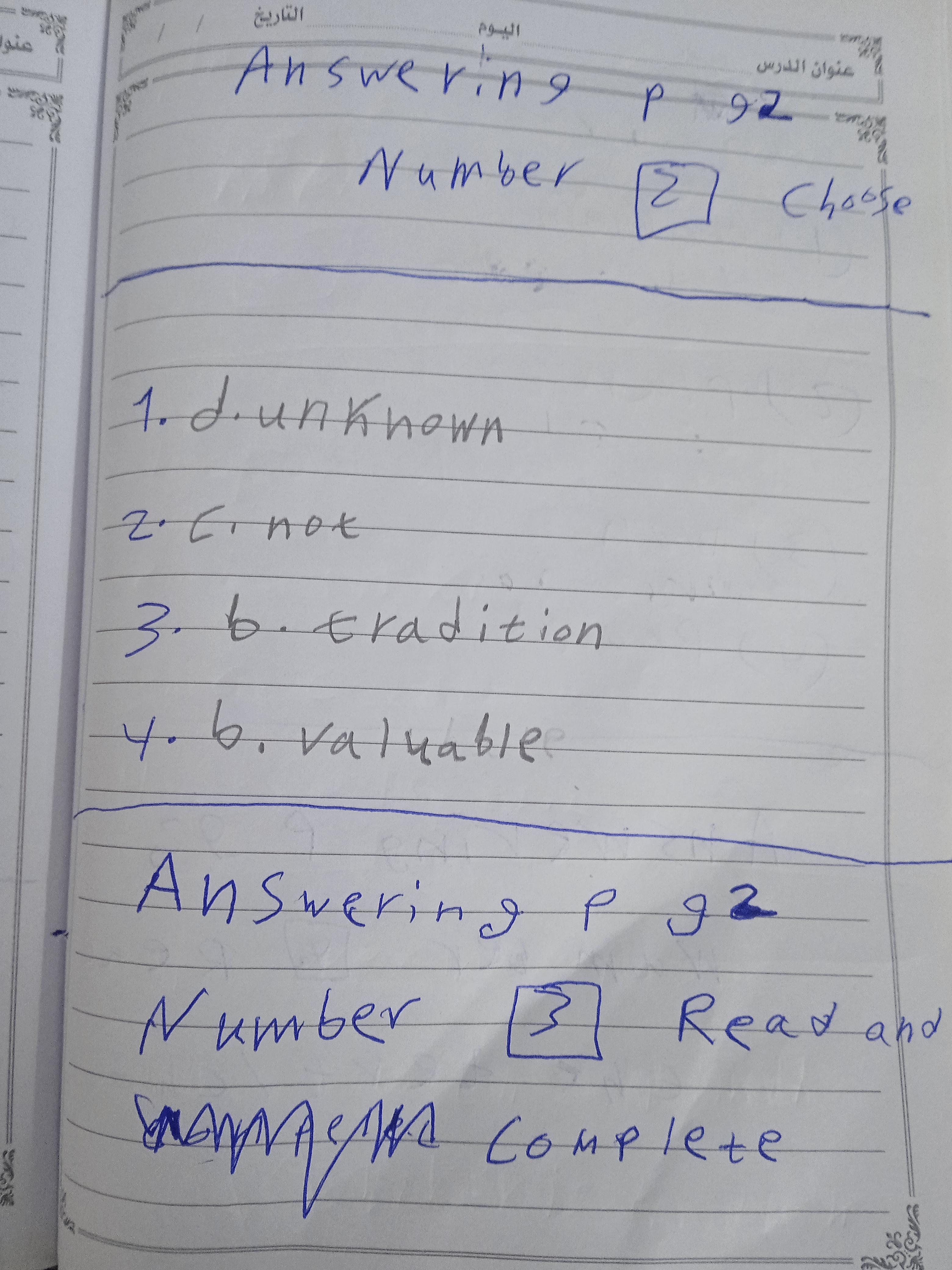 We have studied Lessons 5,6 in unit 1. Memorize the key vocabulary in page 38 answer these questions