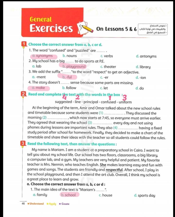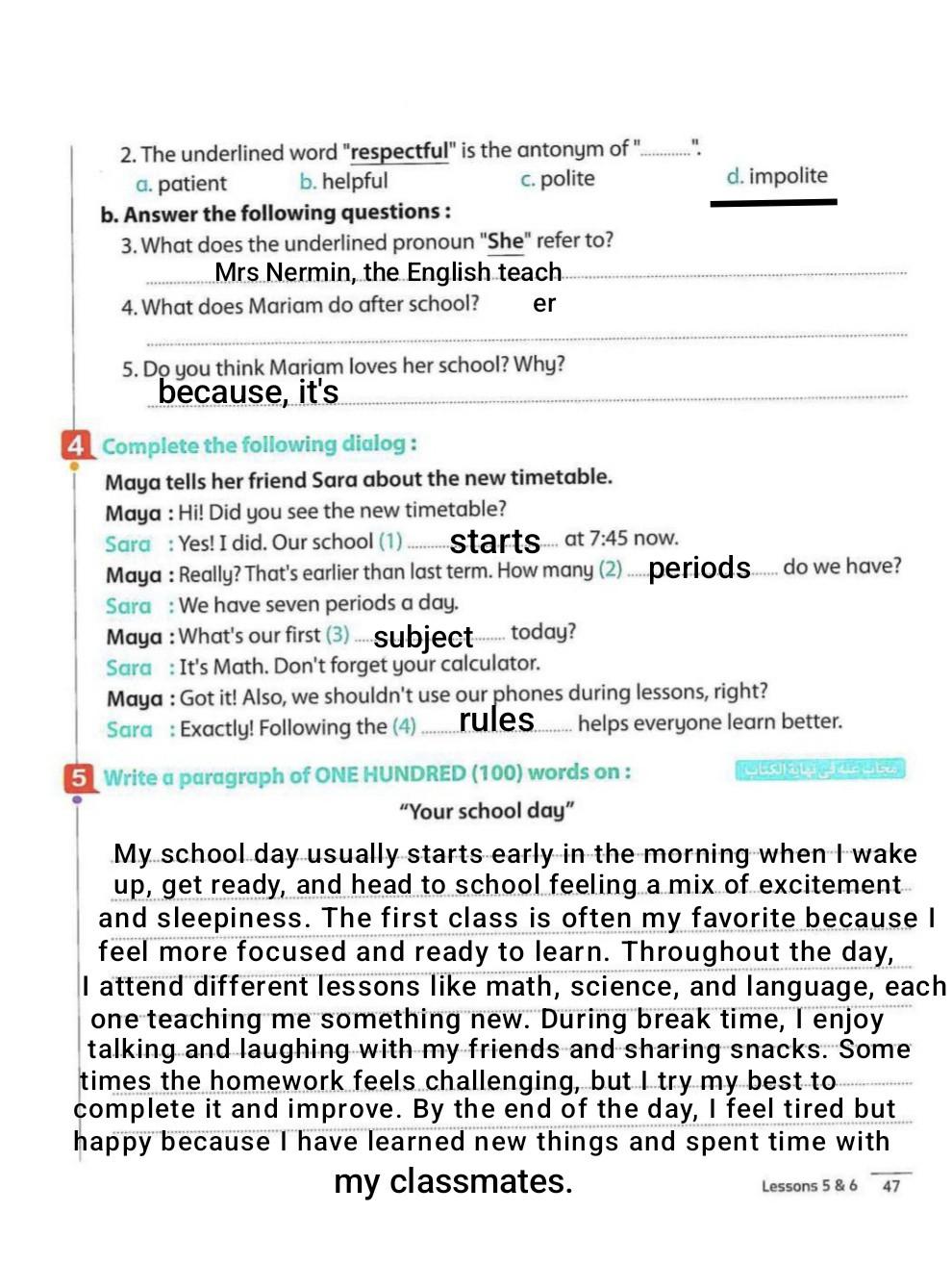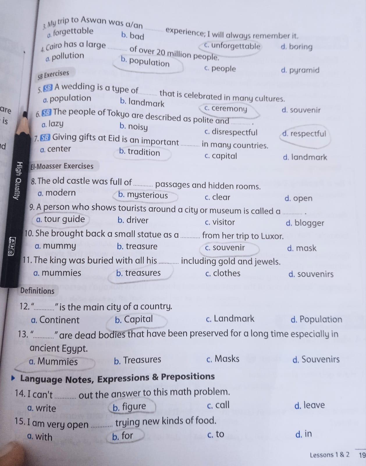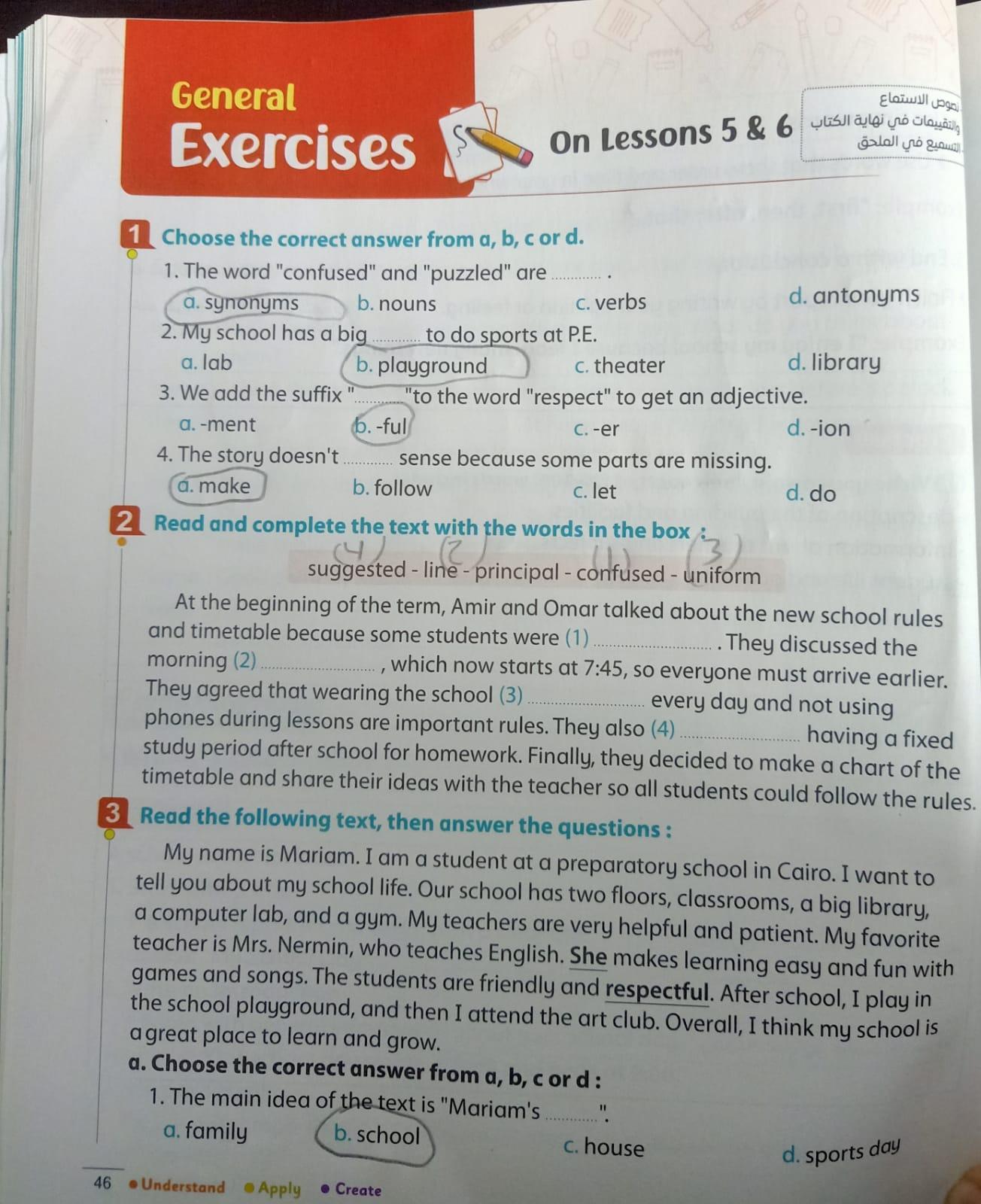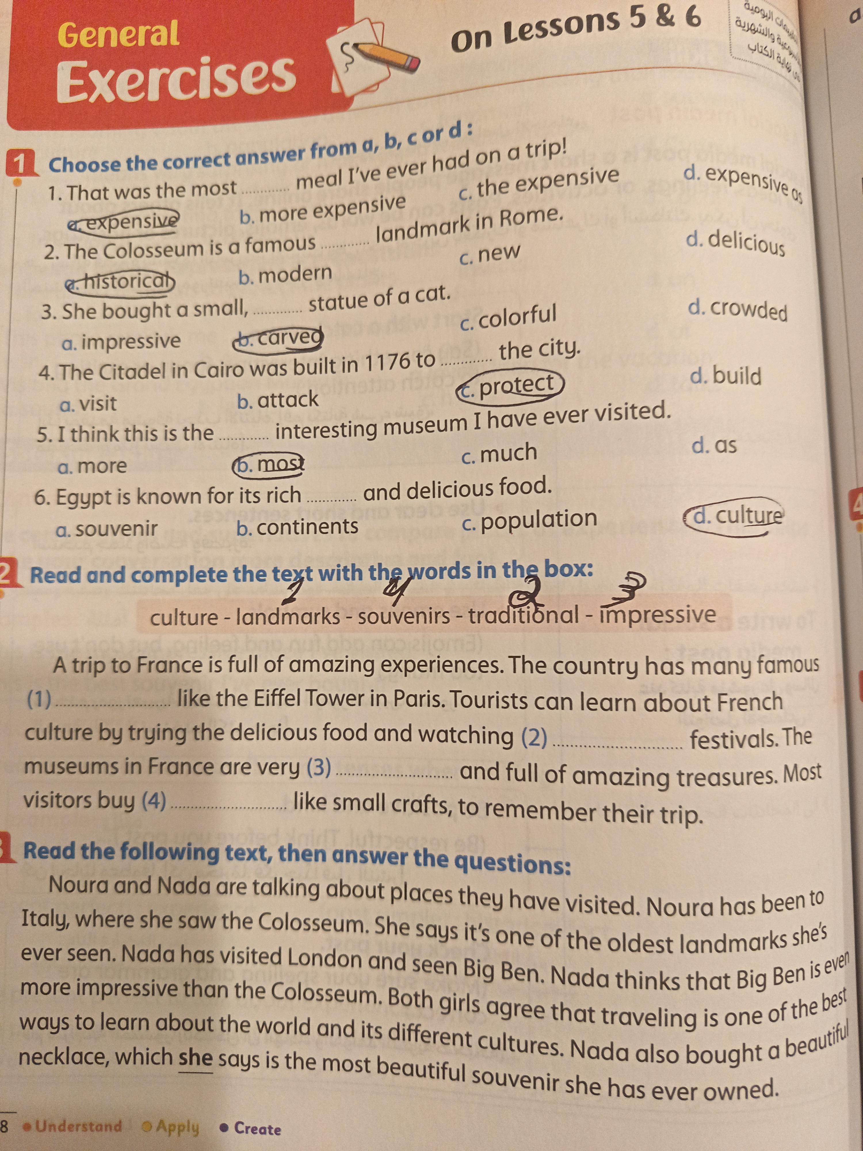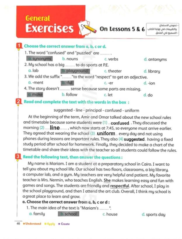 We have studied Lessons 5,6 in unit 1. Memorize the key vocabulary in page 38 answer these questions