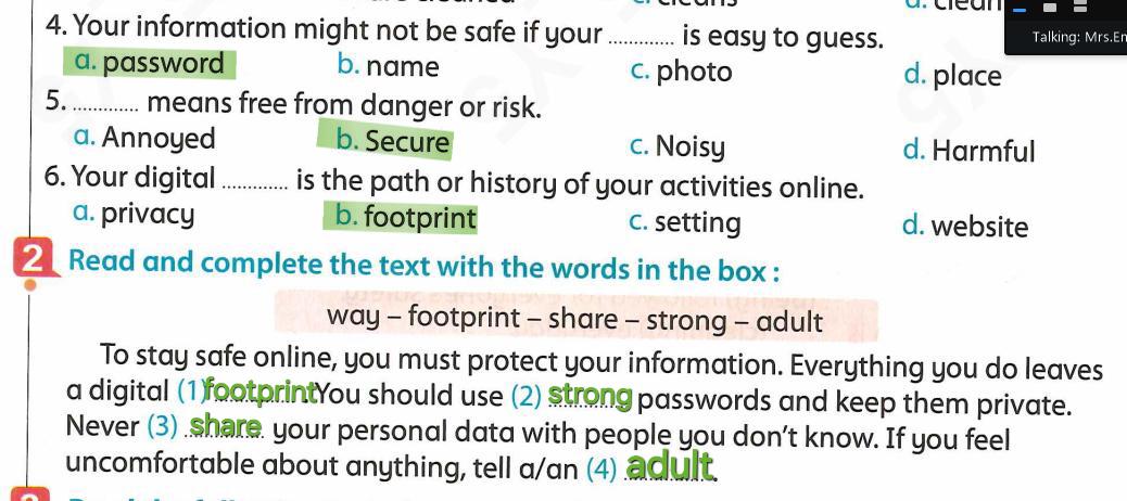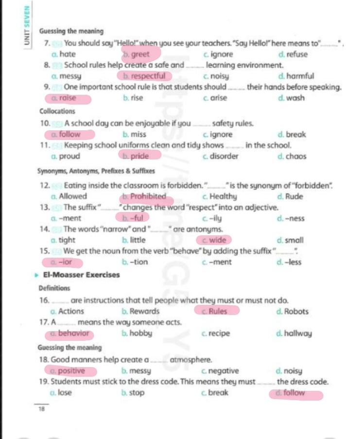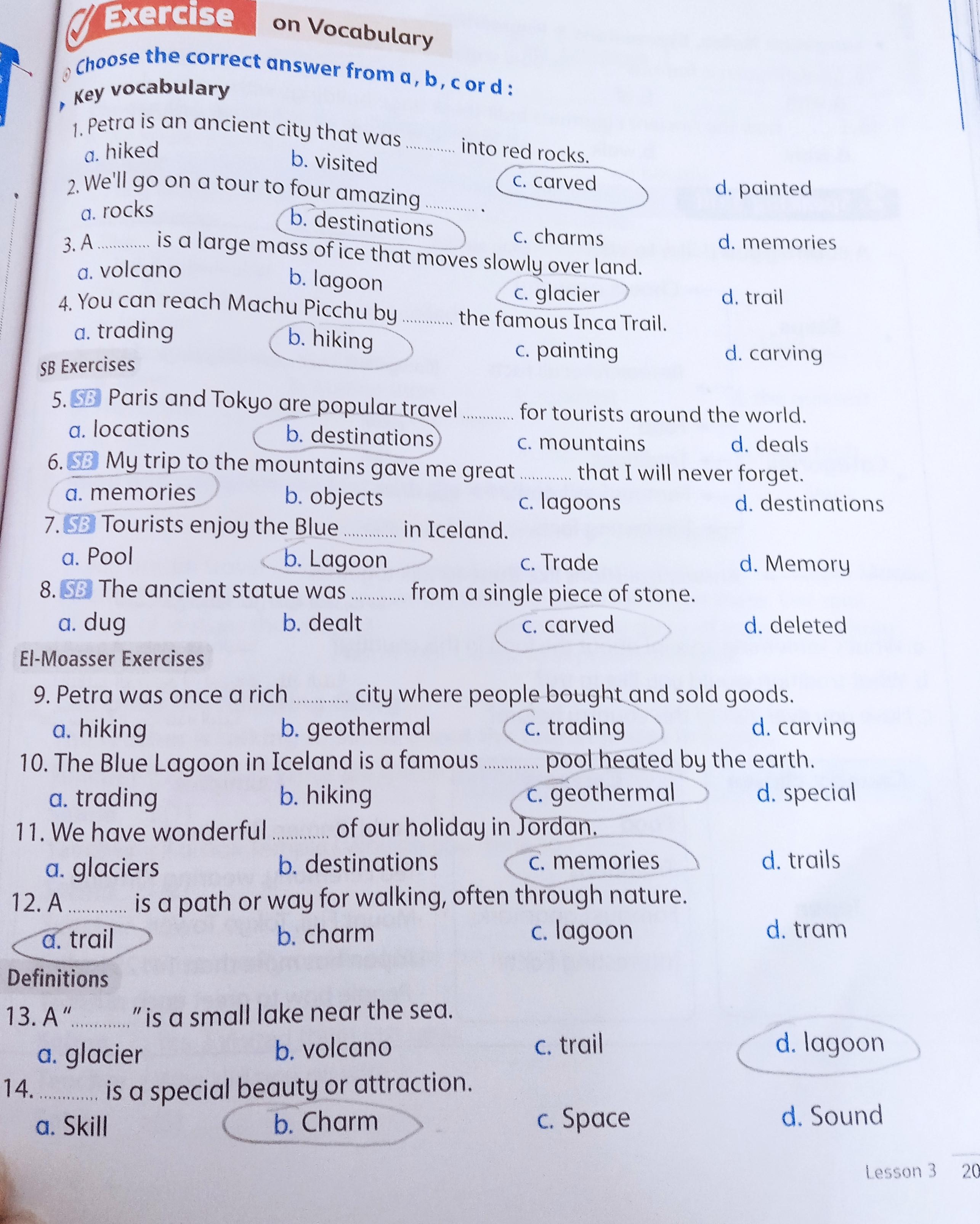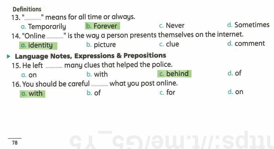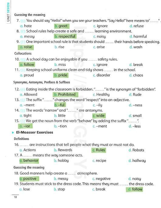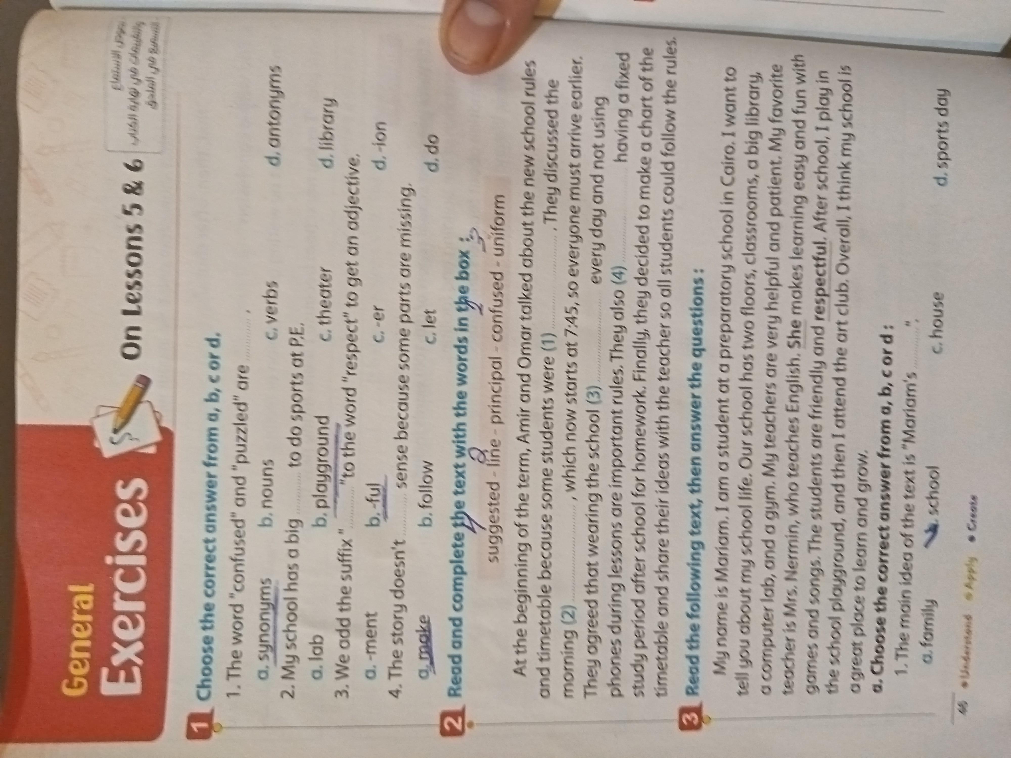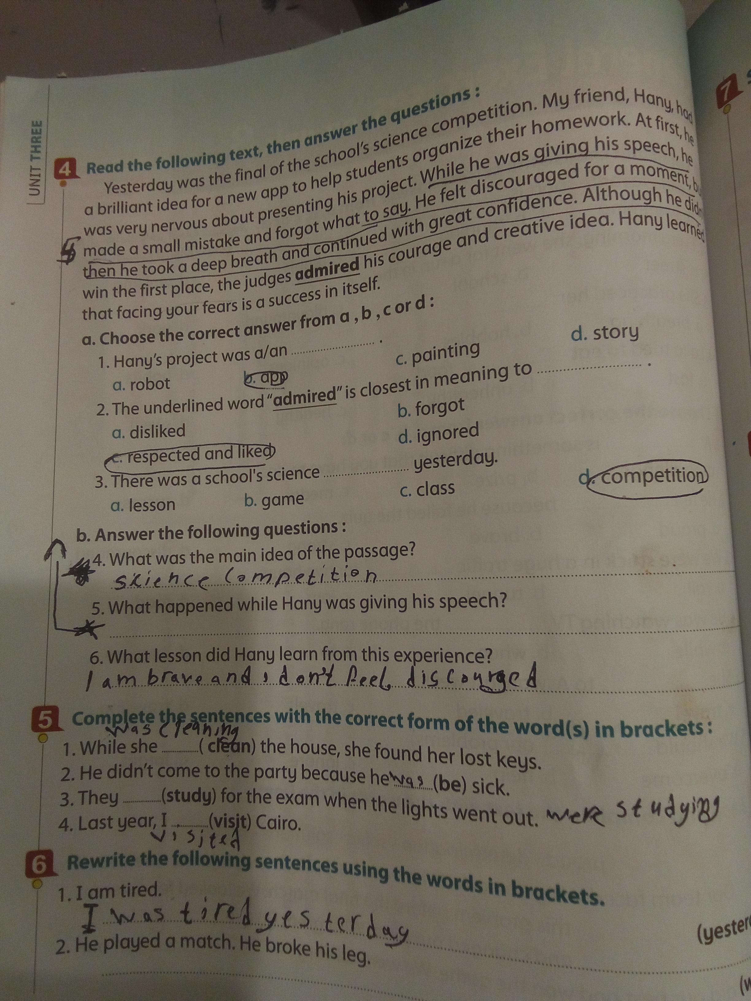 We have studied Lessons 5,6 in unit 1. Memorize the key vocabulary in page 38 answer these questions