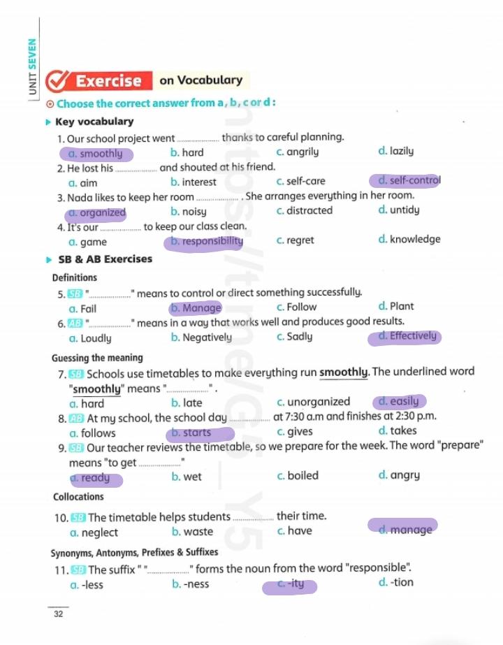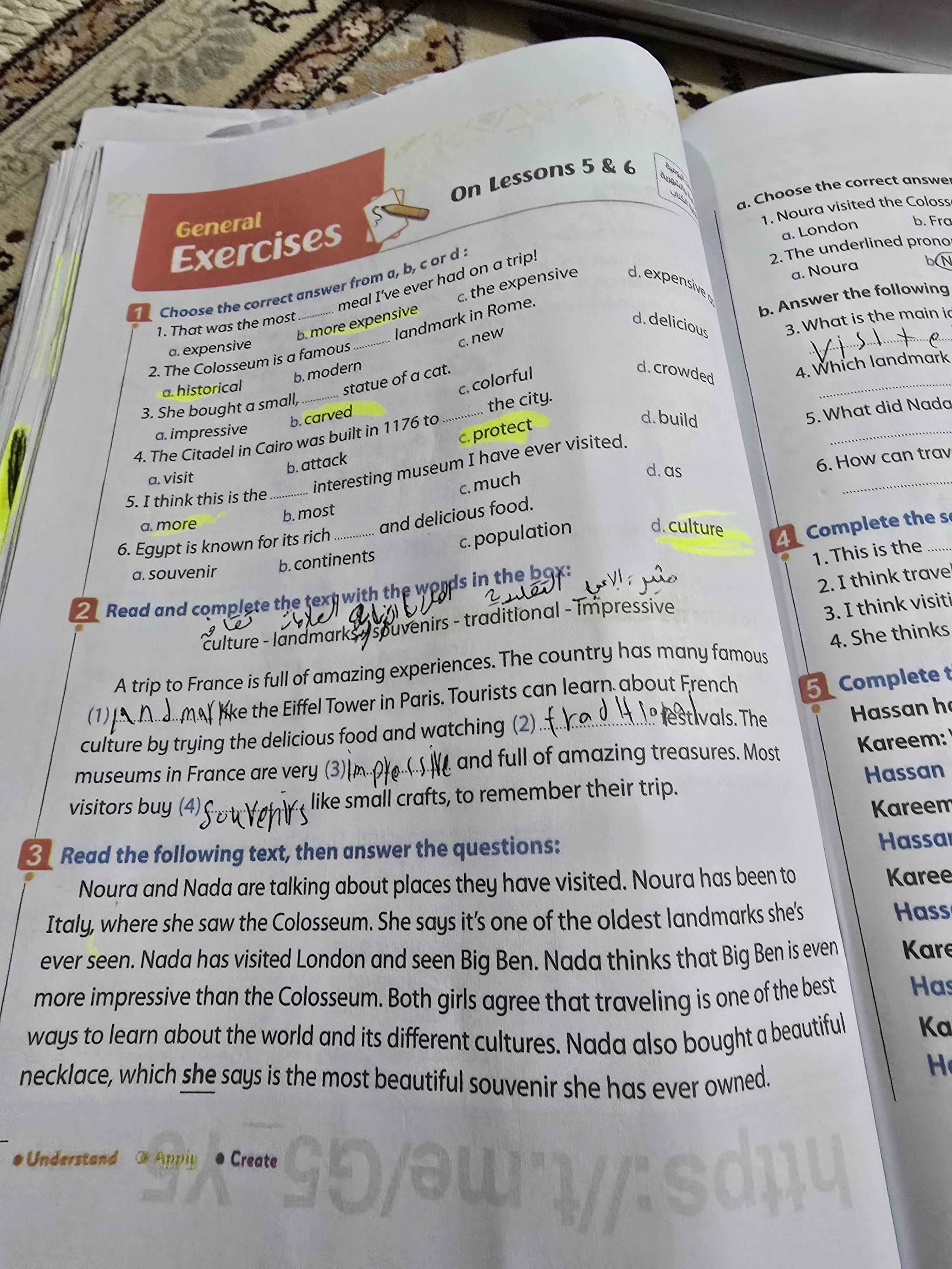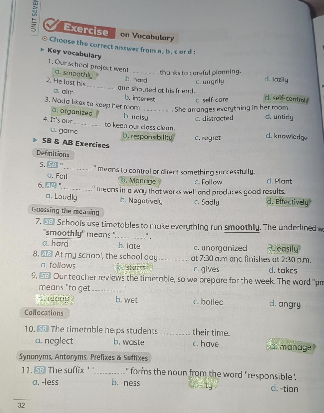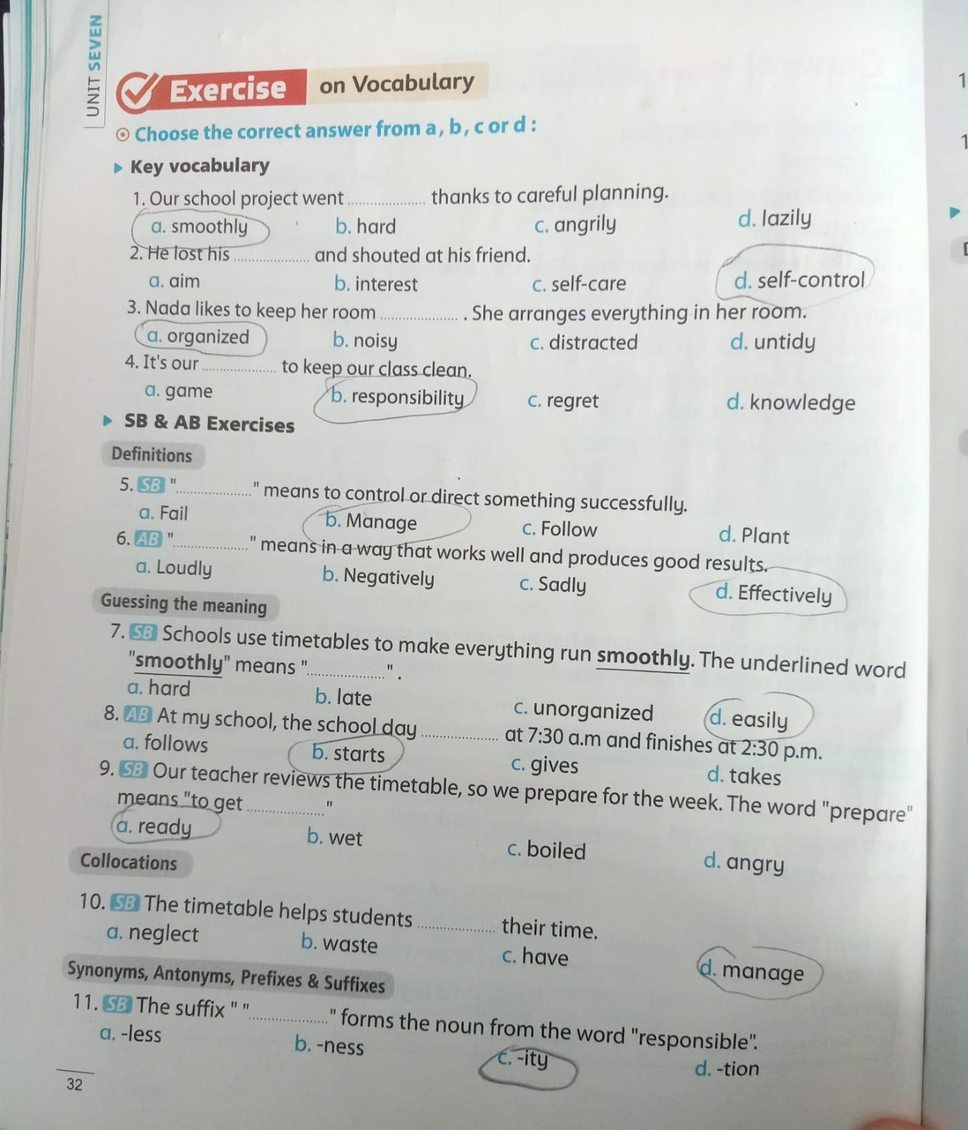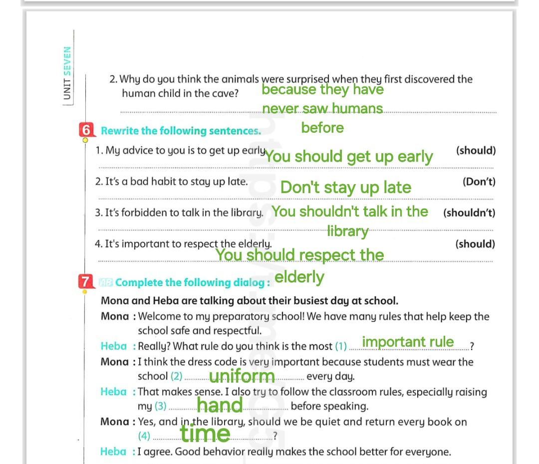 We have studied Lessons 5,6 in unit 1. Memorize the key vocabulary in page 38 answer these questions