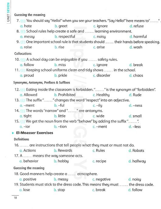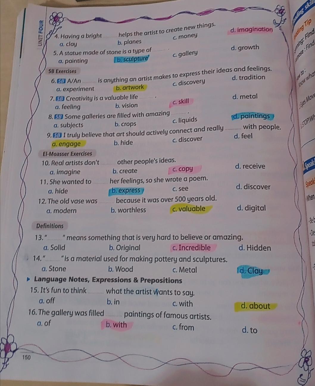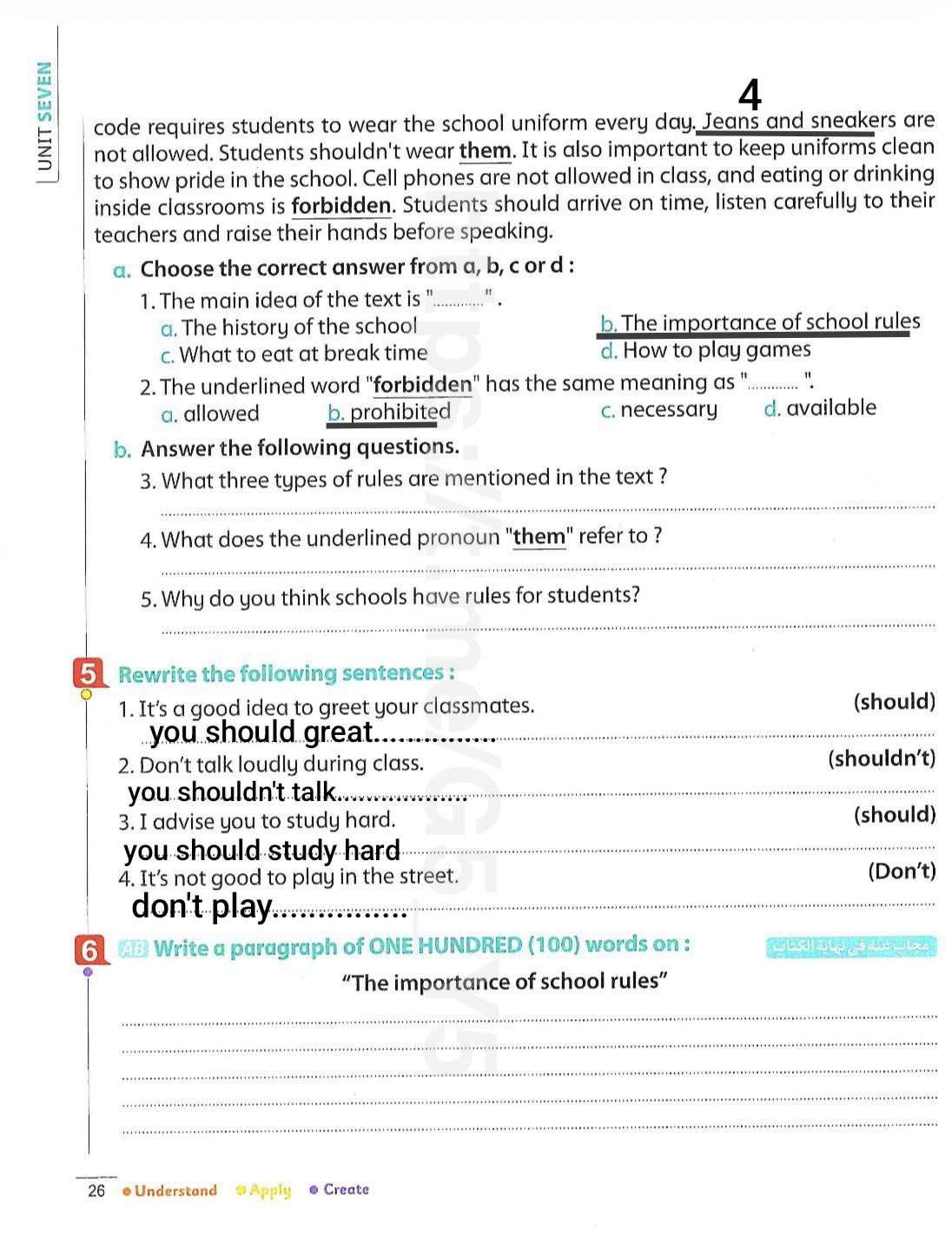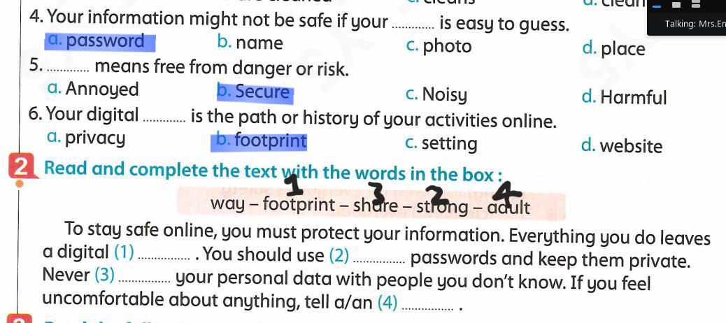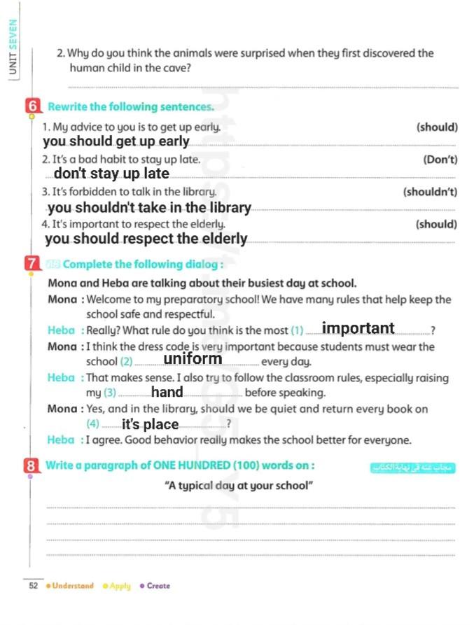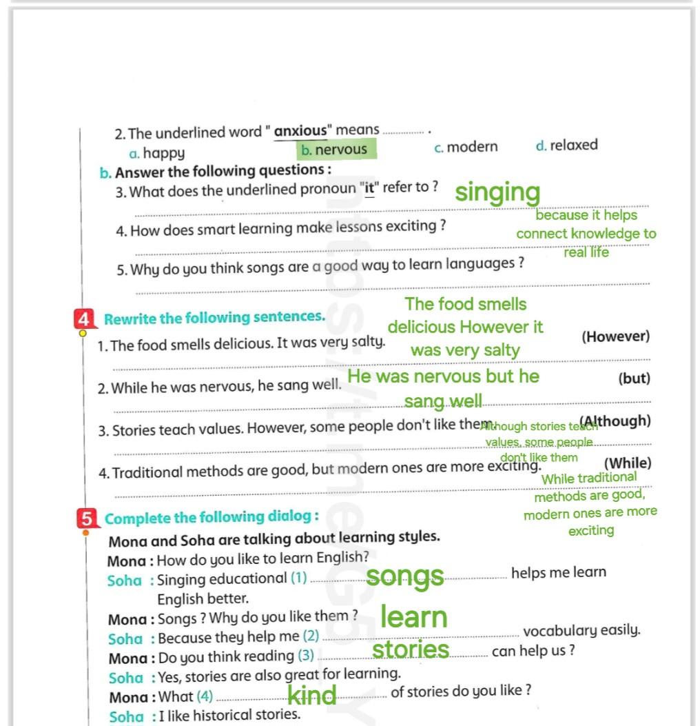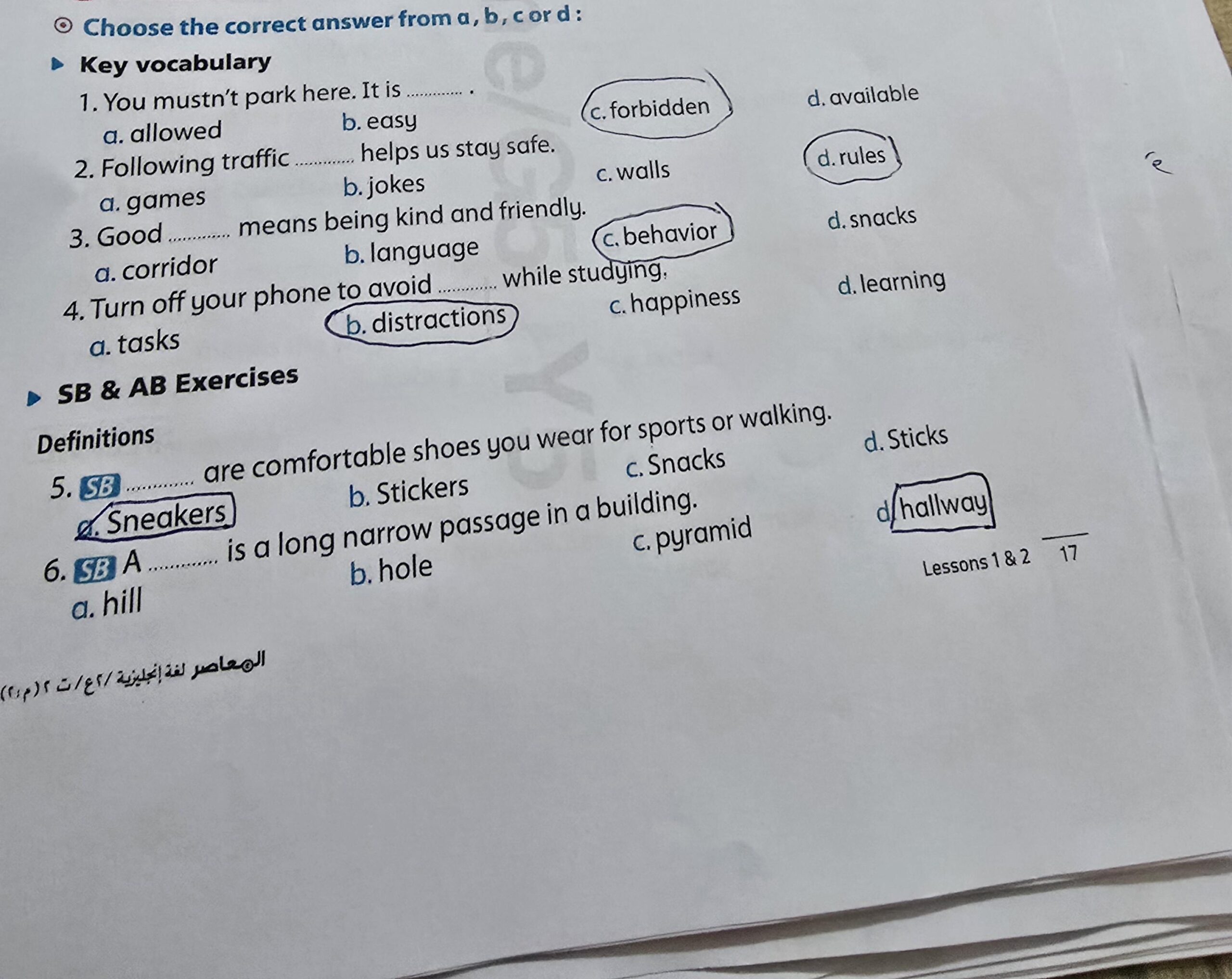 We have studied Lessons 5,6 in unit 1. Memorize the key vocabulary in page 38 answer these questions
