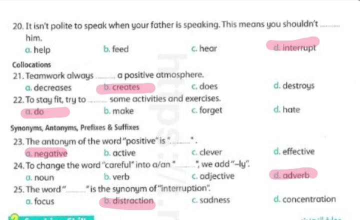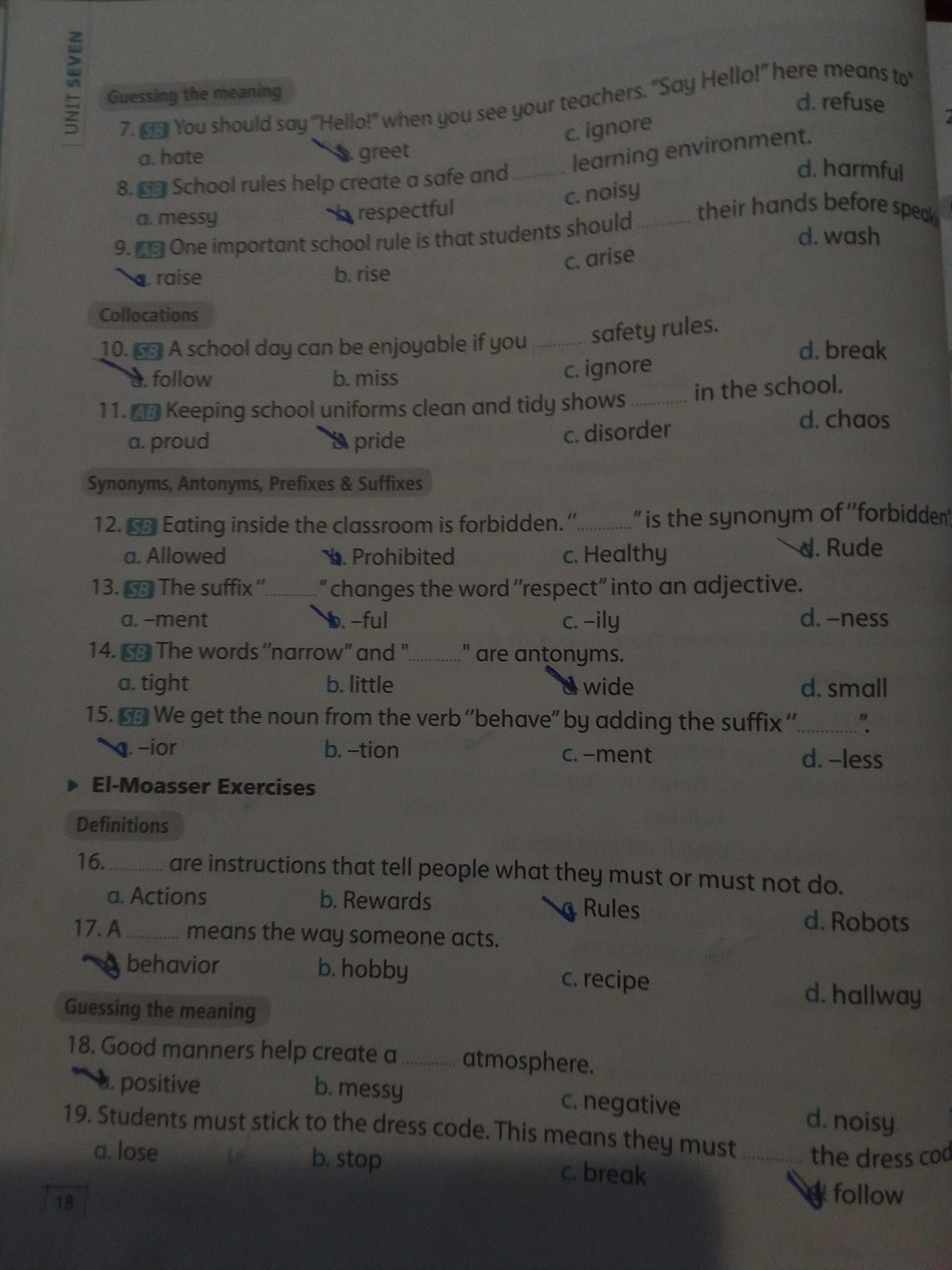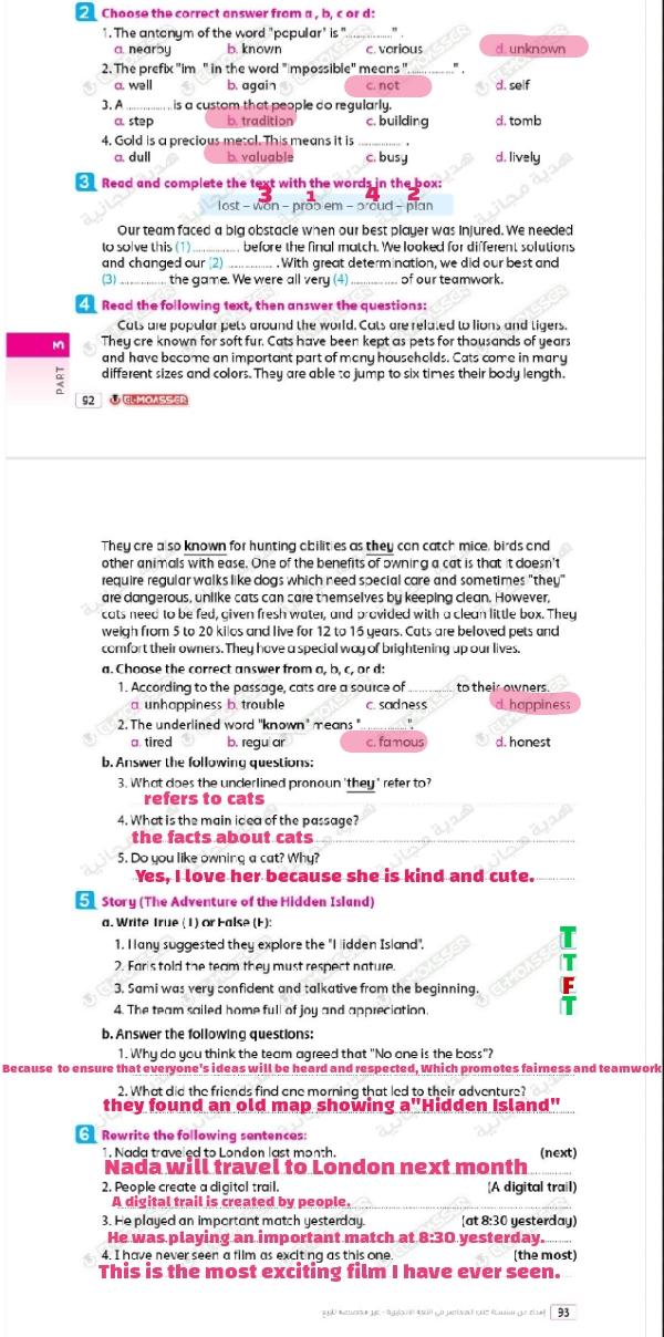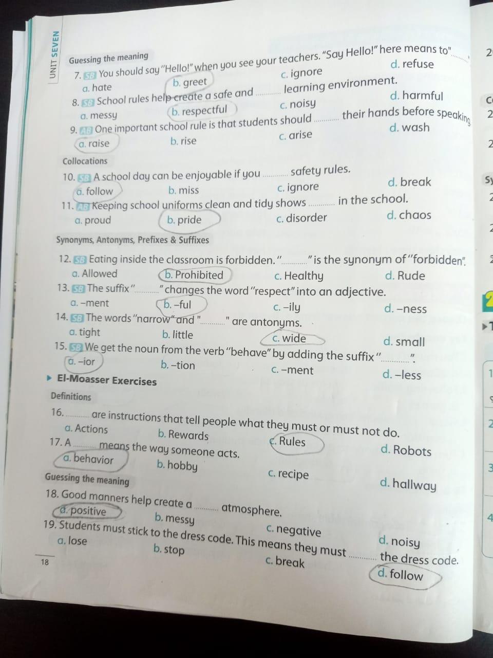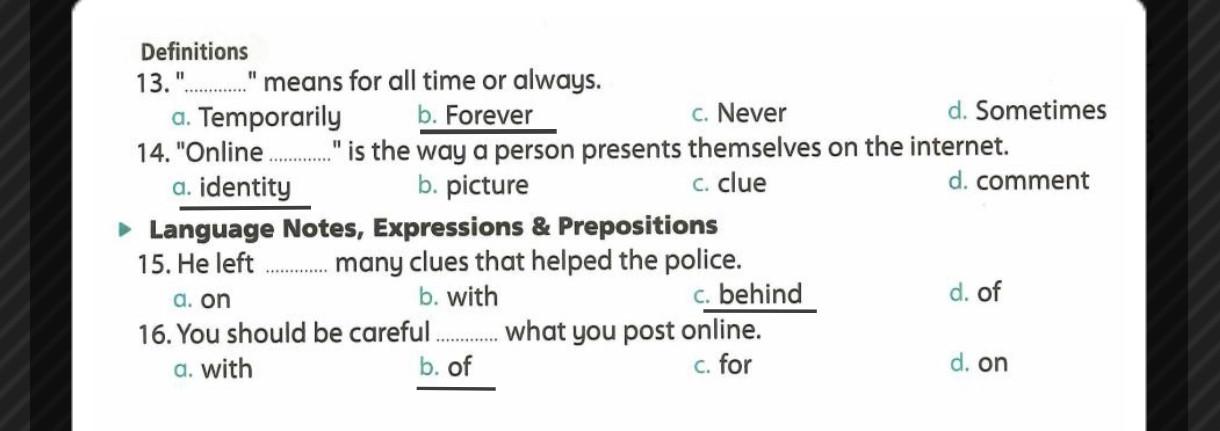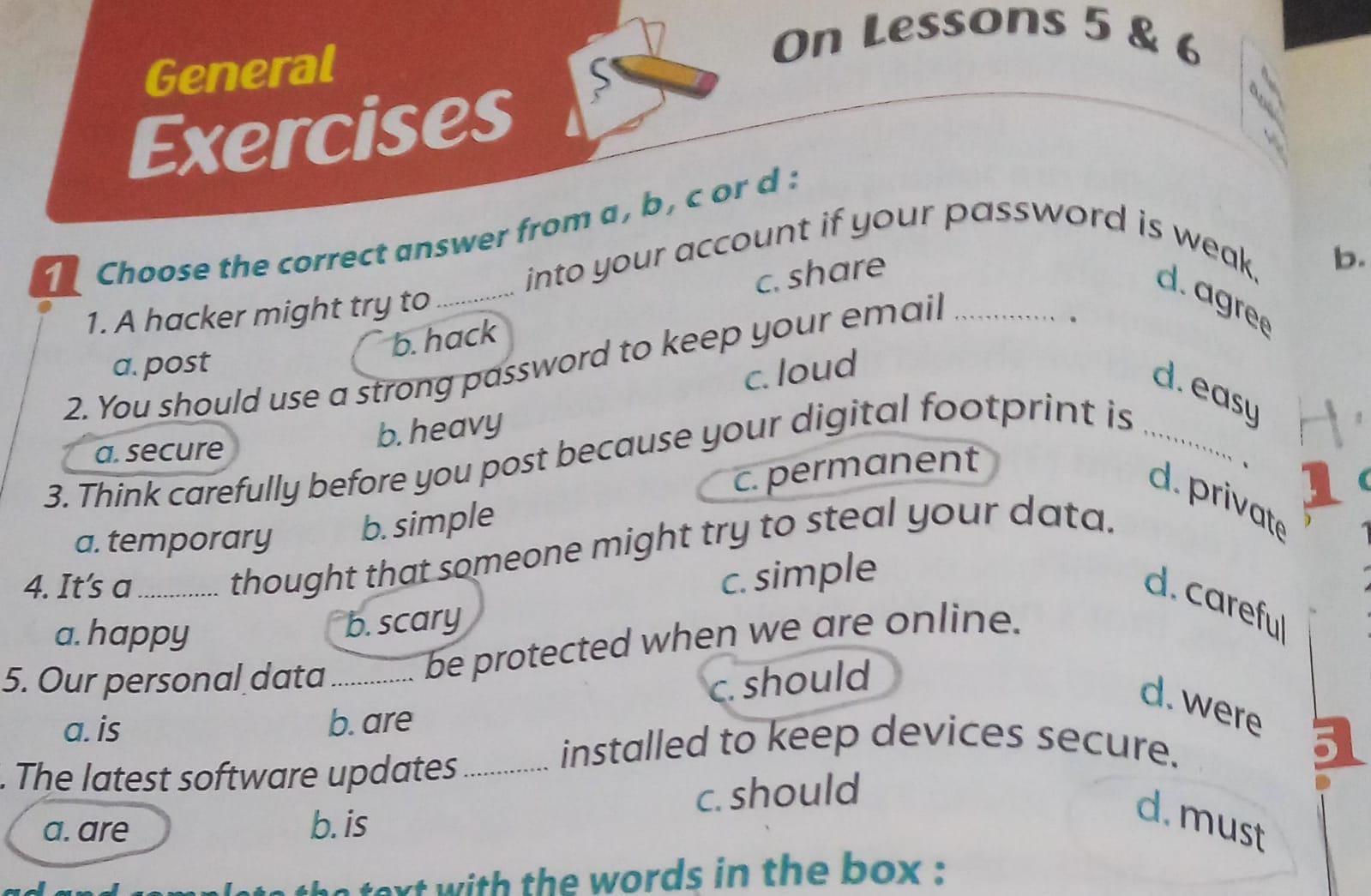We have studied Lessons 5,6 in unit 1. Memorize the key vocabulary in page 38 answer these questions