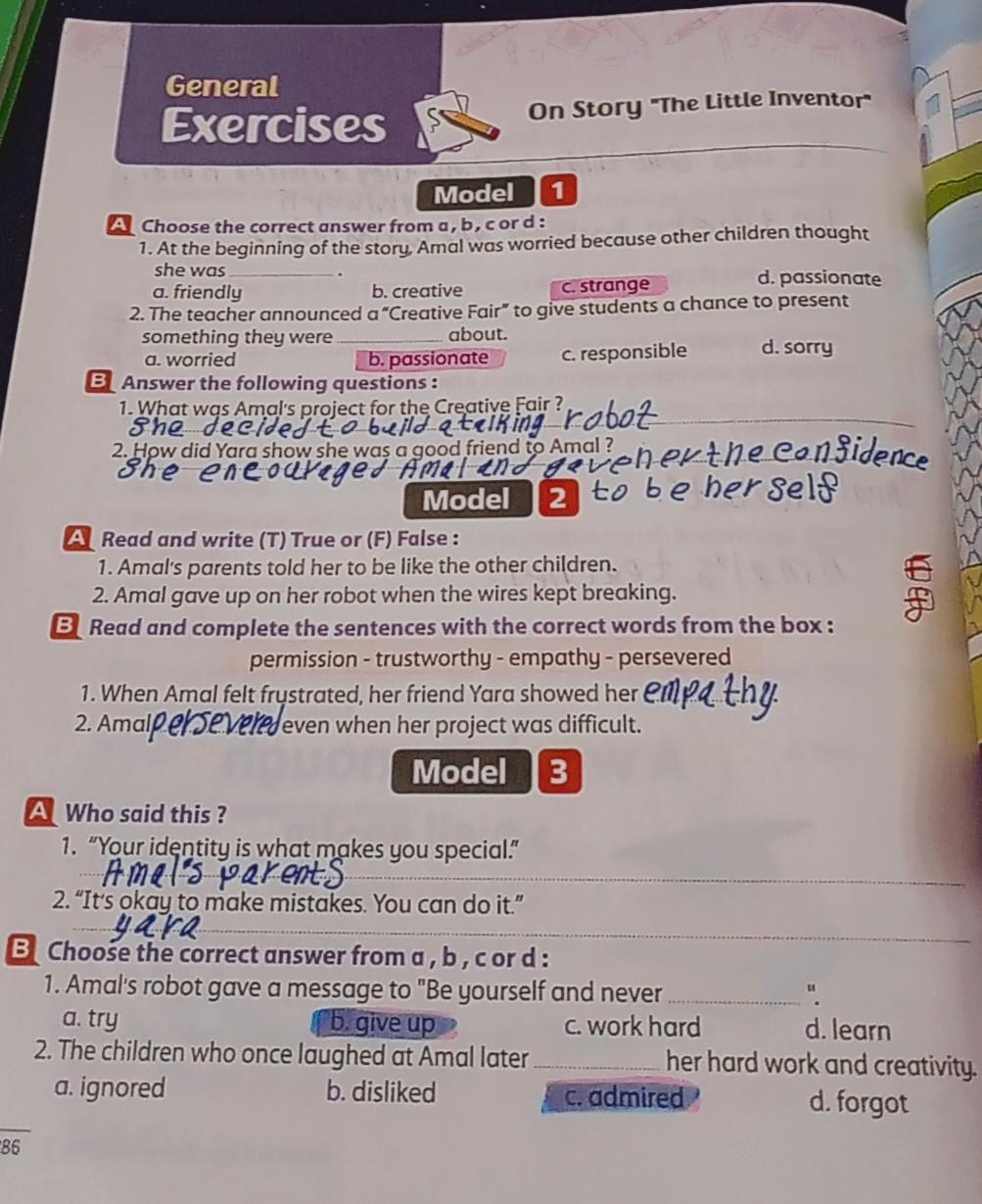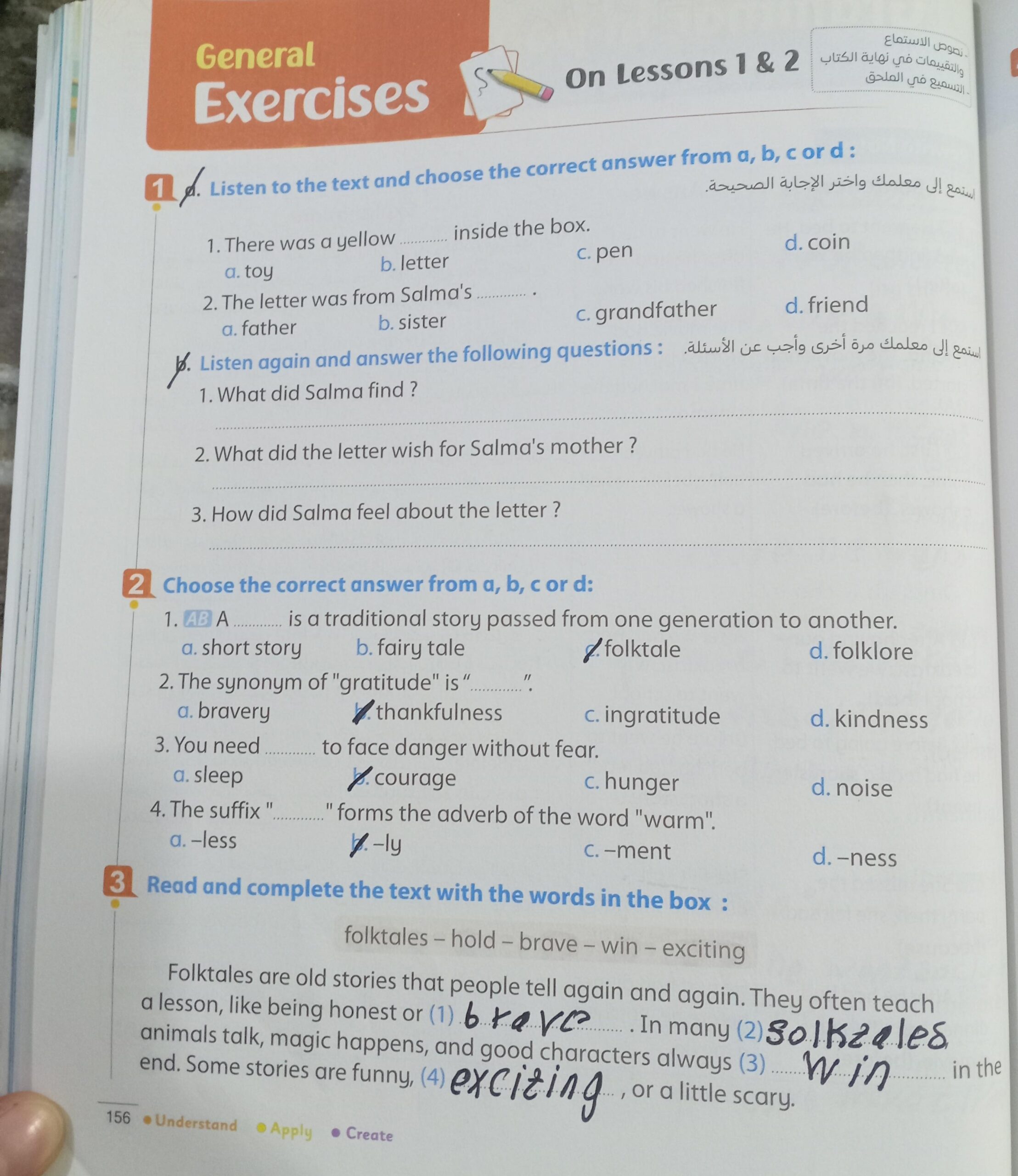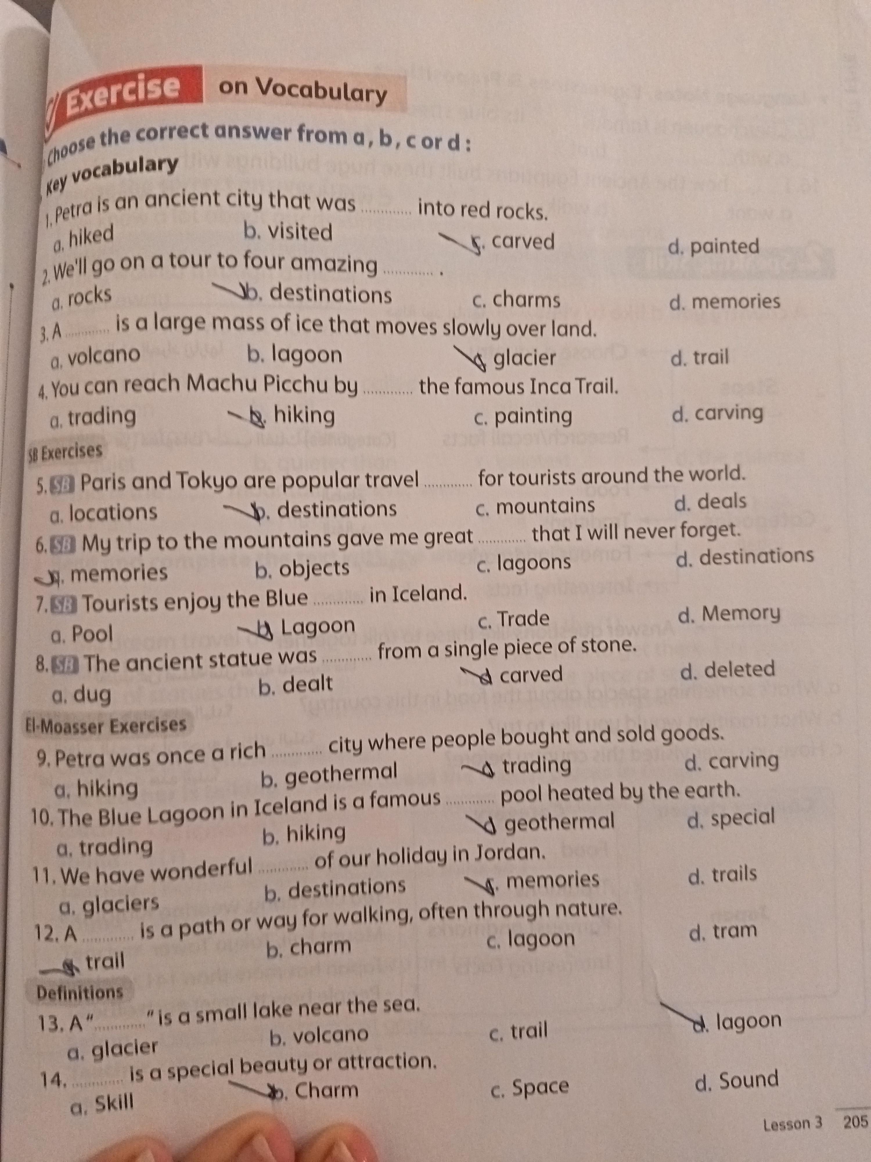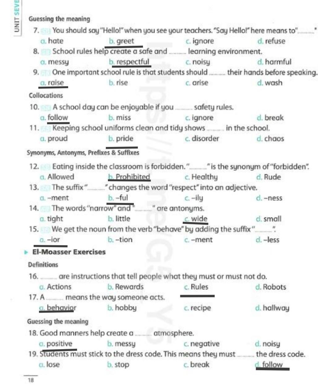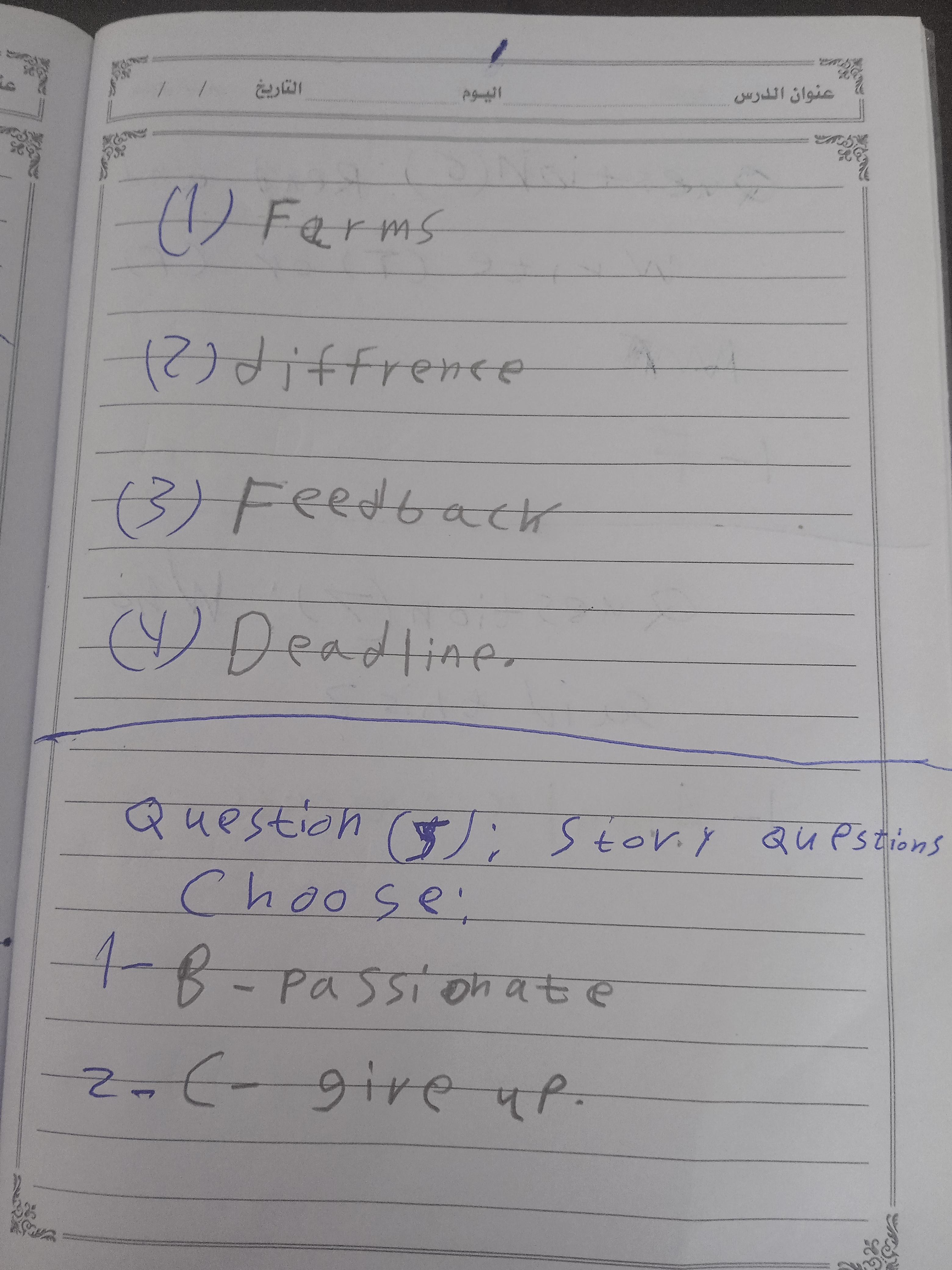 We have studied Lessons 5,6 in unit 1. Memorize the key vocabulary in page 38 answer these questions