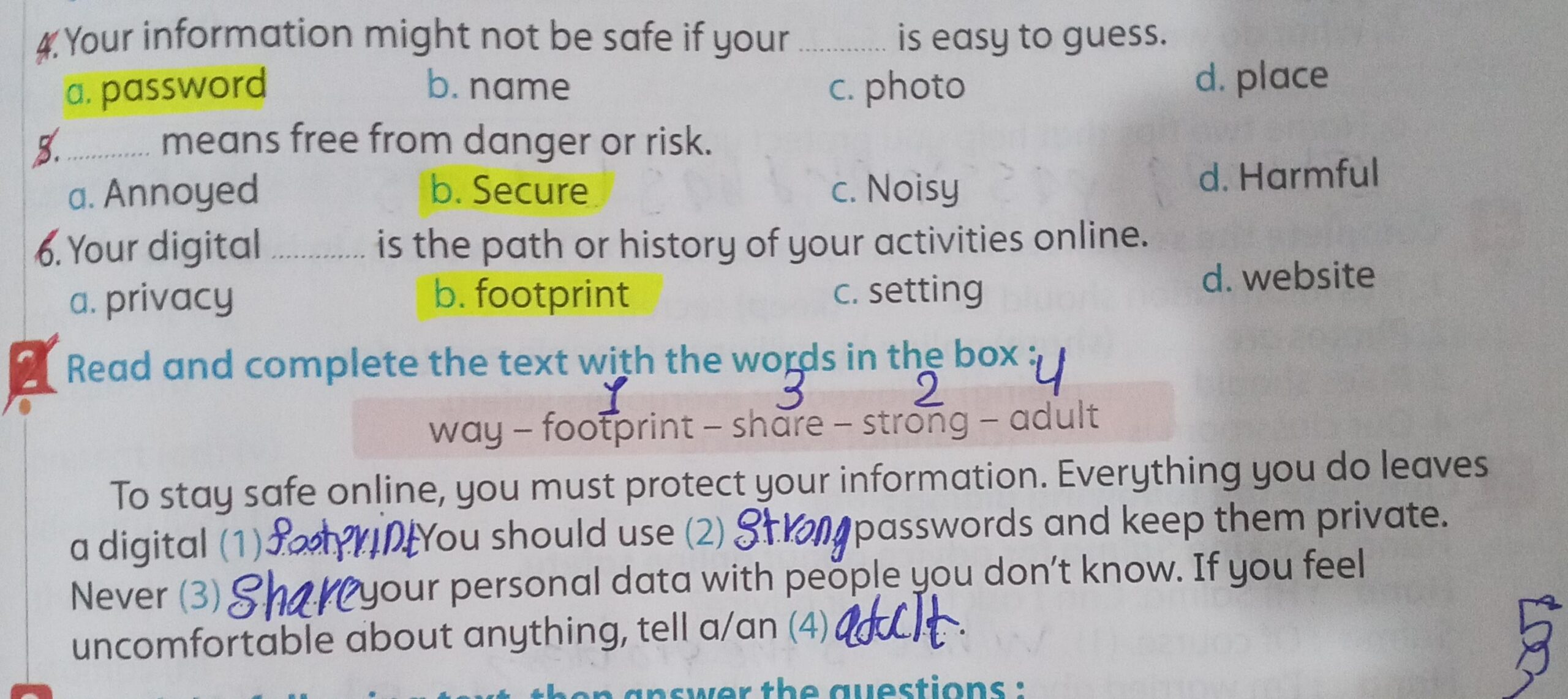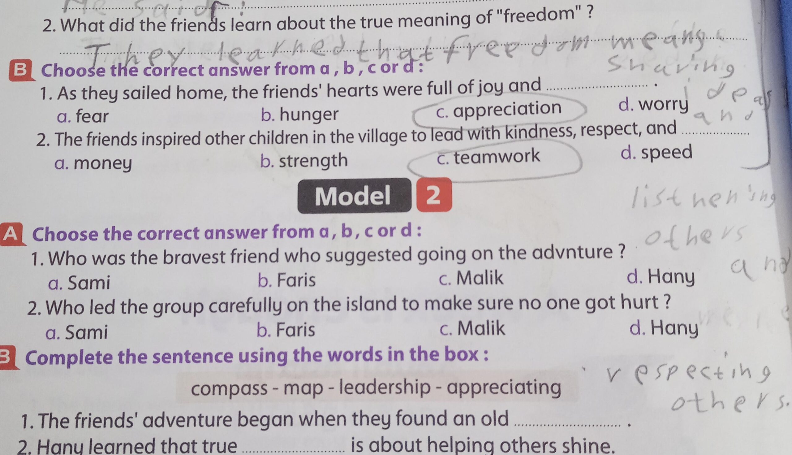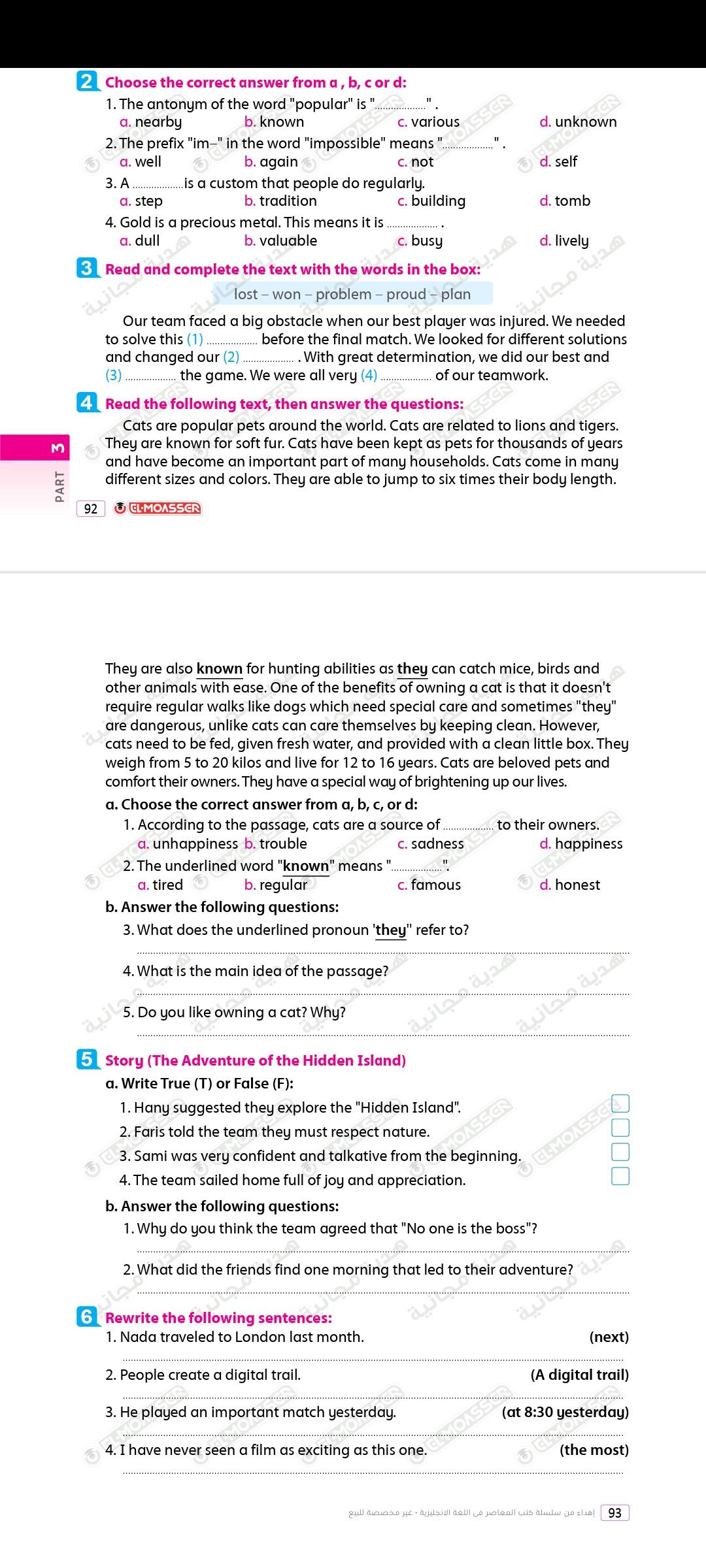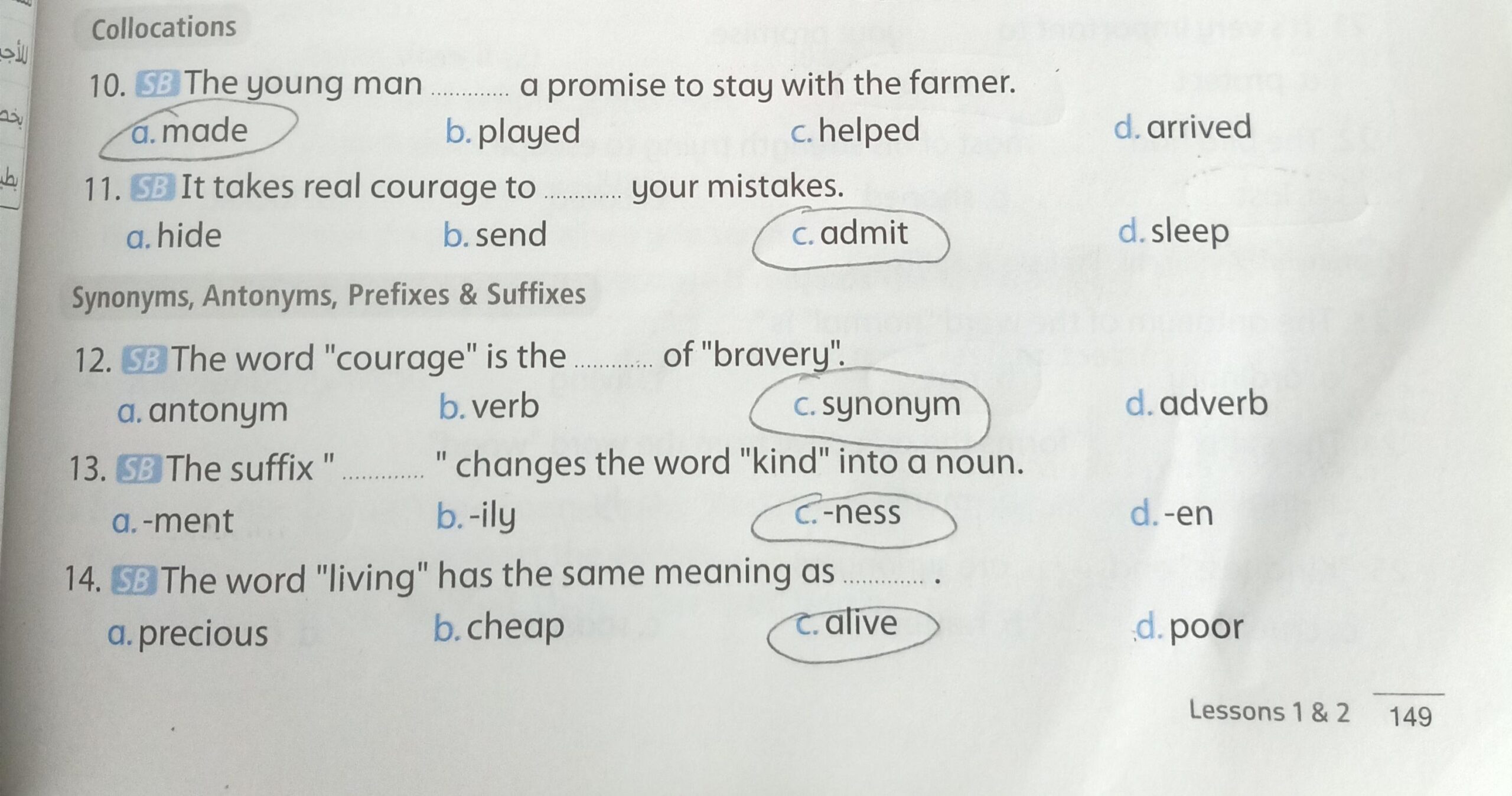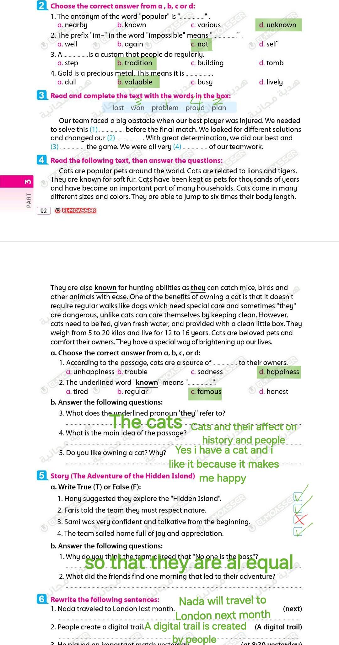 We have studied Lessons 5,6 in unit 1. Memorize the key vocabulary in page 38 answer these questions