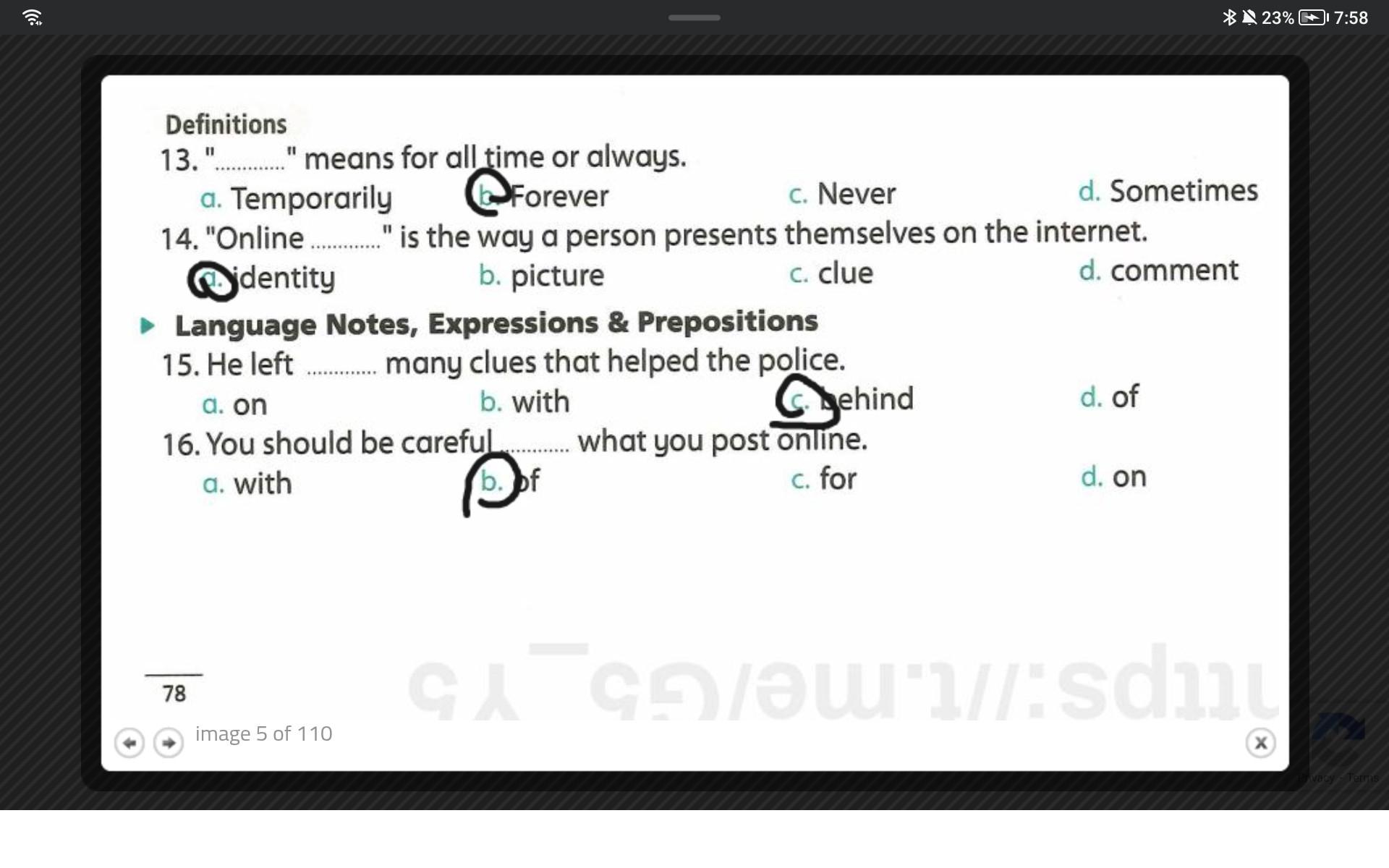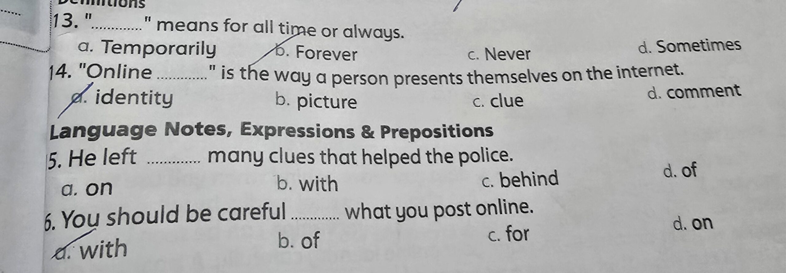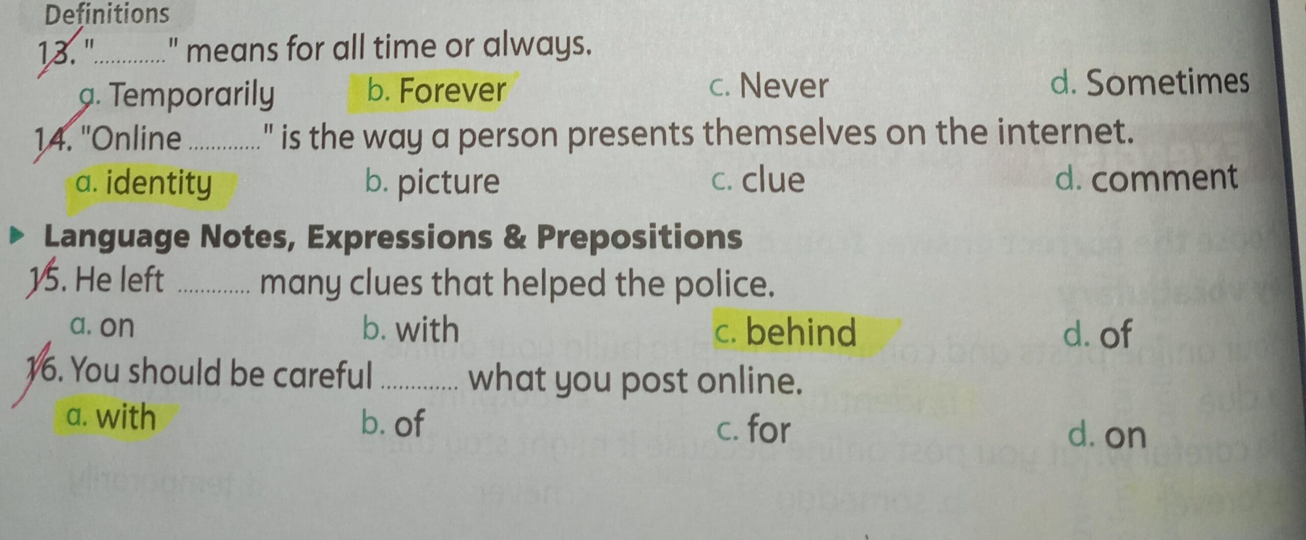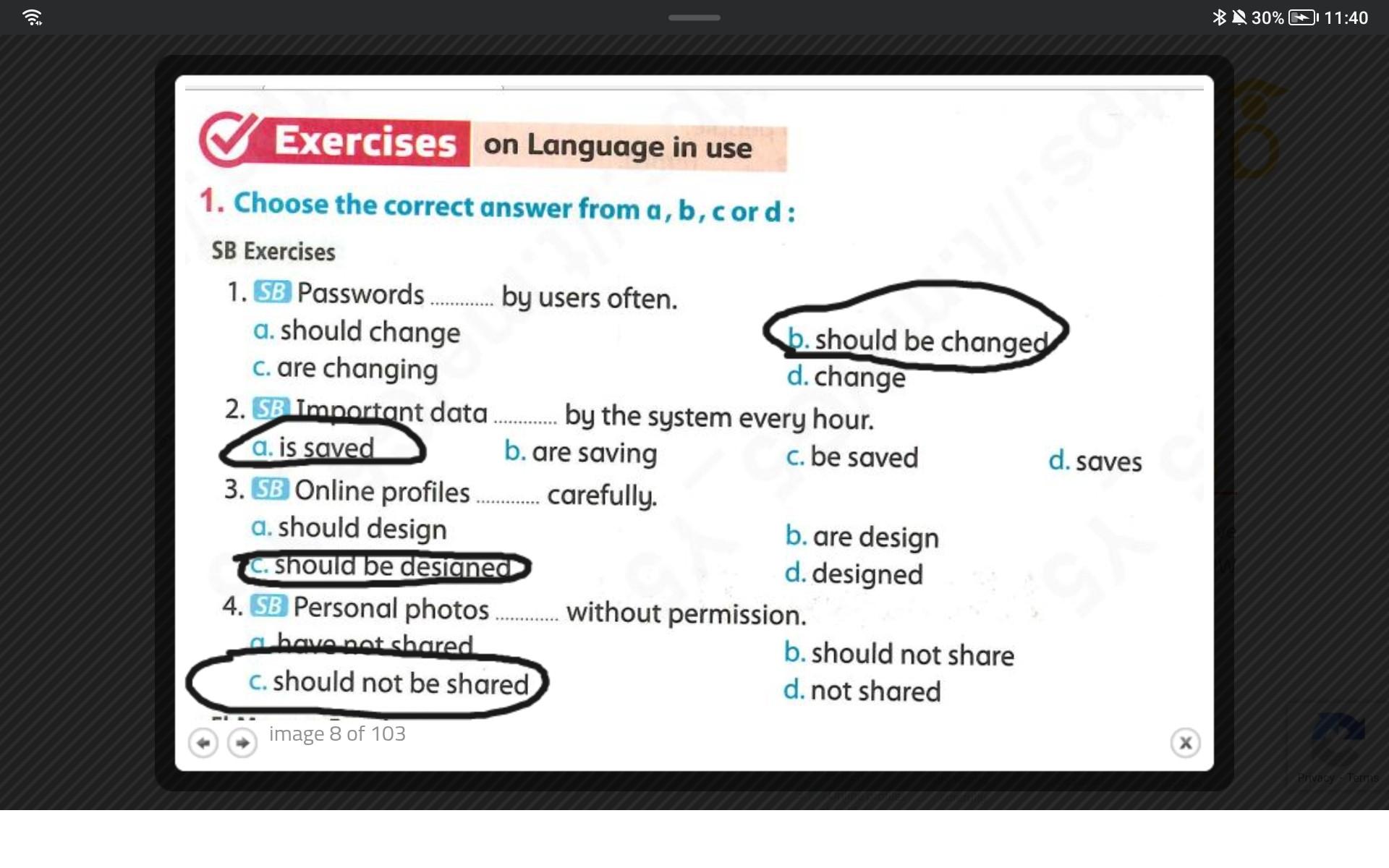We continued U.8 L.5&6 (reading/speaking/writing skills) + covered some of U.9 L.1&2 vocab and answered the choose questions on page 102. Our homework for today is the test on Unit 8 on pages 91, 92, and 93, just like you asked, but don’t get used to that.