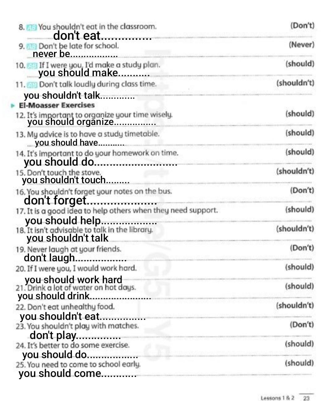 We covered the rest of U.9 L.1&2. Our homework for this session is on pages 103 and 104