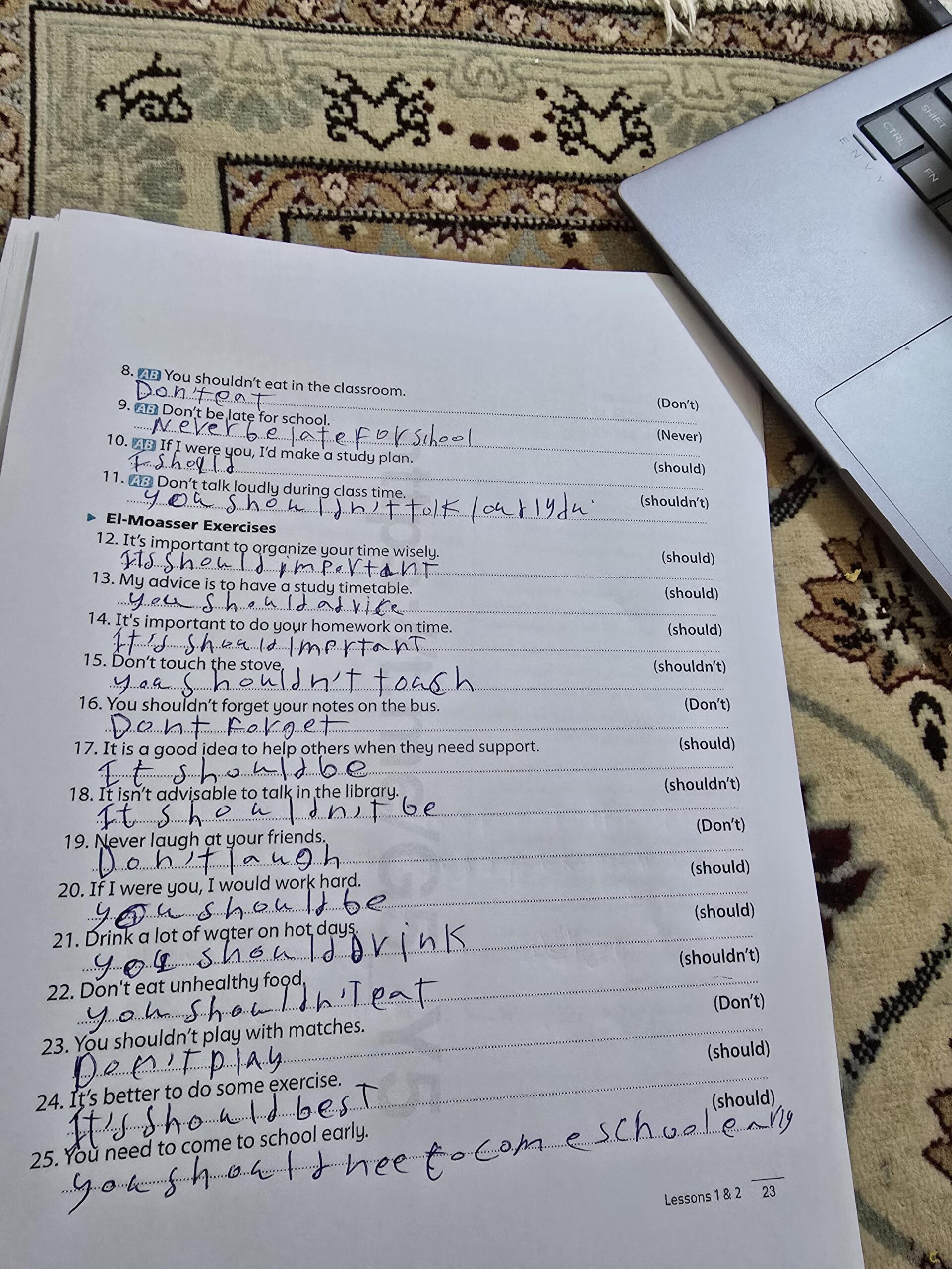 .Today’s homework completed