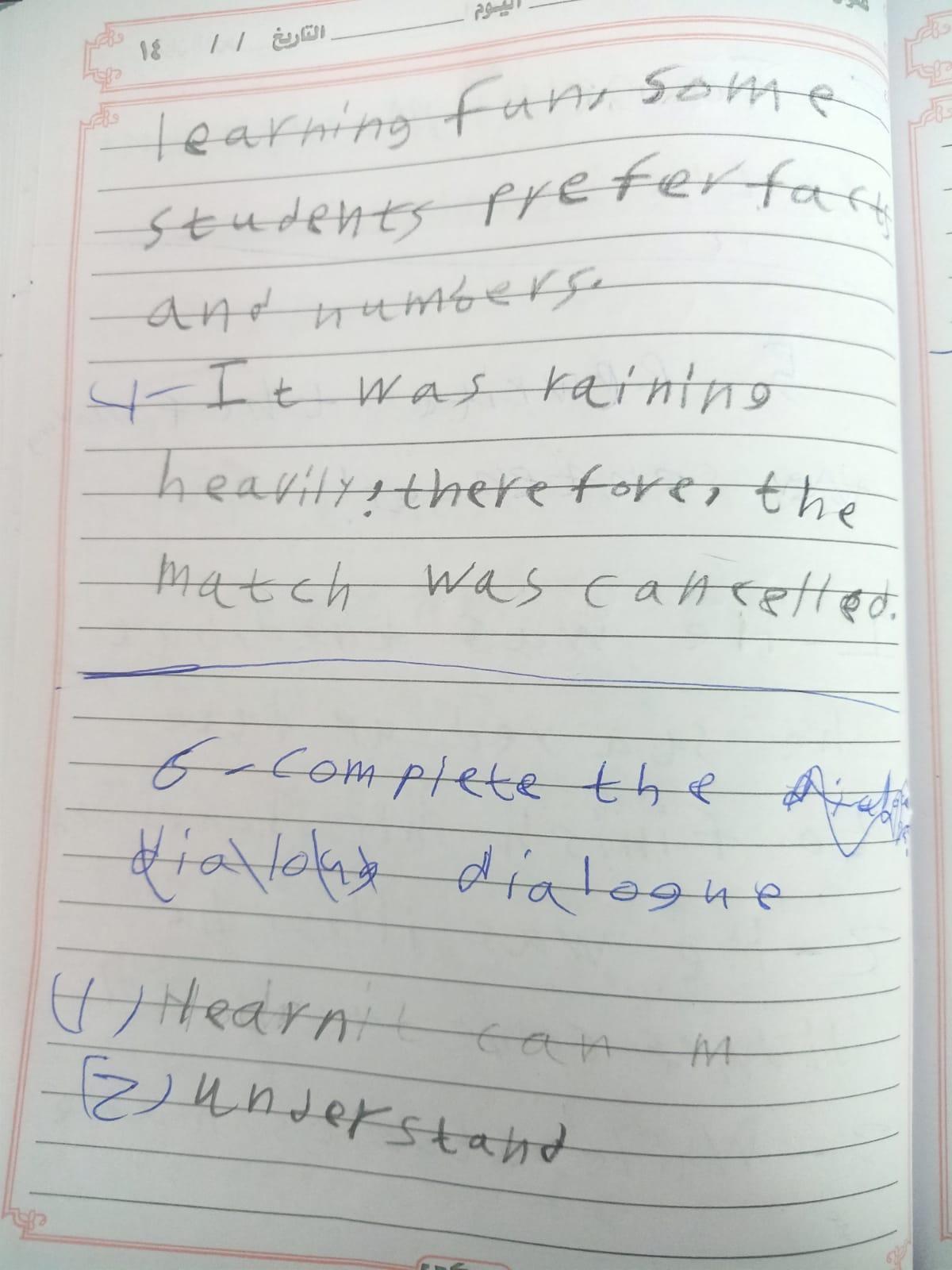 اسف يا مس اتاخرت عشان النت فصل