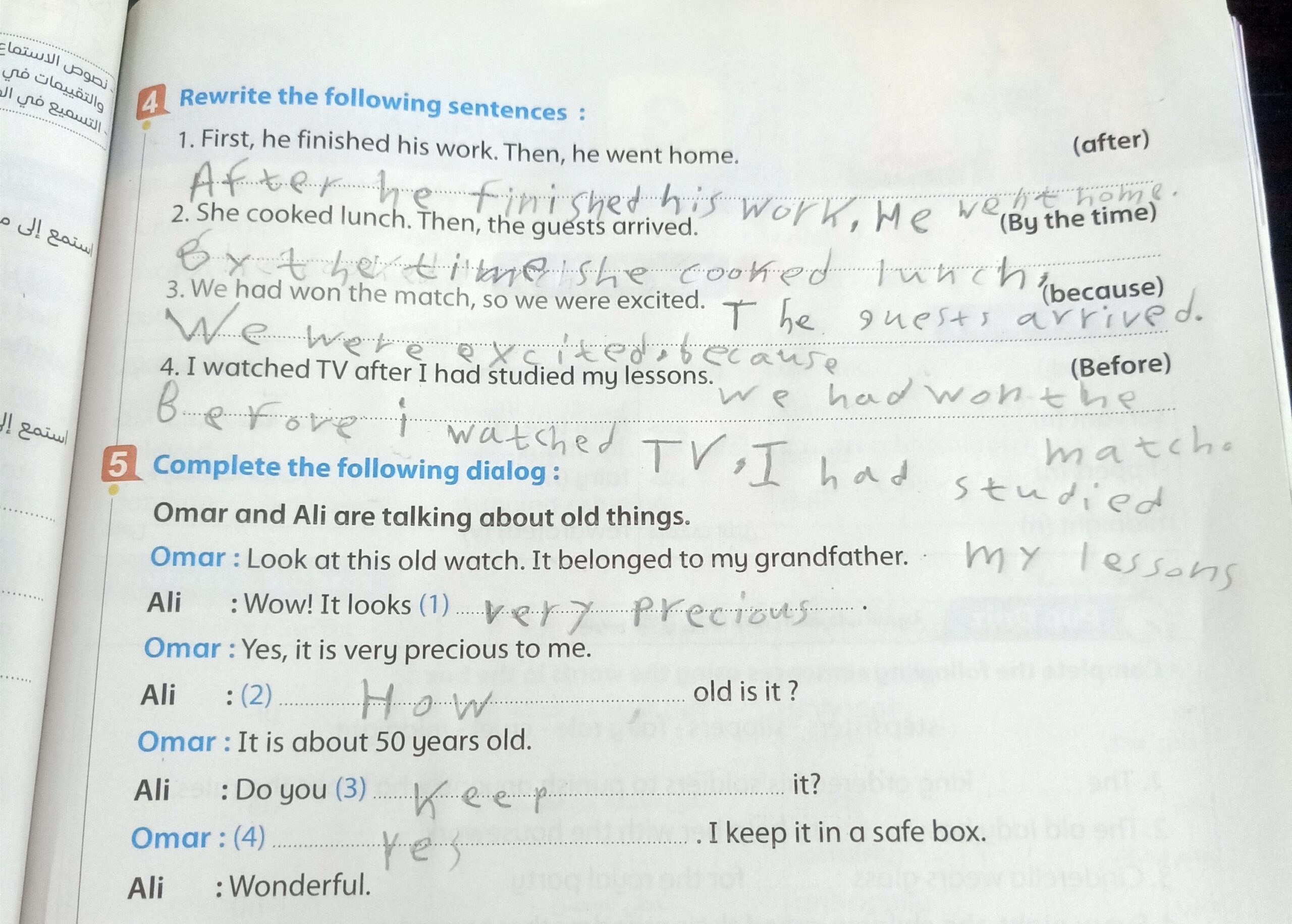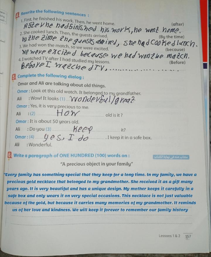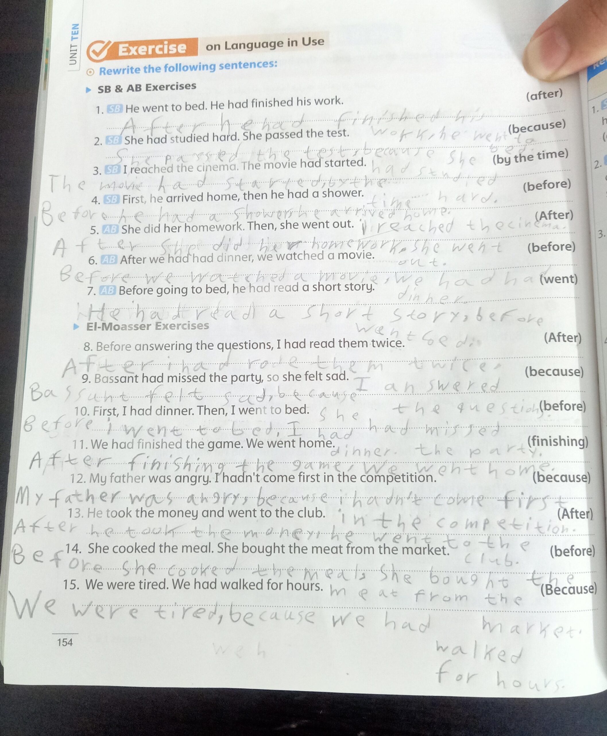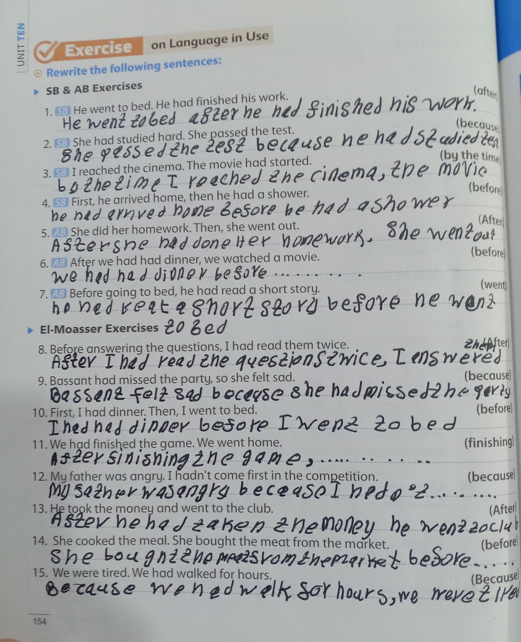 Today, we took the past perfect tense grammar lesson in U.10, and our homework for today pages 154 on the grammar + 156 and 157 on U.10 L.1&2.