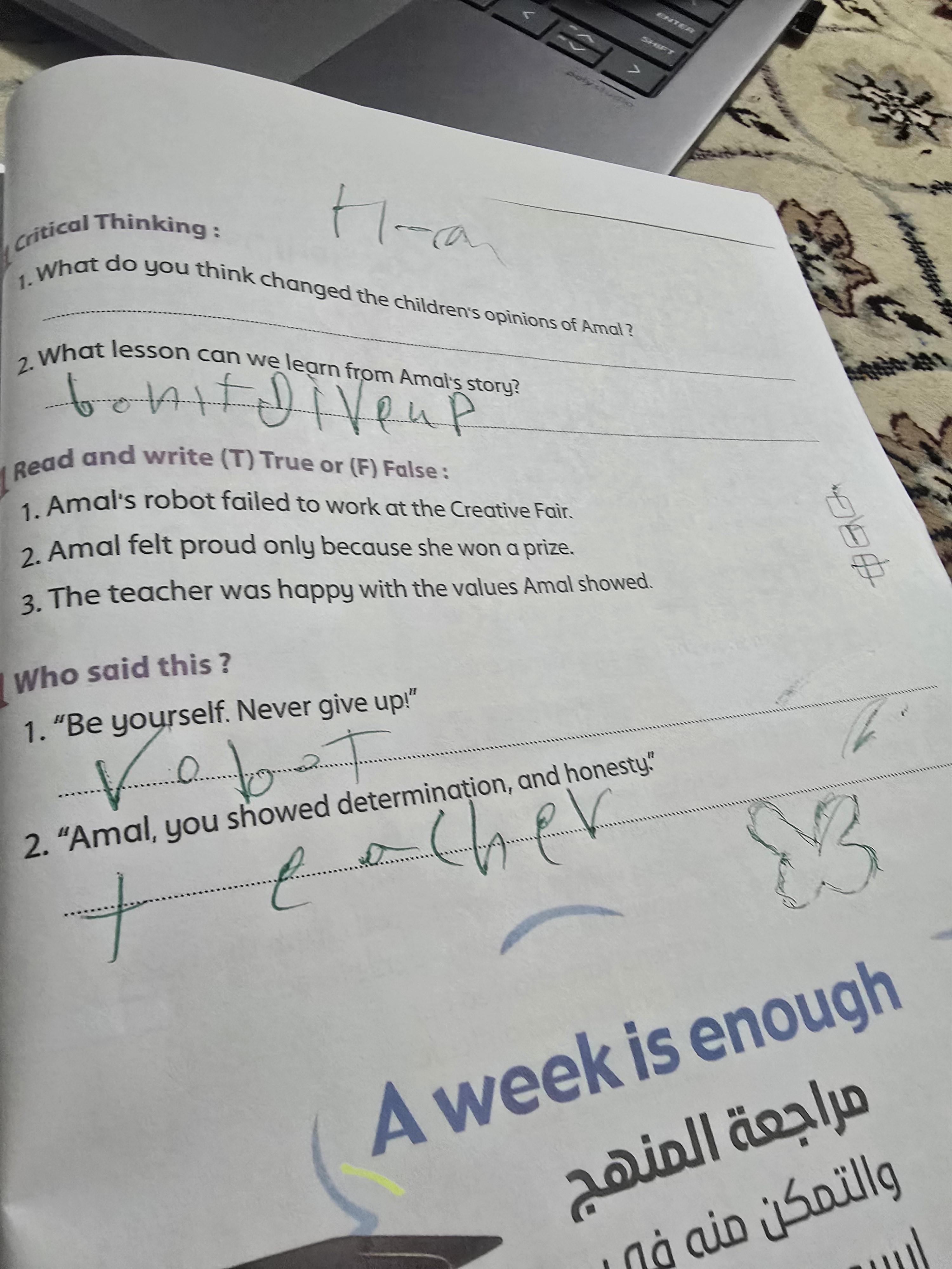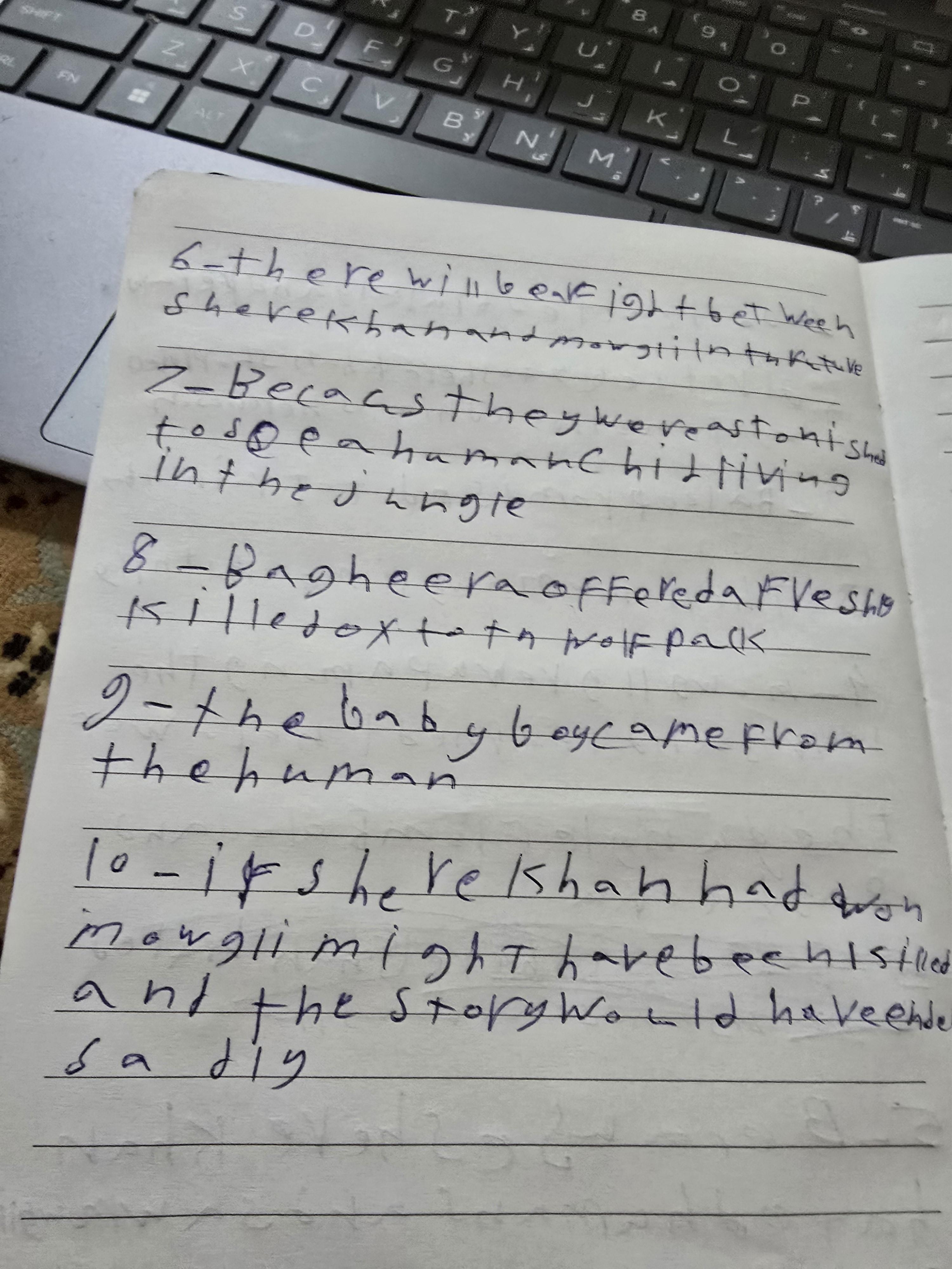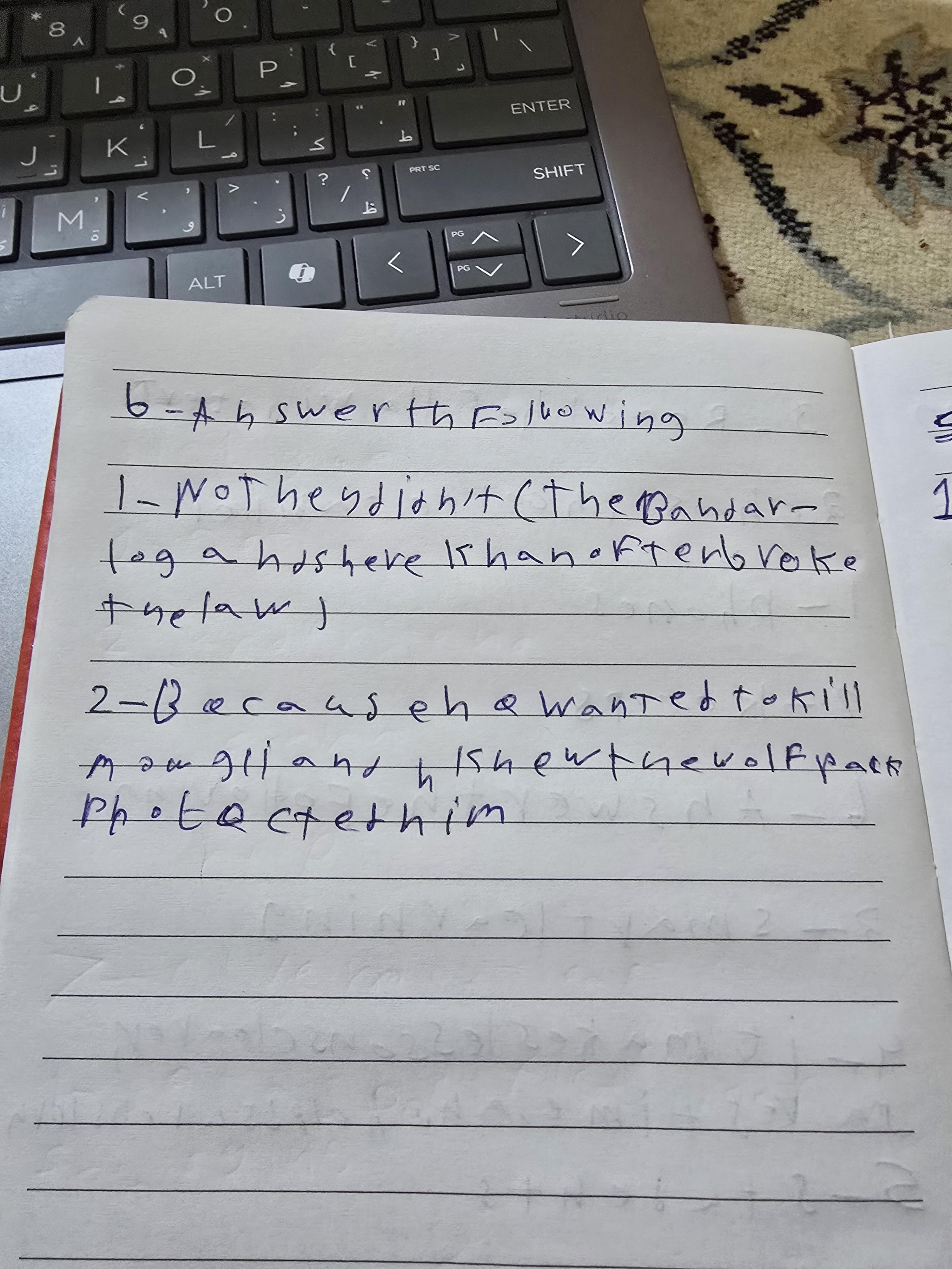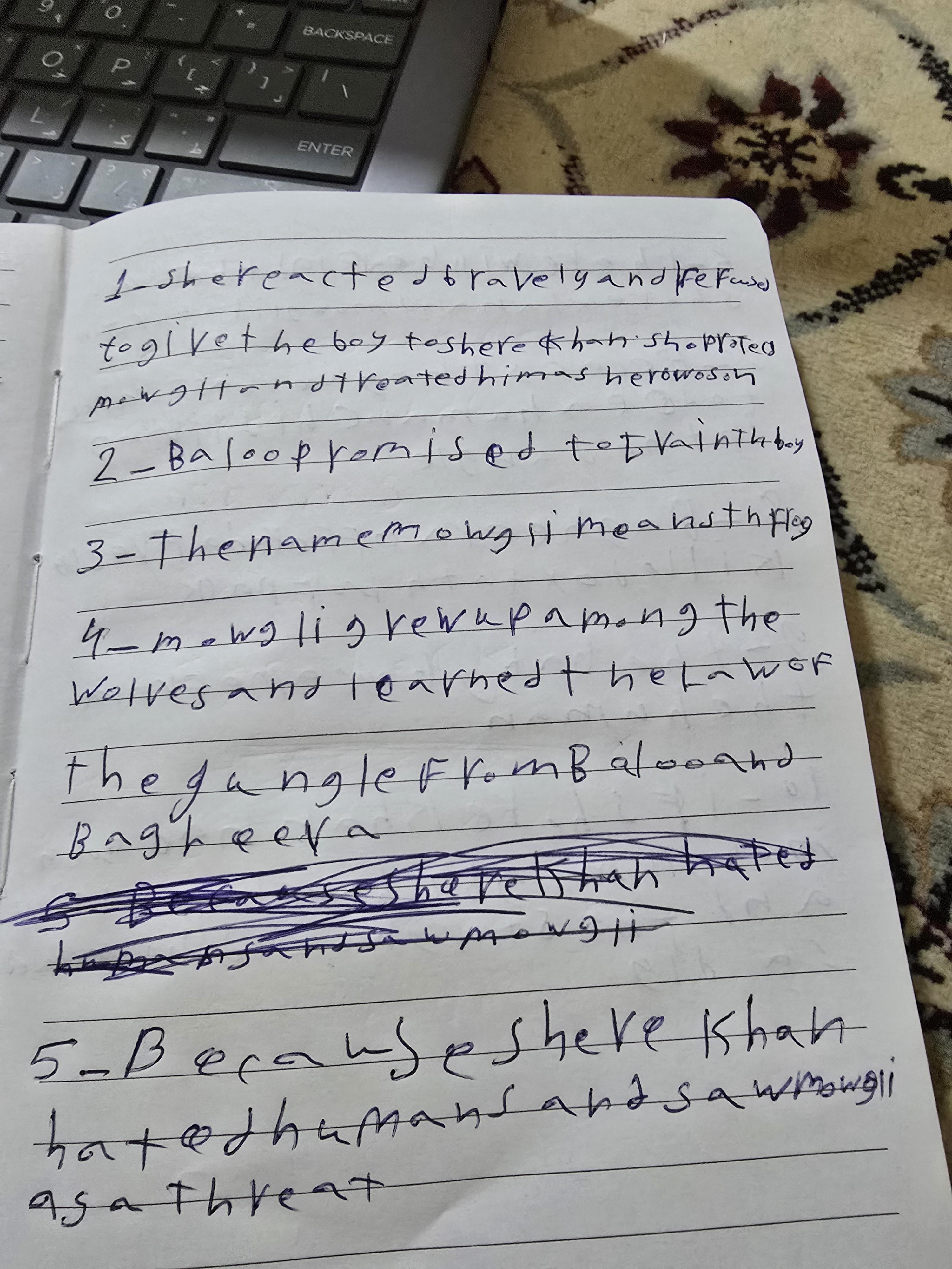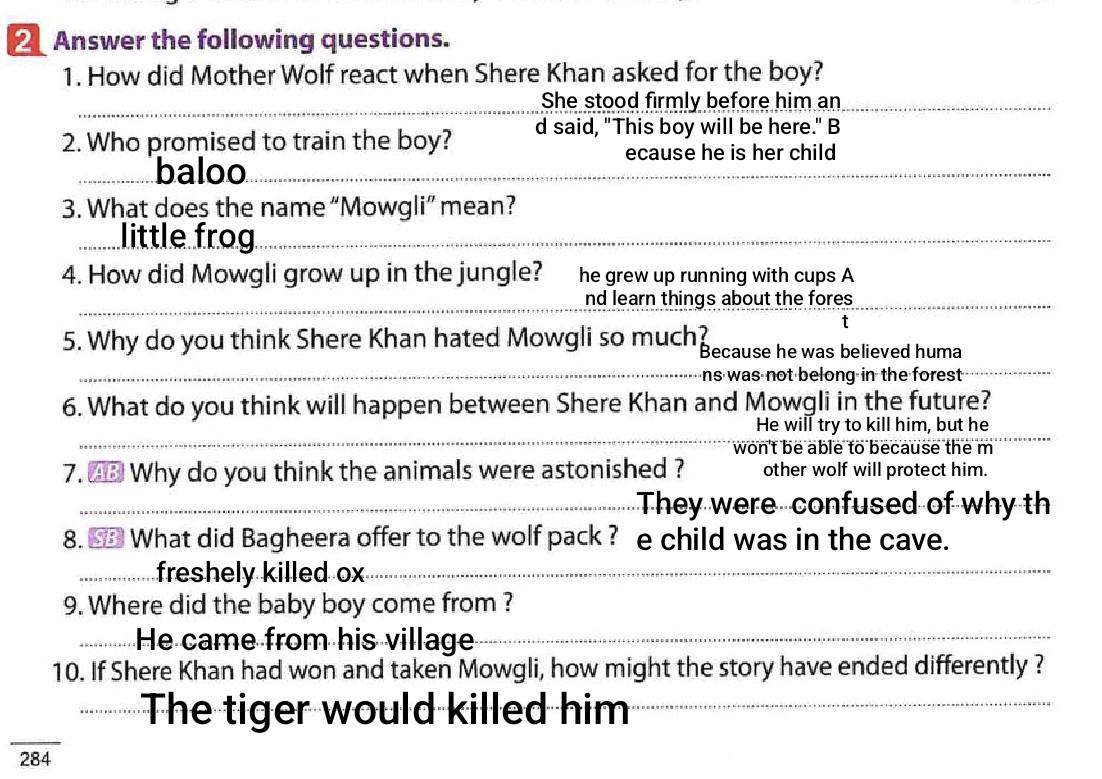 We’ve read chapter 2 of “The Jungle Book,”and discussed its questions. Thank you so much for your effort today, despite fasting and feeling tired, but I truly enjoyed the class. Keep up the ✨✨ good work, lovely humans