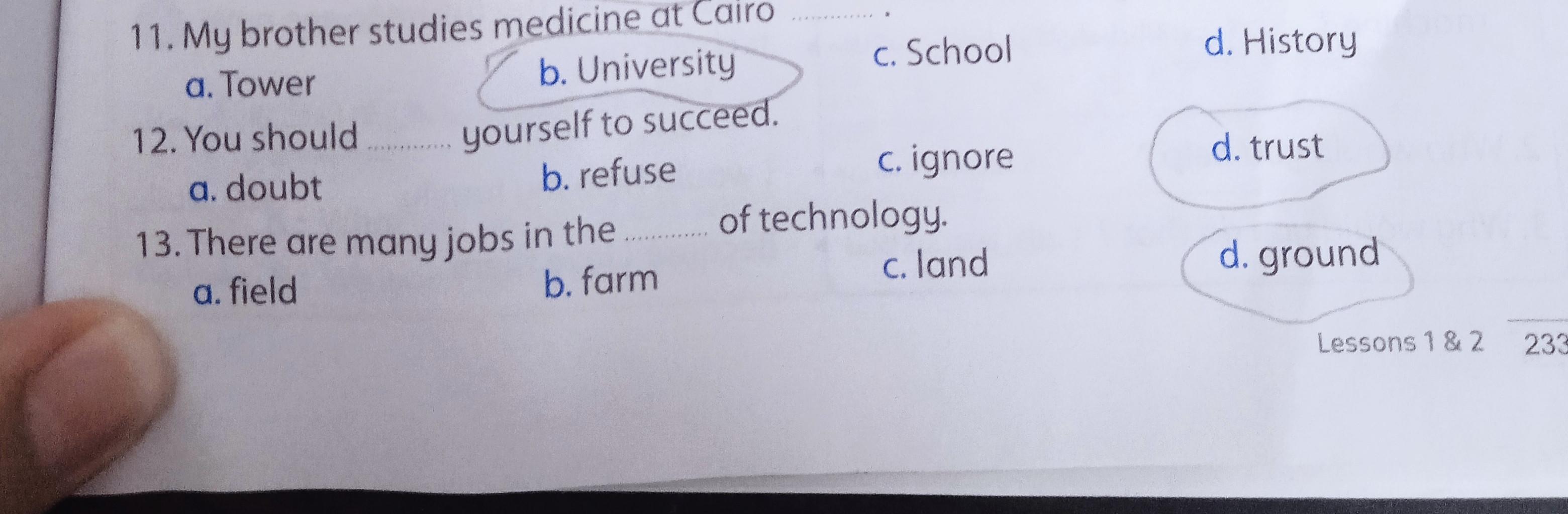 We have studied lesson 1 and 2 in unit one ,