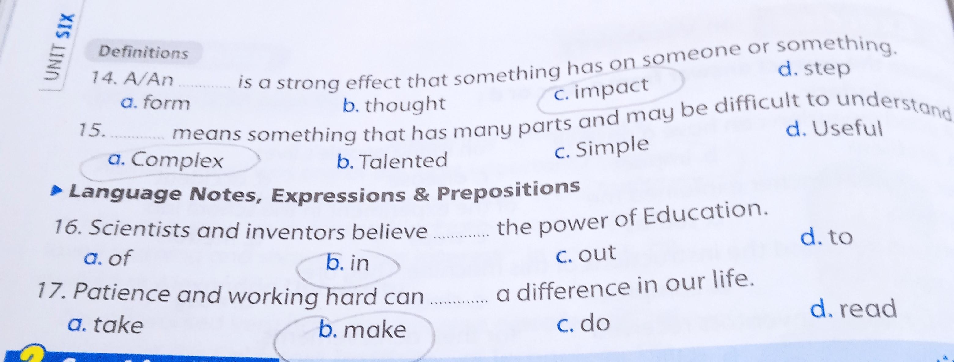 We have answered many questions in unit one and two