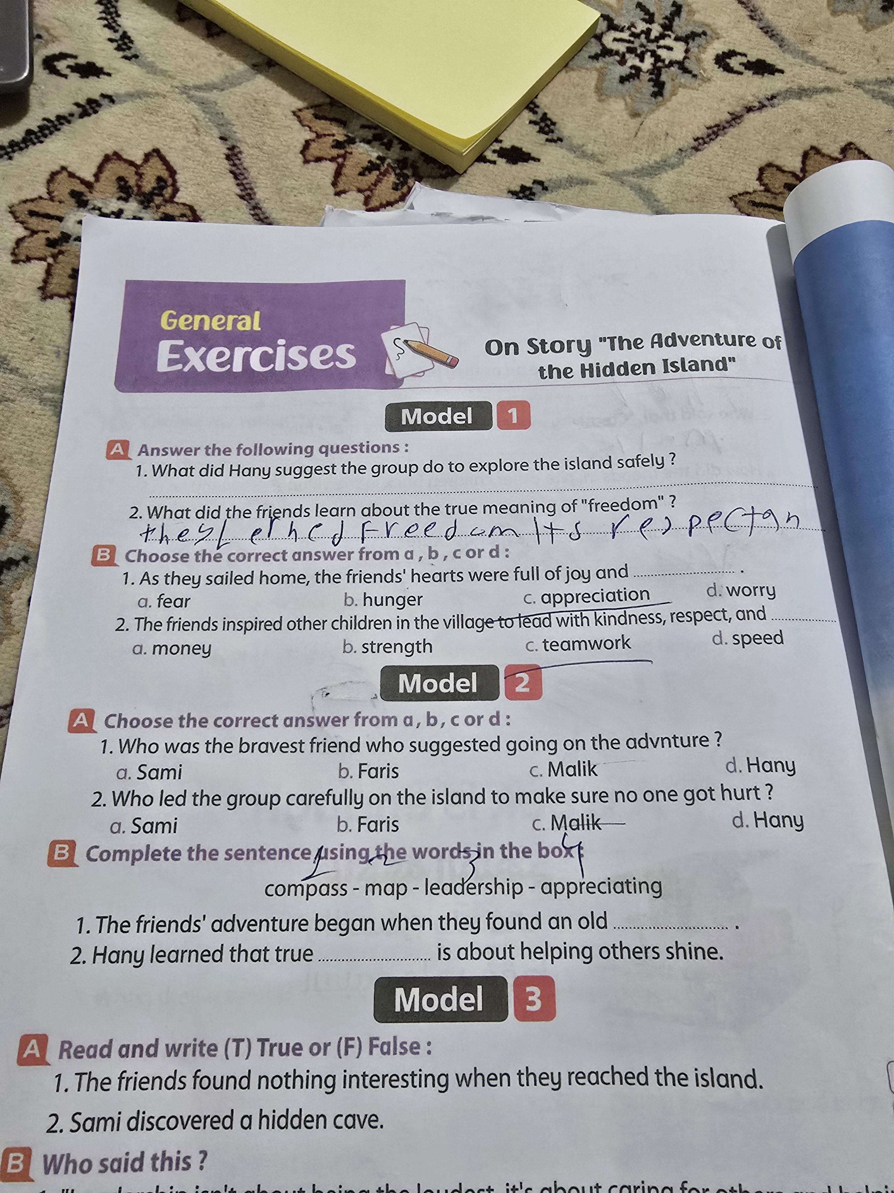 We finished reading chapter 3 of the story and discussing some of the critical thinking questions on it. Our homework for this session is on page 296 (the rest of the questions). And don’t forget to write down anything you want to ask about or might seem confusing to you to be discussed next time.