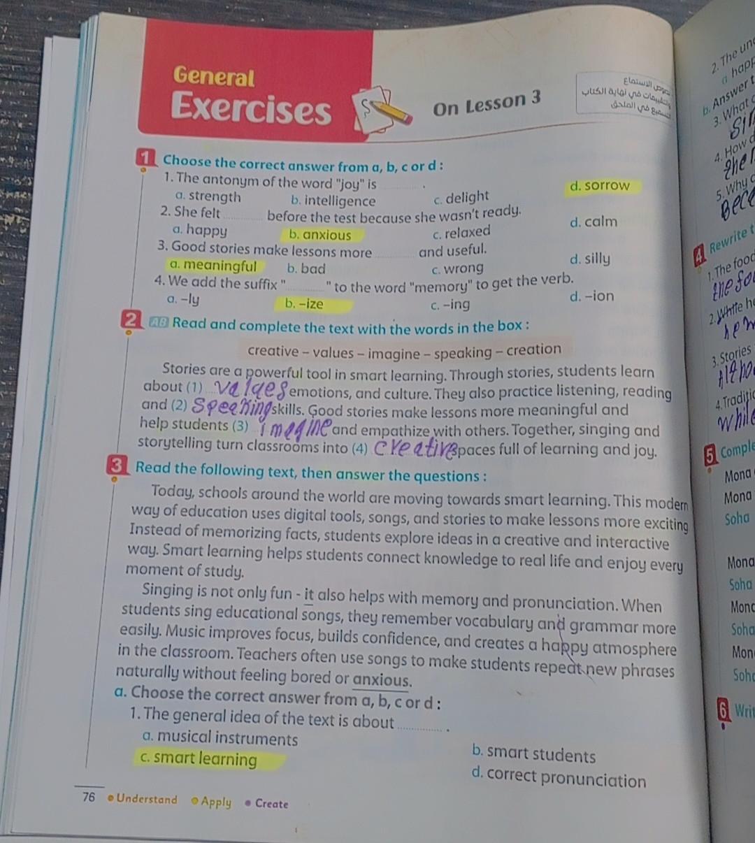 We’ve covered U.8 L.3 and answered pages 74 and 75. Now, your homework is super short and easy. It is the General exercises on lesson 3 on pages 76 and 77. You are doing great…Keep up the good work, and remember, practice makes perfect ✨✨🌼