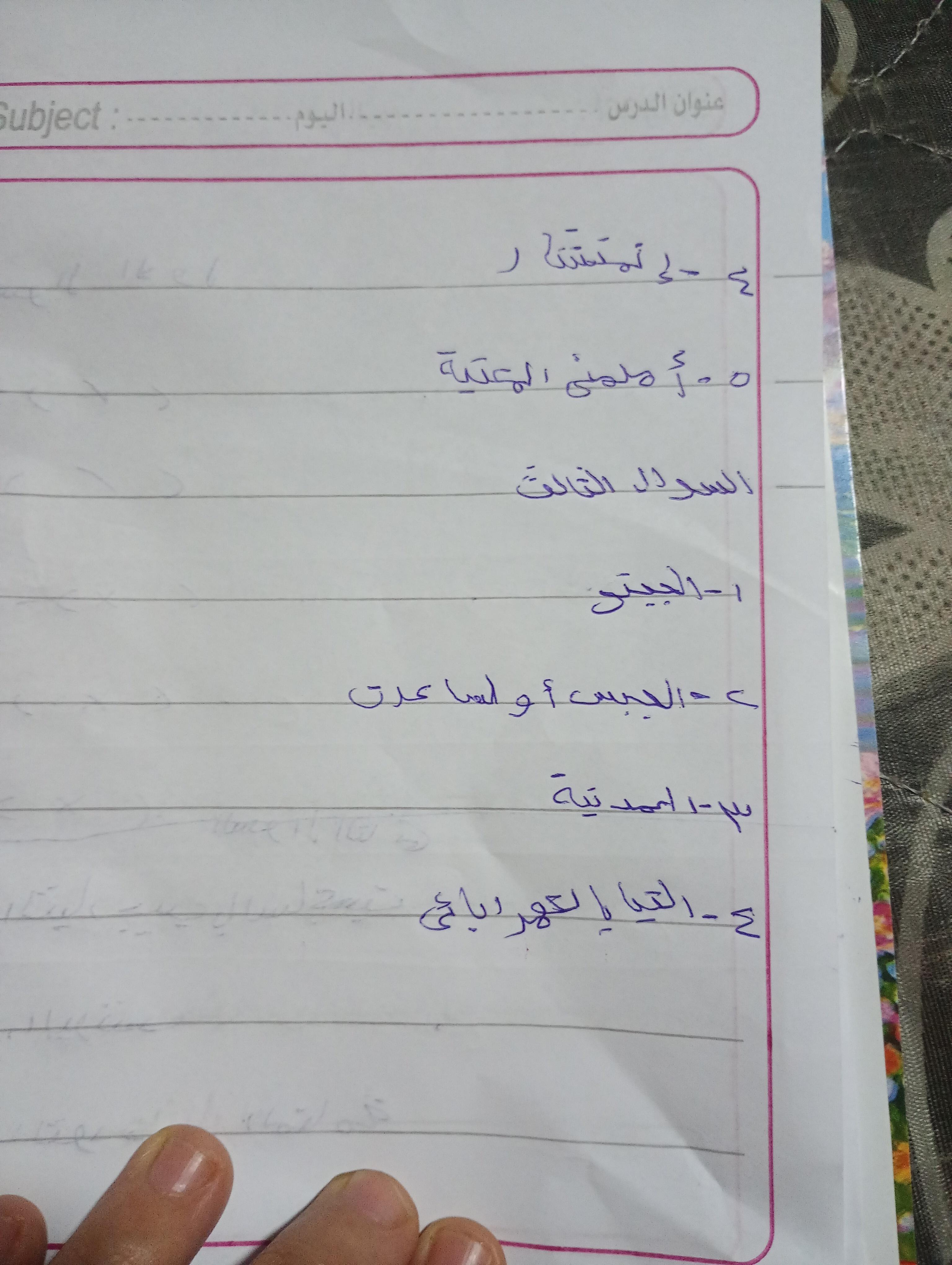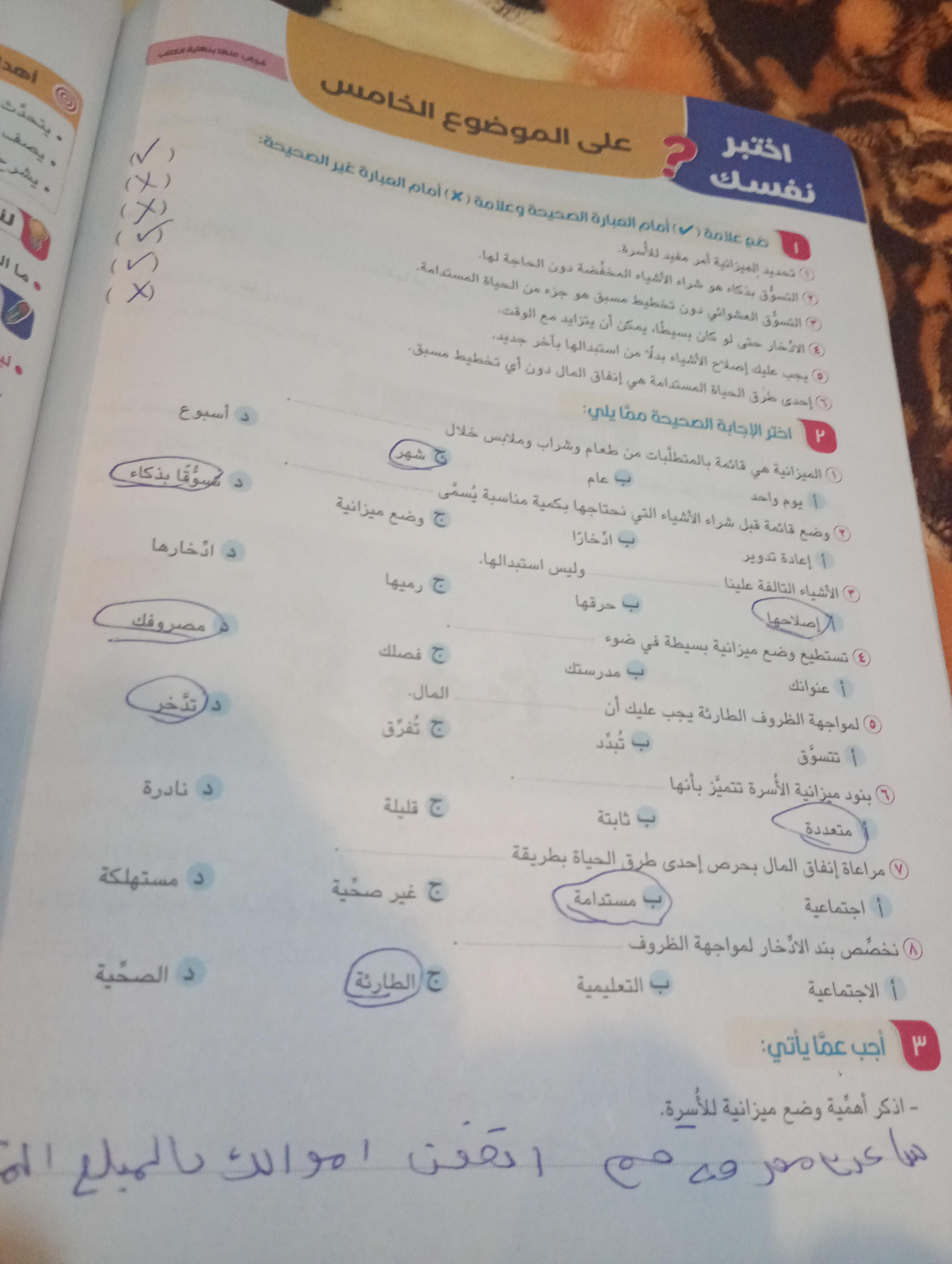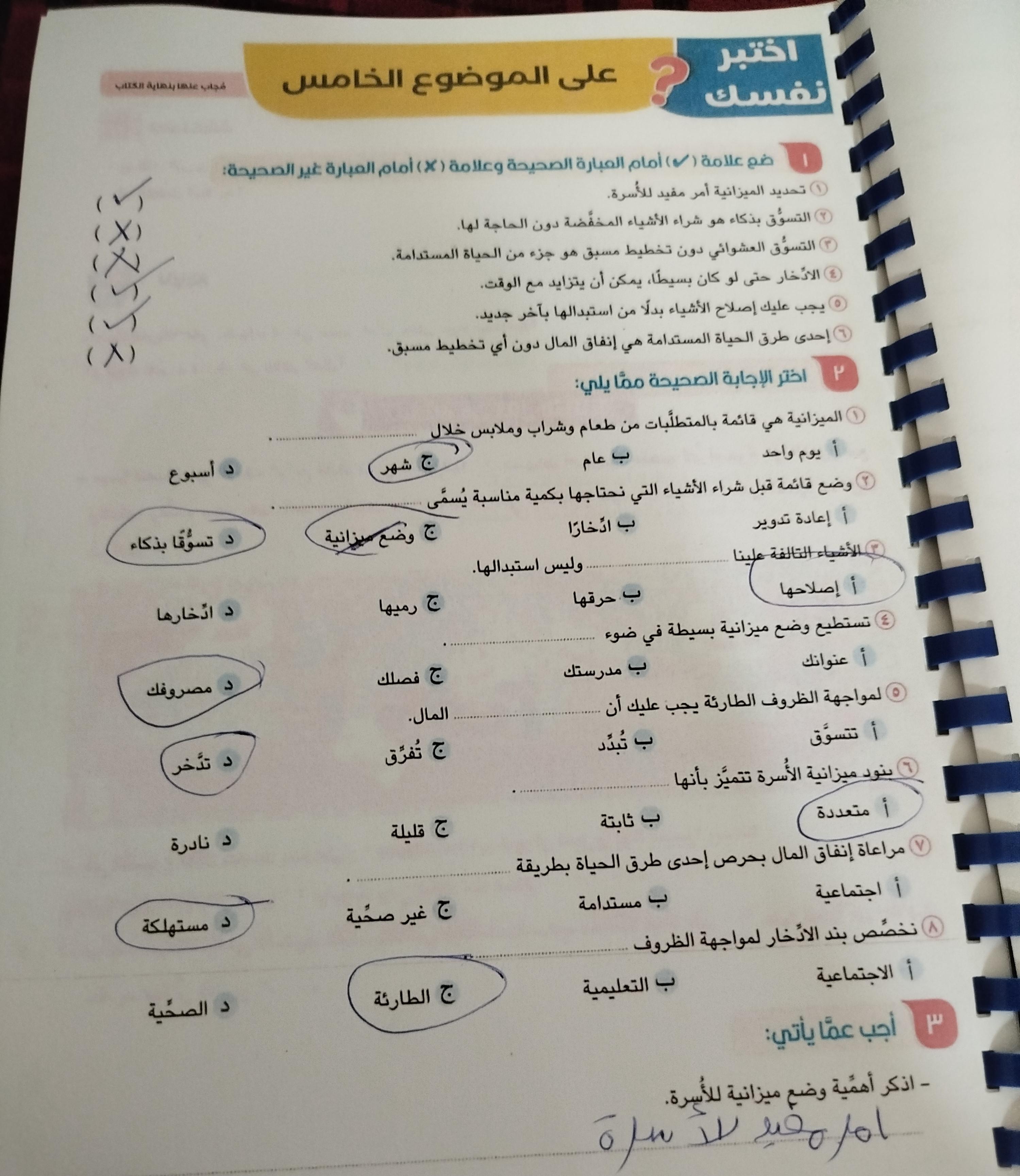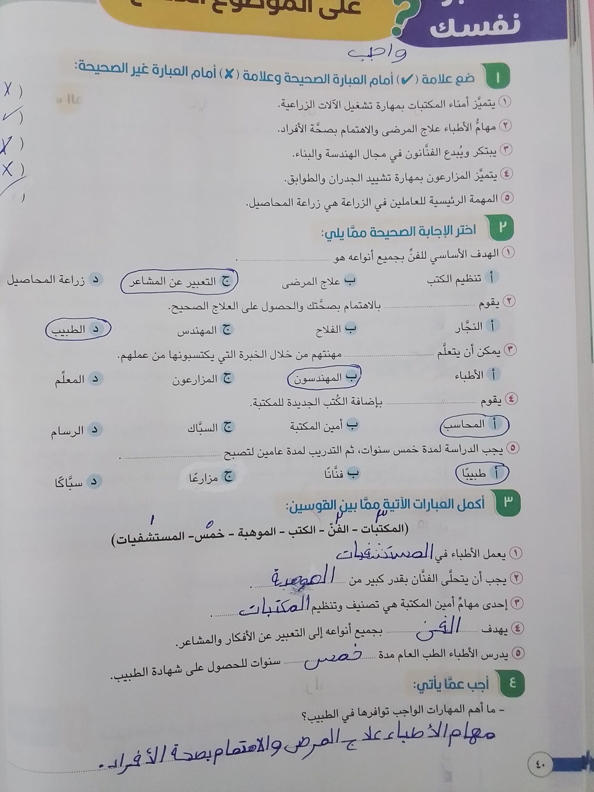 اخدنا اليوم الموضوع التاسع والواجب ص 40