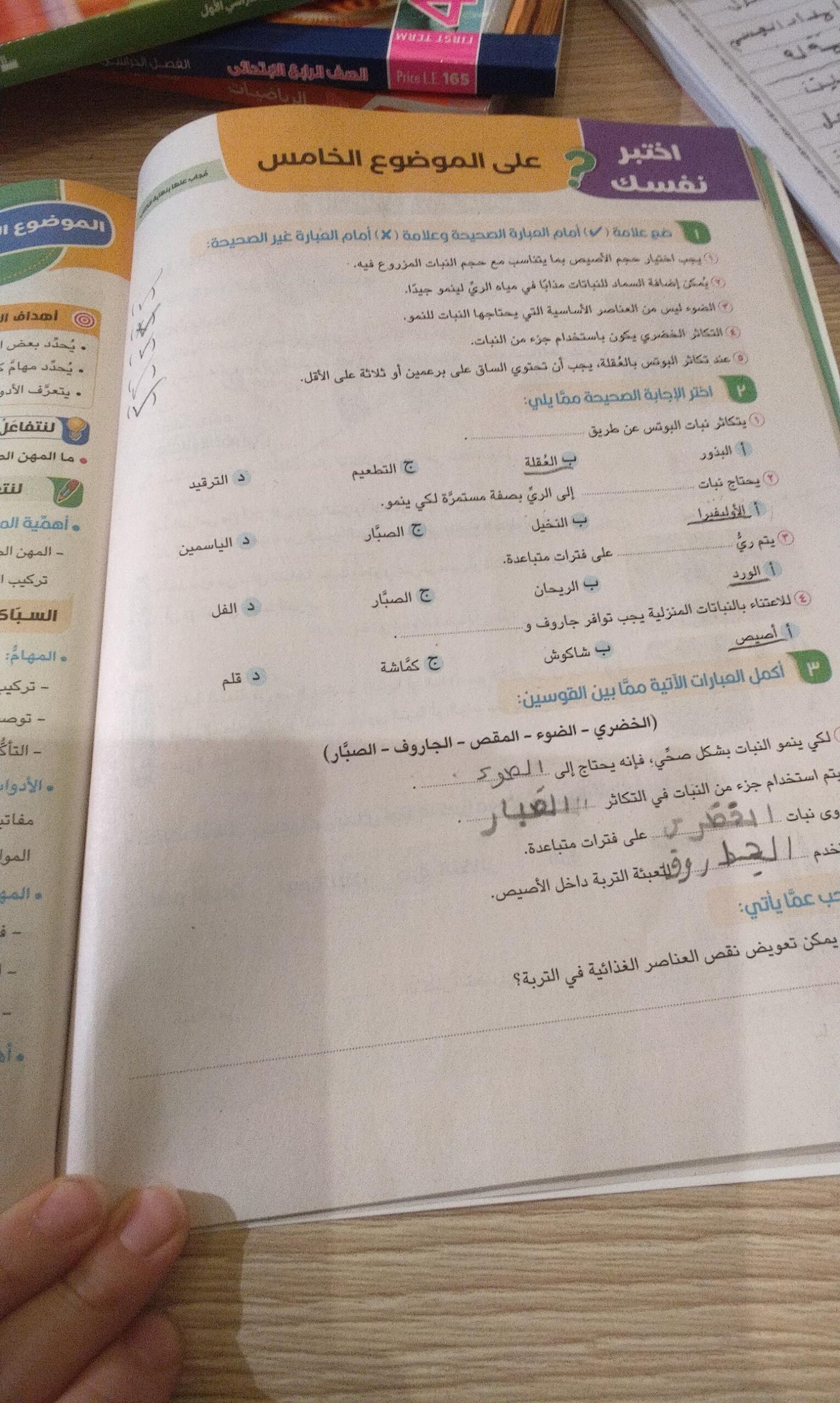 اخدنا الموضوع الرابع والخامي وحلينا تدريبات الرابع والواجب ص 24