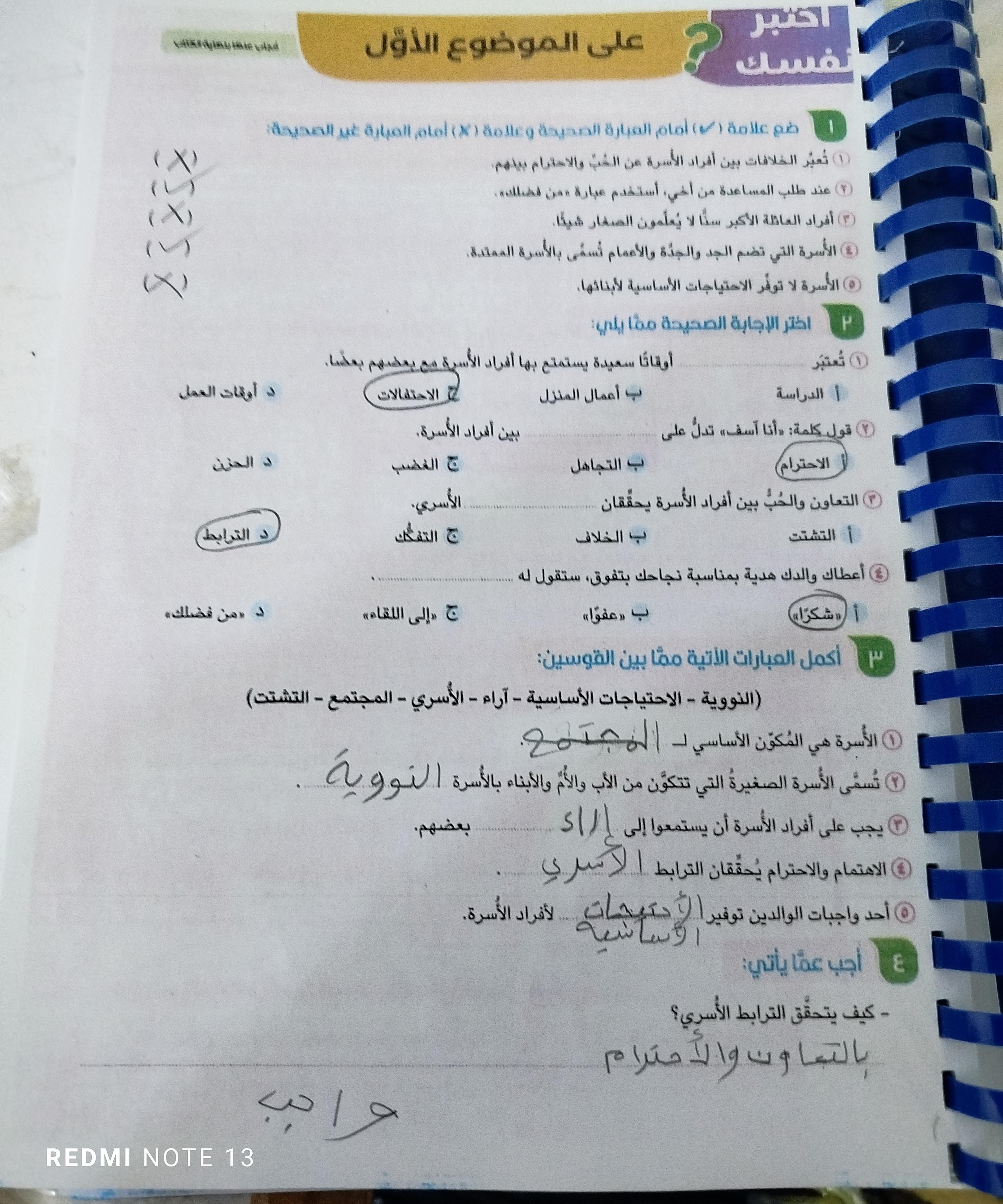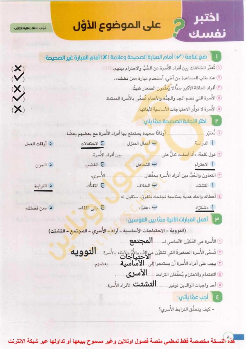 ادنا اليوم الموضوع الاول الترابط الاسري والواجب ص 8