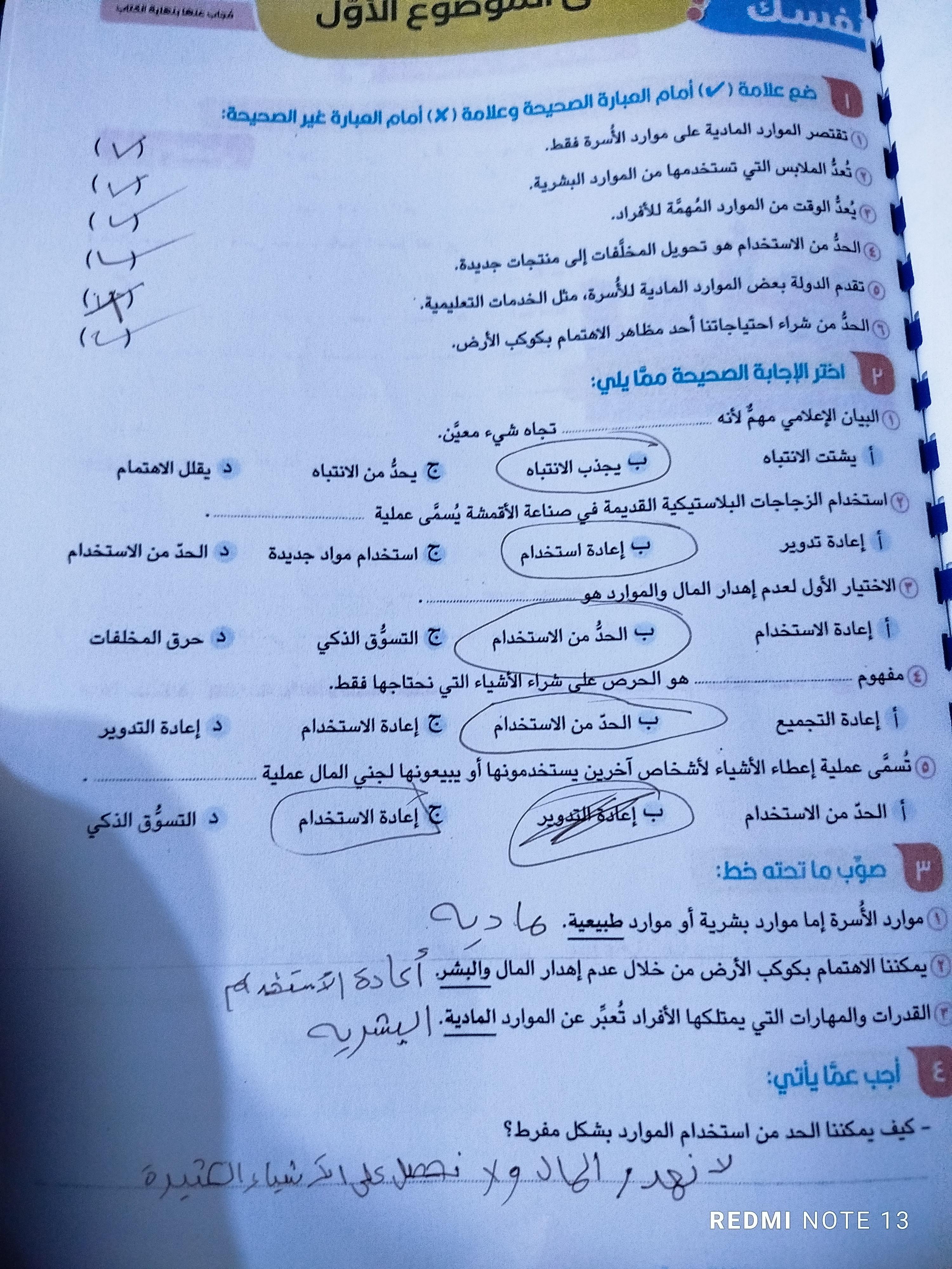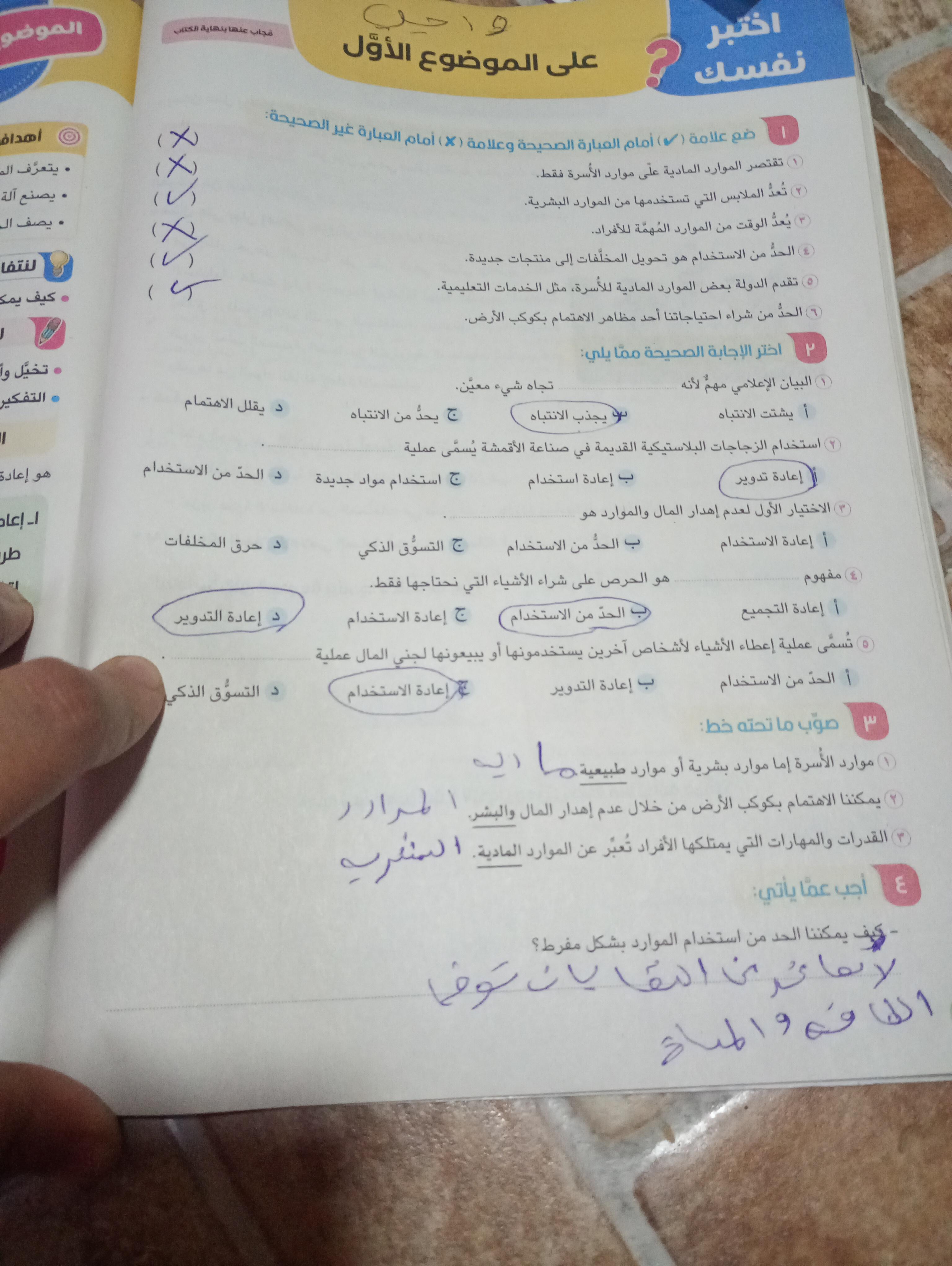 اخدنا الدرس الاول المحور التاني الموارد واعاده التدوير والواجب ص 62