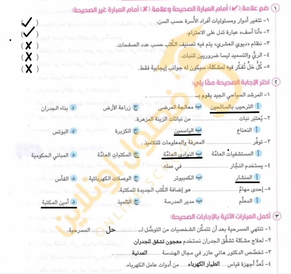اخذنا اليوم الموضوع التاني ادوار ومسئوليات والواجب ص 11واخدنا اختبار الدرس الاول