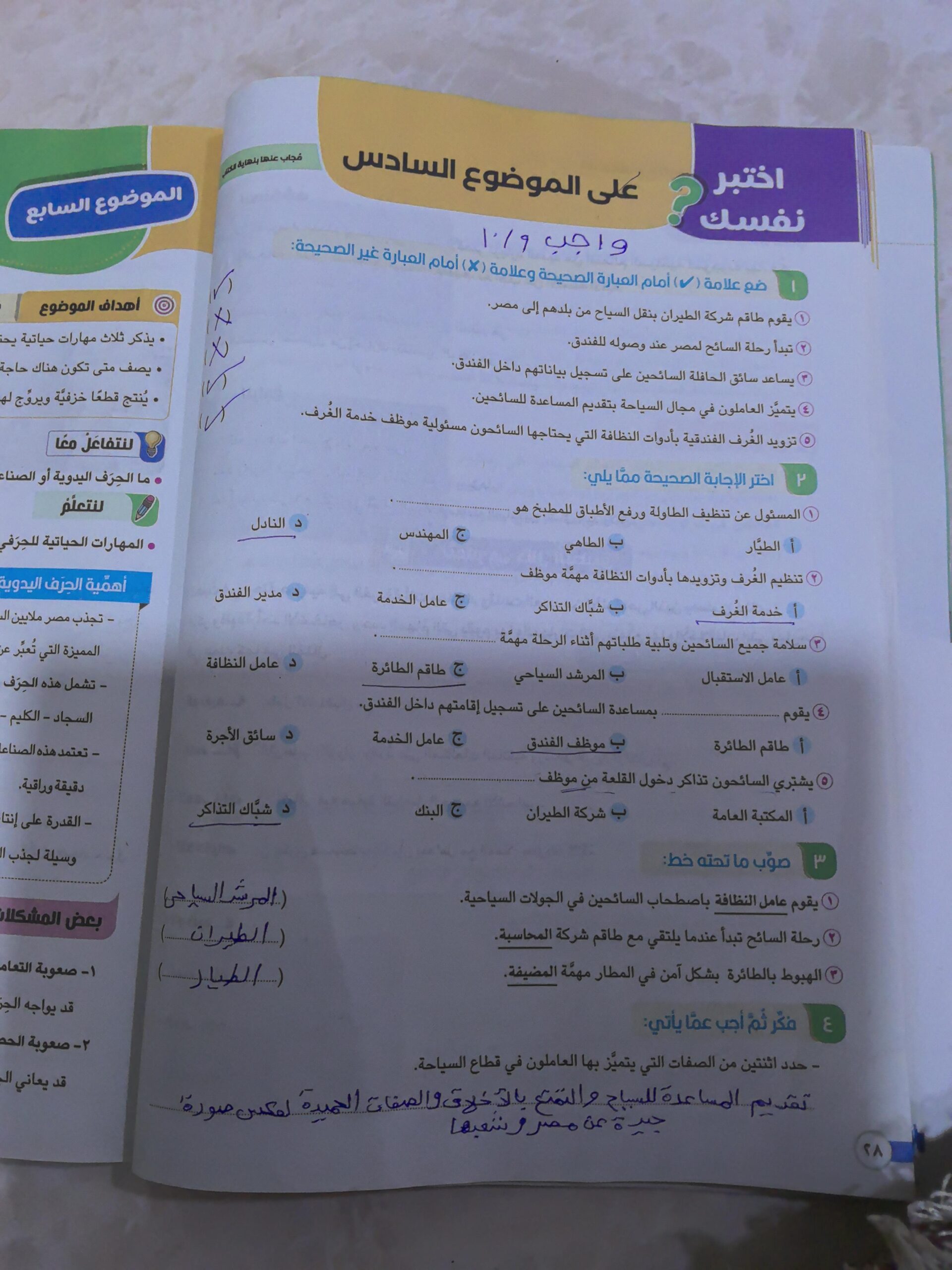 اخدنا الموضوع السادس والسابع وحلينا بالحصه الموضوع السابع والواجب ص 28 عن تدلايبات الموضوع السابع