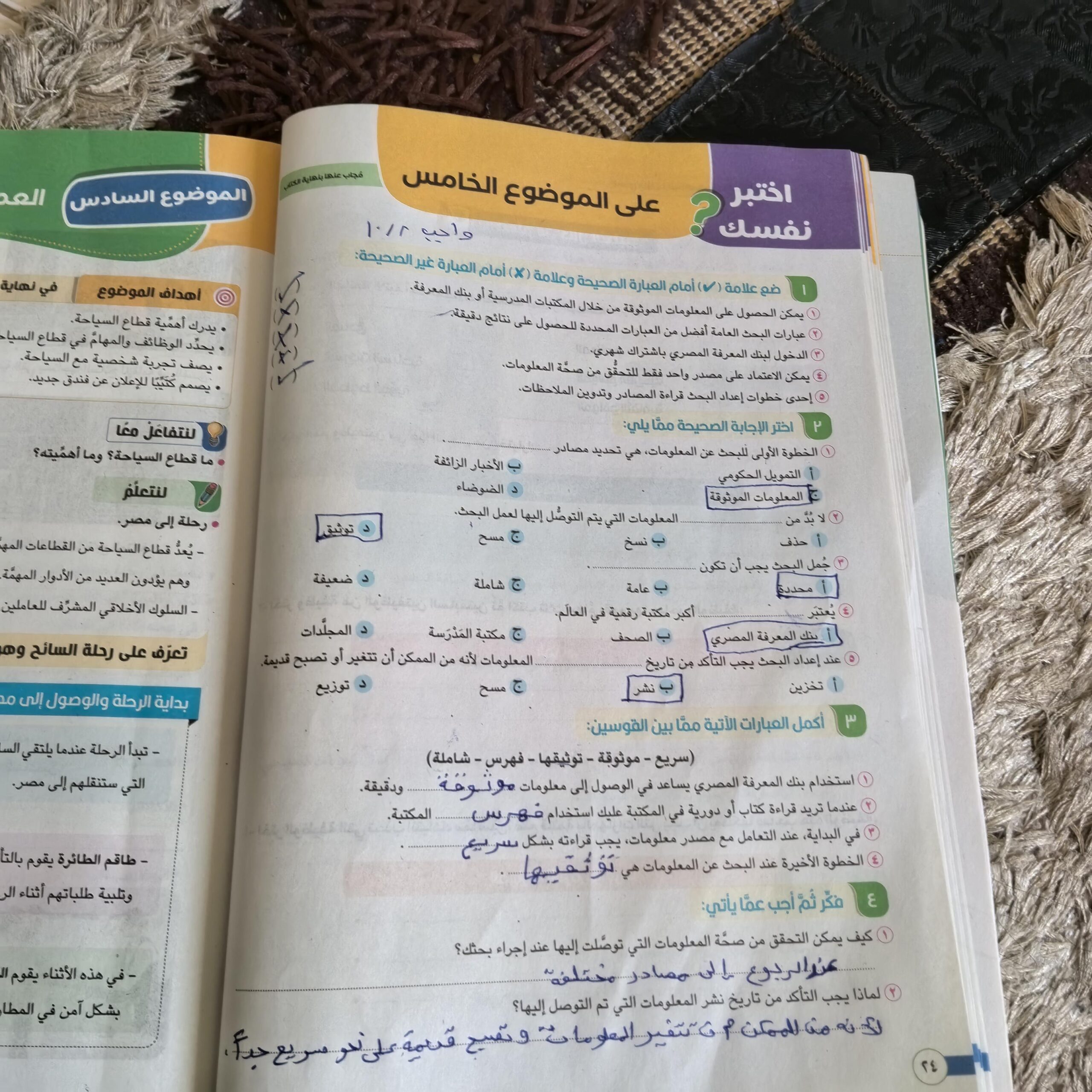 اخدنا الموضوع التالت والرابع والخامس والواجب ص 16 و20 و24