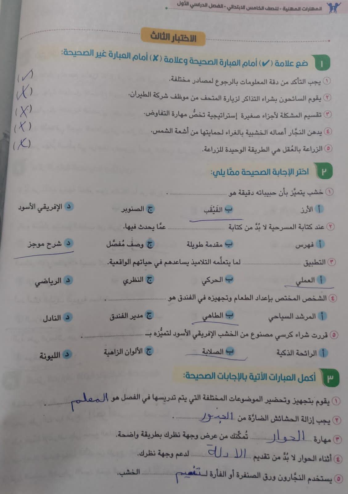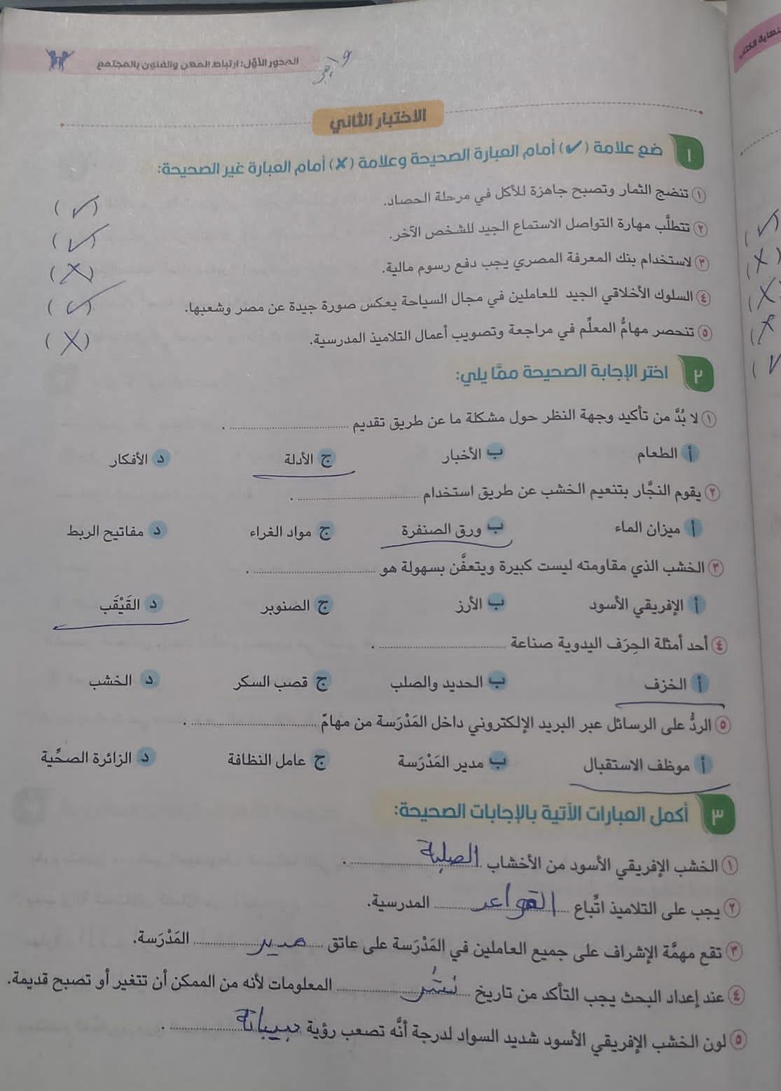 اخدنا اليوم الموضوع التامن اعمال النجاره وكنا احلا اسطوات في النجاره وشاطرين مين عاوز يشتغل معانا وحلينا التدريبات عنه ص