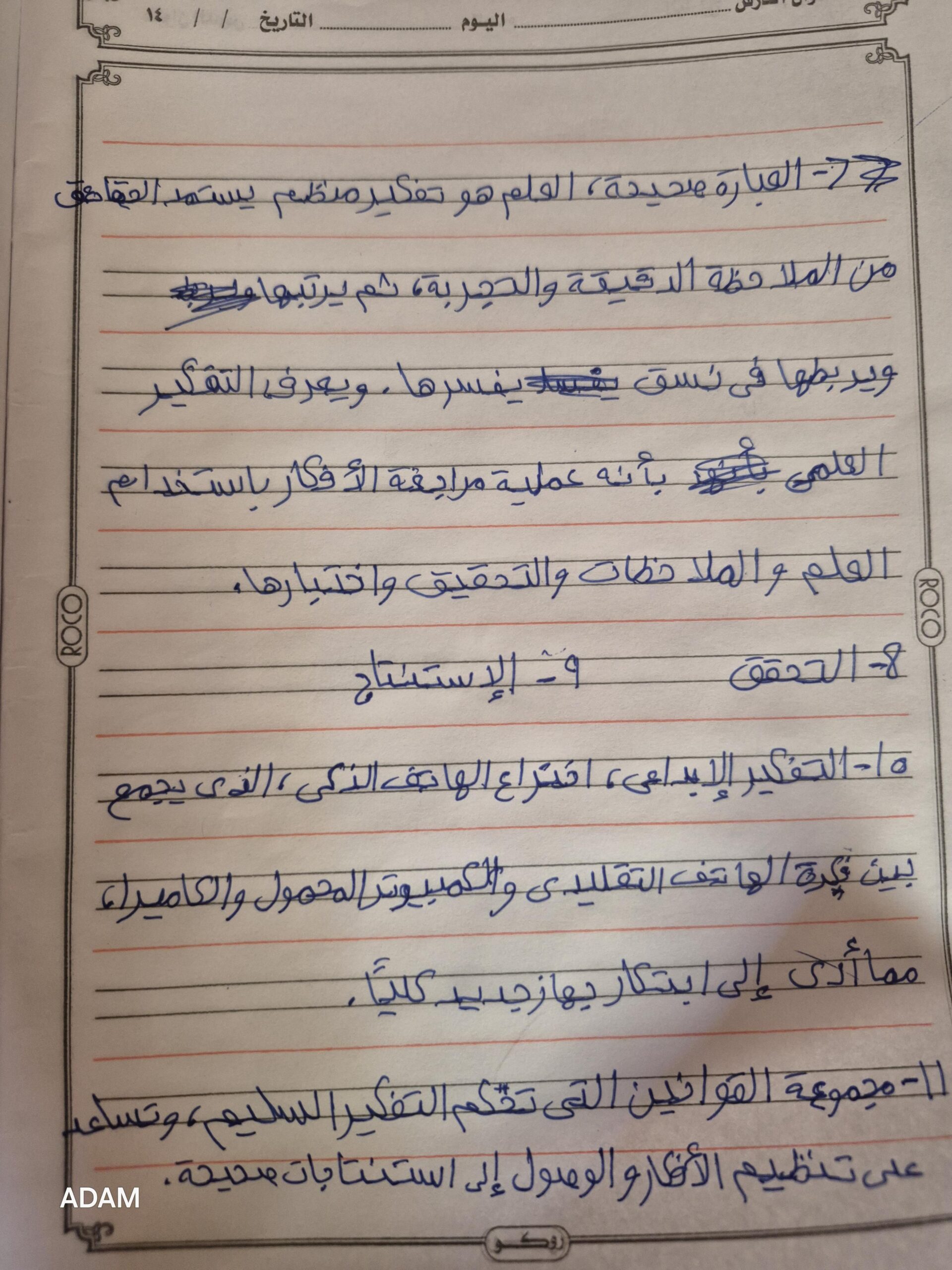 تم شرح الدرس الاول منطق العلم منهج التفكير