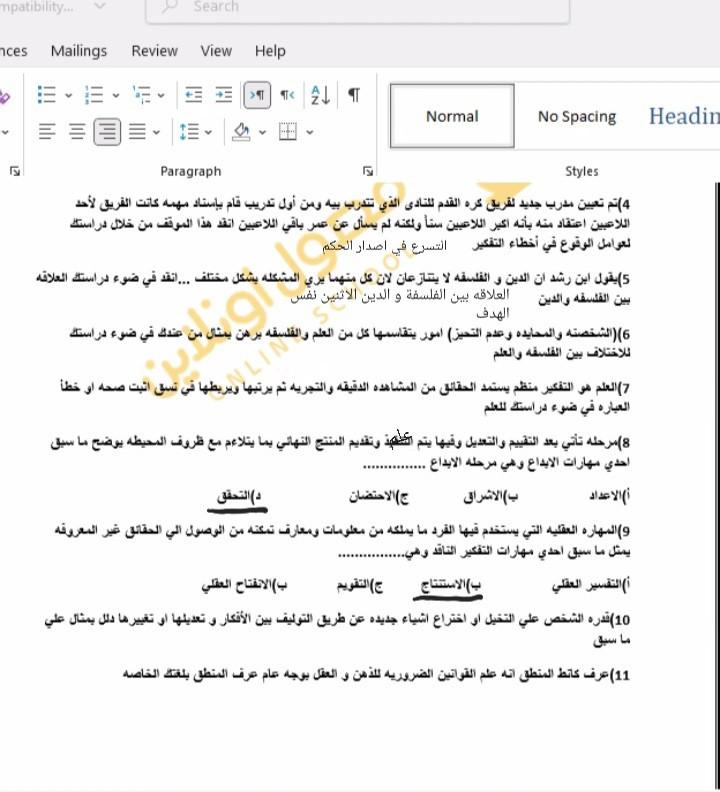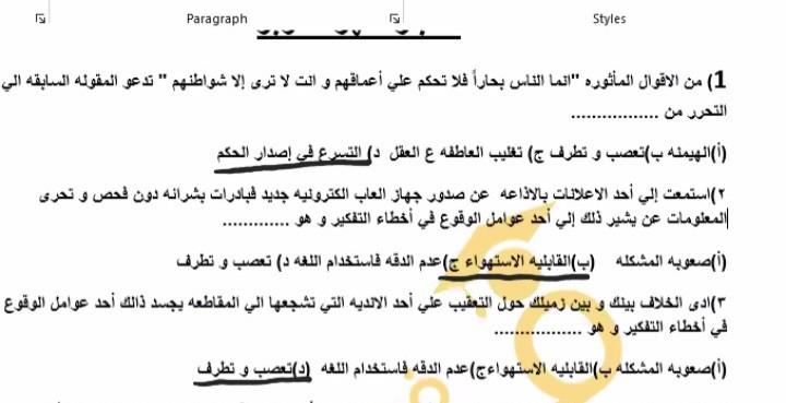 تم حل تدريبات على عوامل الوقوع في أخطاء التفكير و ياريت نستعد للاختبار كويس جدا هيكون 15 سؤال منهم 5 اختيارات و 10 مقالي