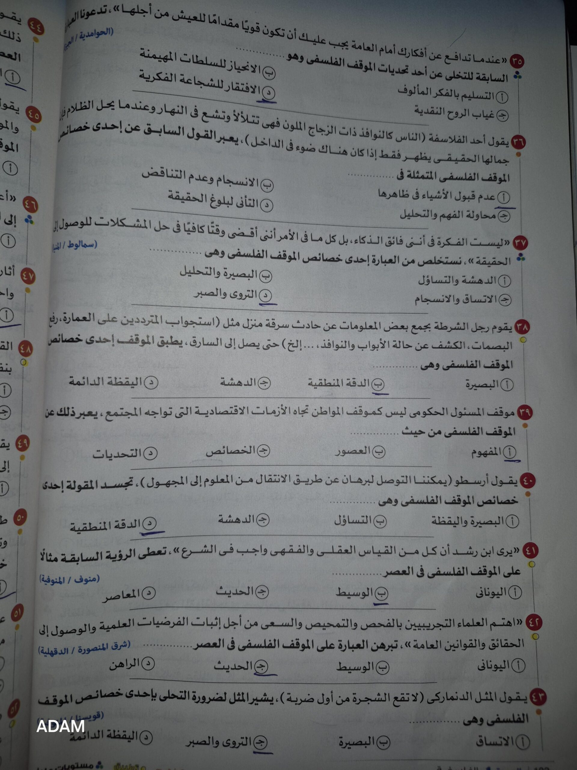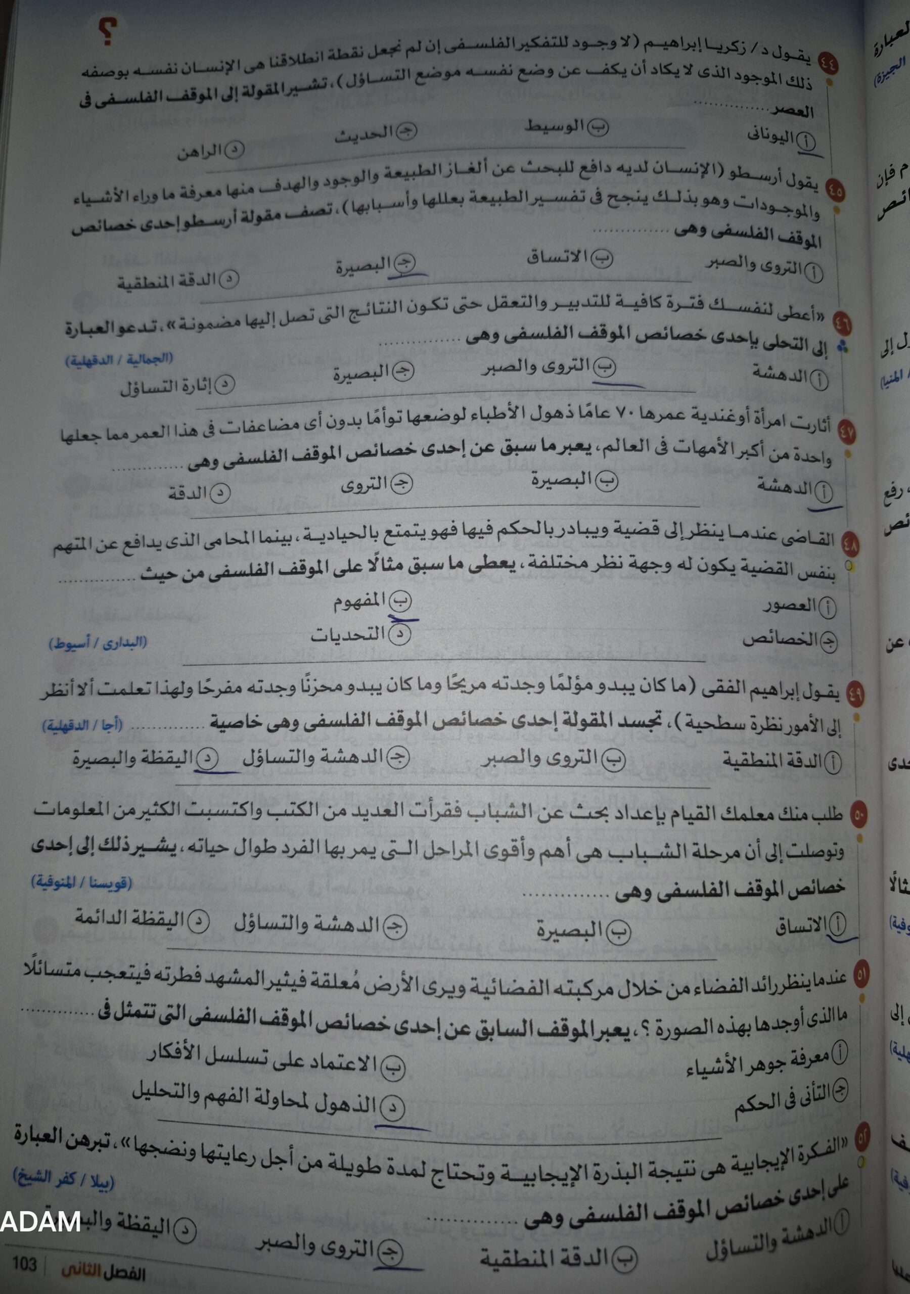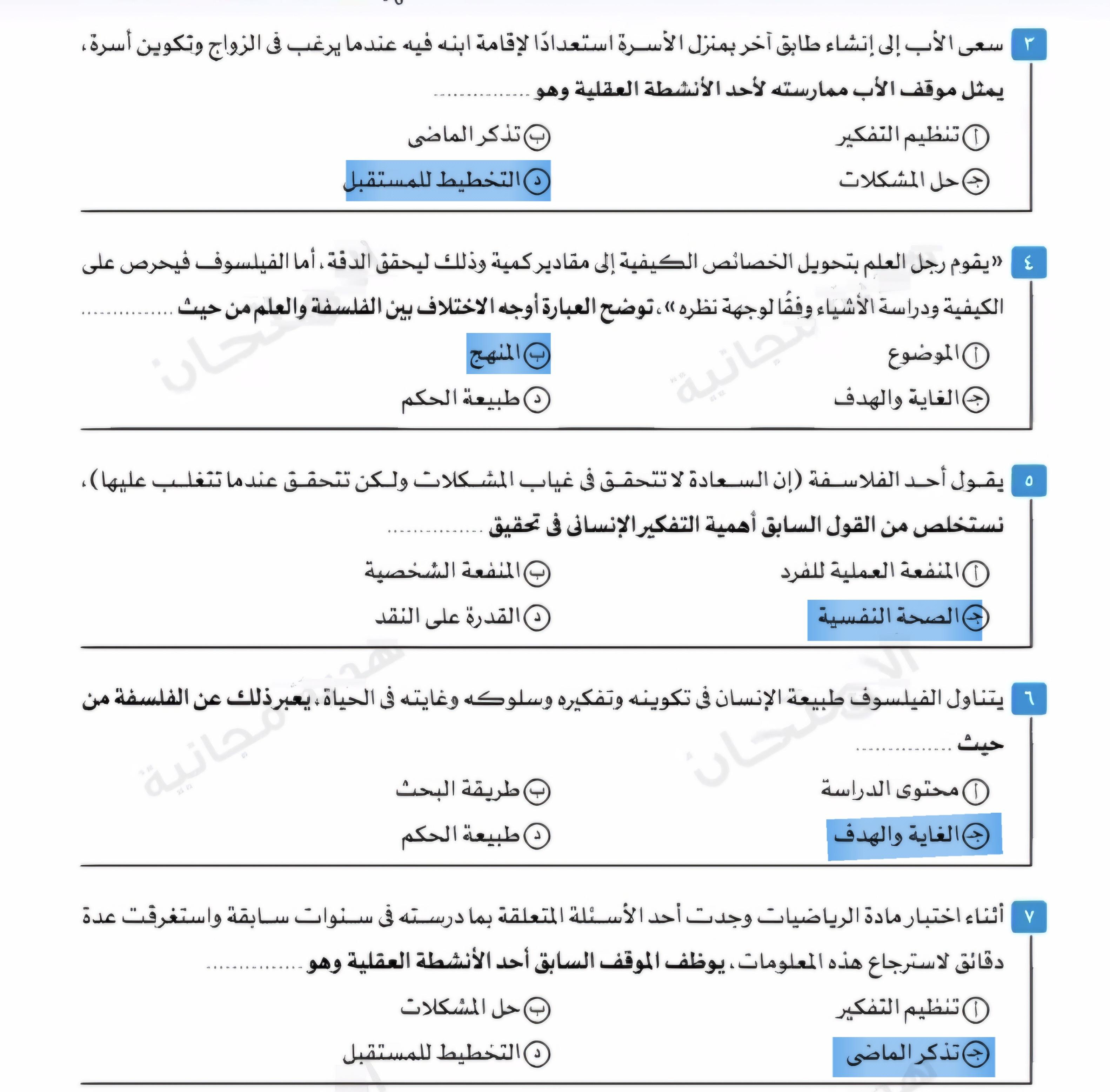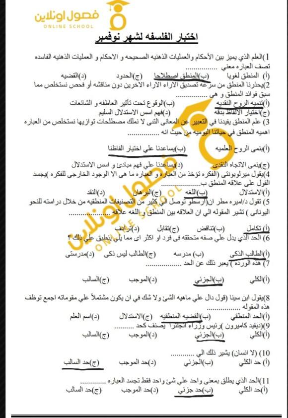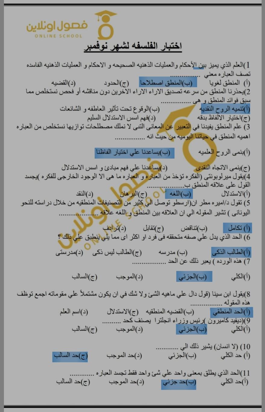 تم حل اسئله الفصل الاول فلسفه لتأكيد المعلومات و المراجعه