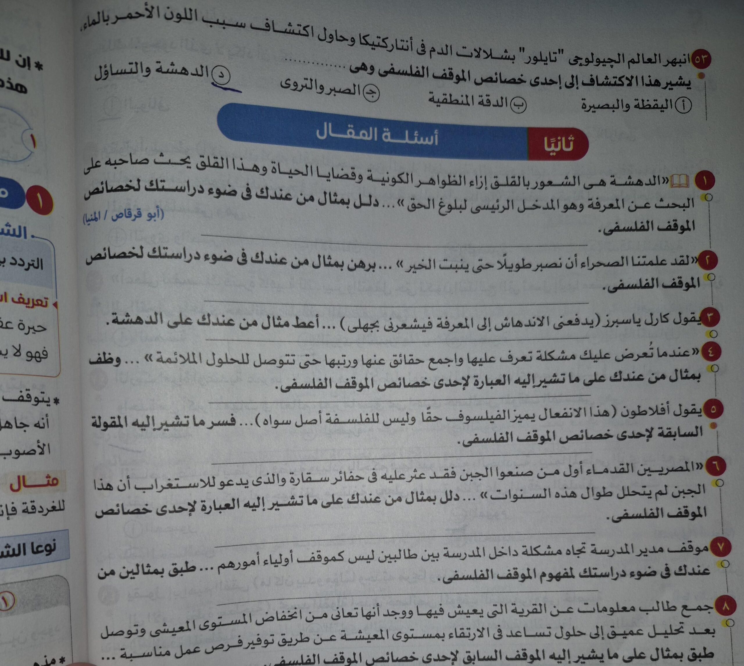 تم شرح الوحده الثانيه فلسفه