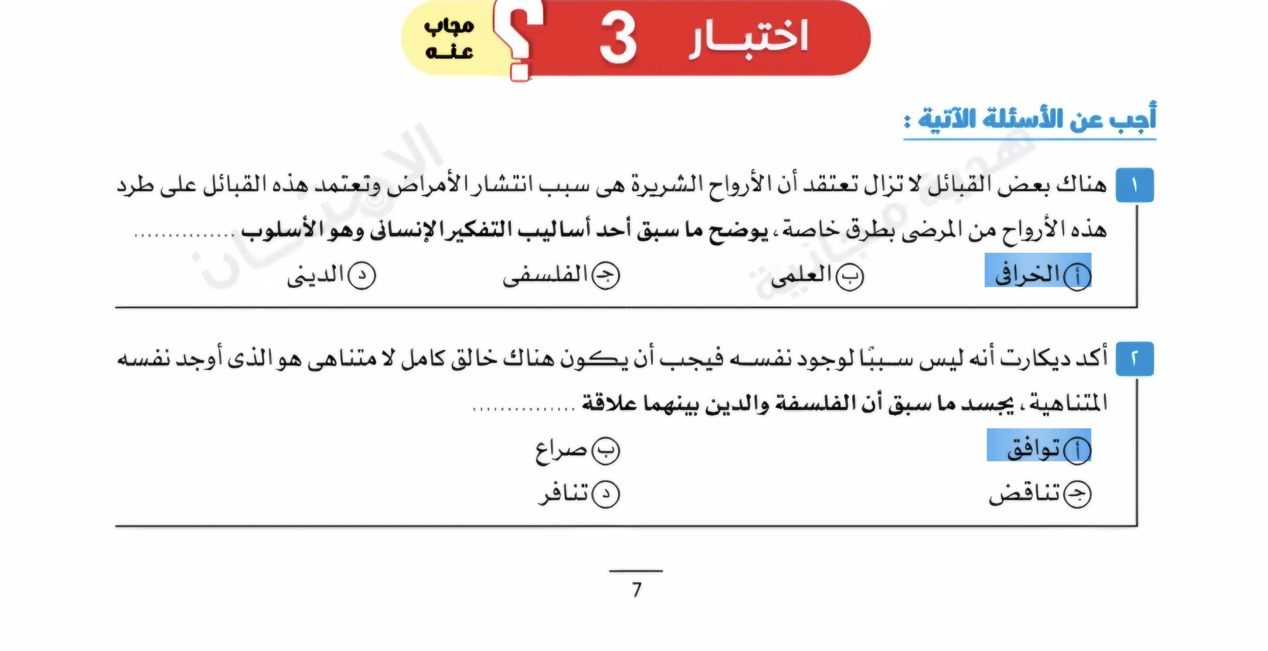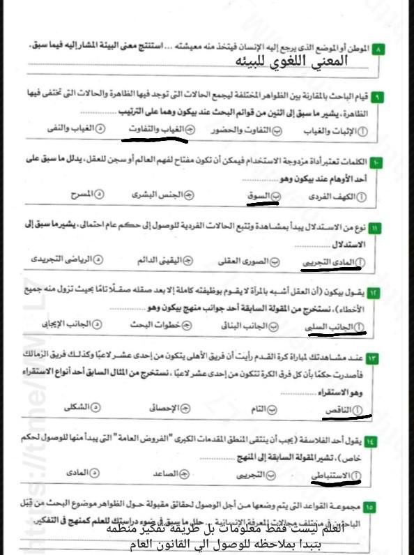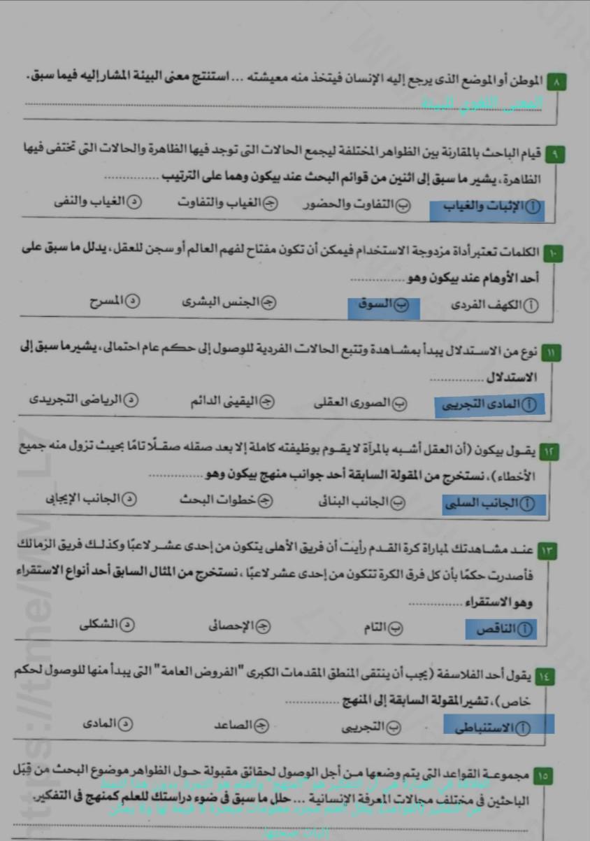 تم حل تدريبات علي العلم و الفلسفه و الدين