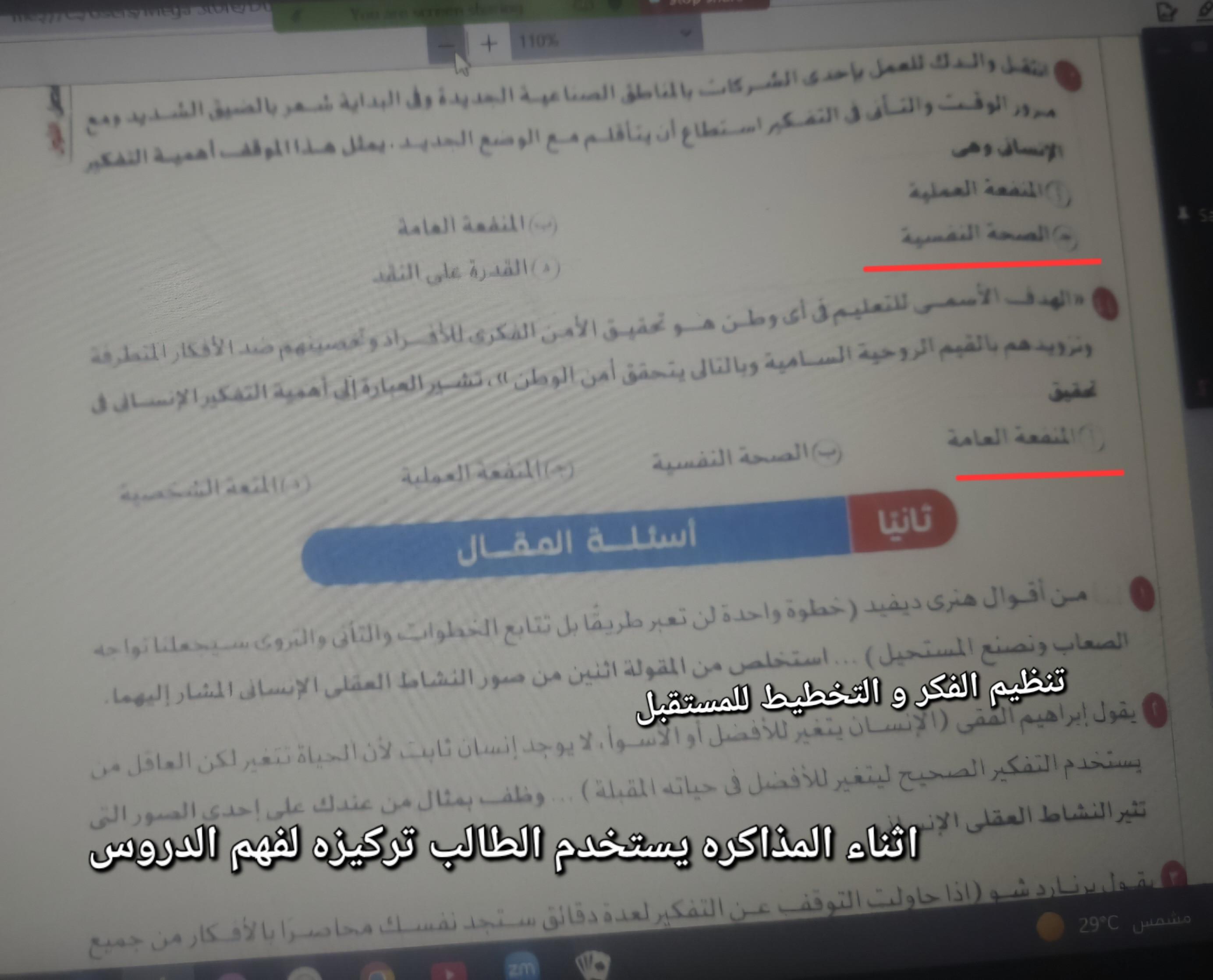 تم شرح اهميه التفكير الاربعه و الواجب اهميه التفكير في حياتنا اليوميه و ده عباره عن بحث مش من كتاب الشرح محتاجه صفحه واحده من كل واحد