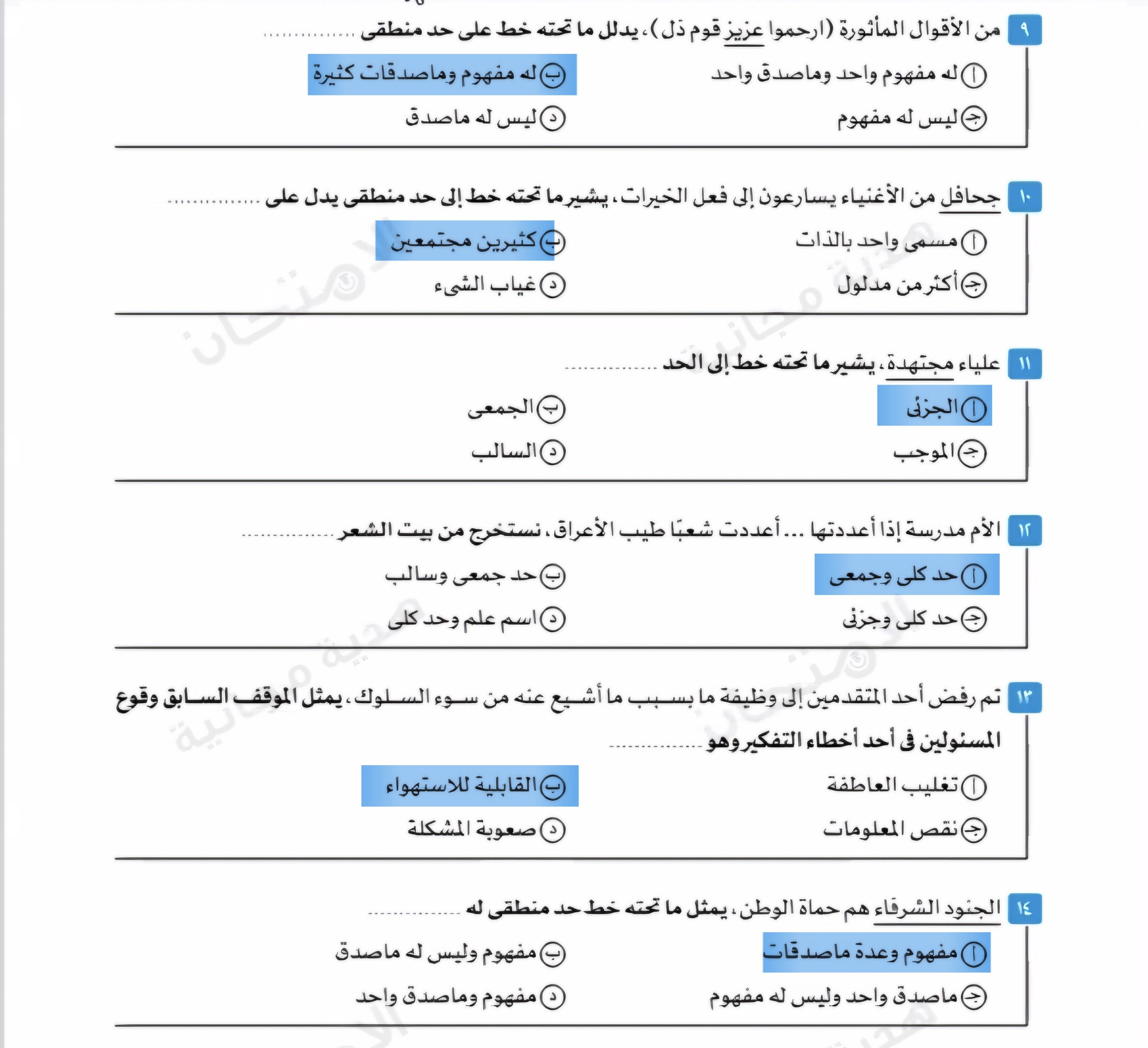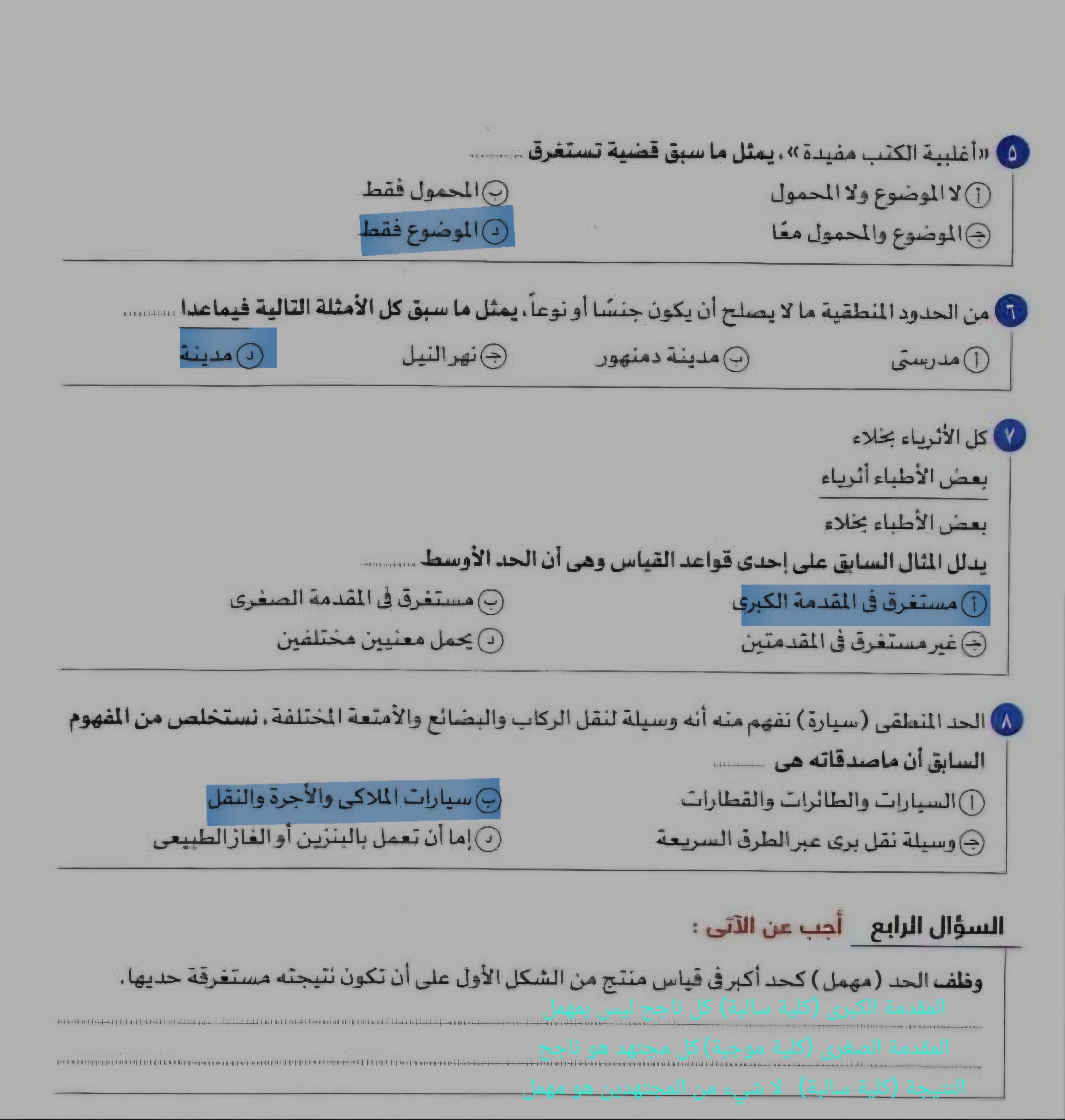 تم حل اسئله المفهوم والماصدق و التناقض و التضاد