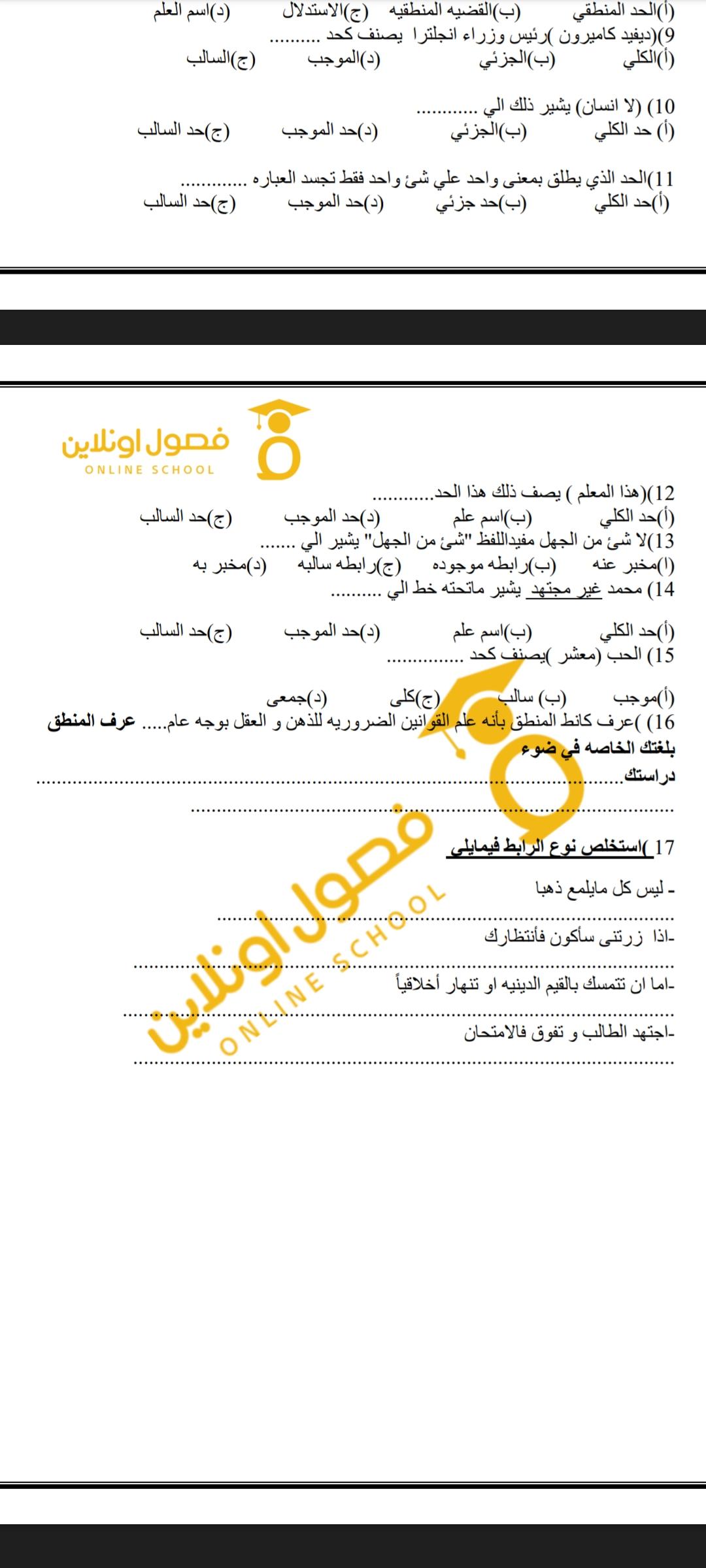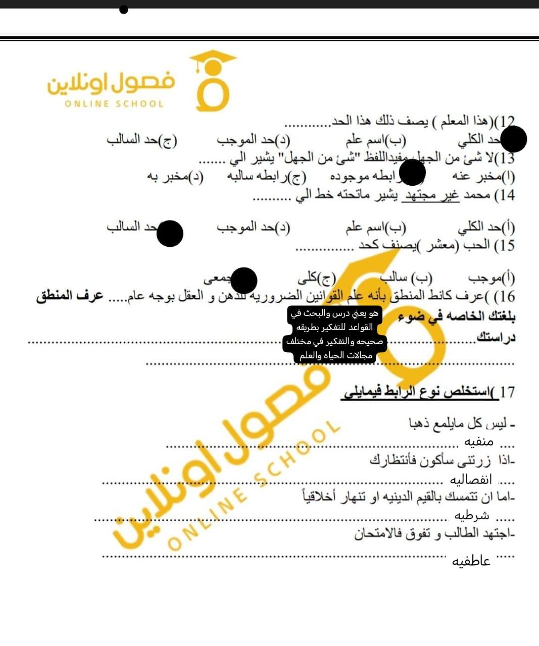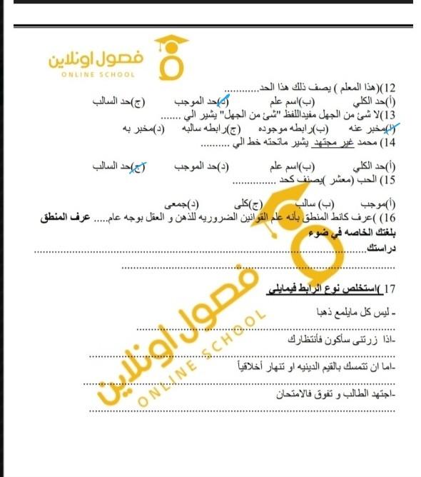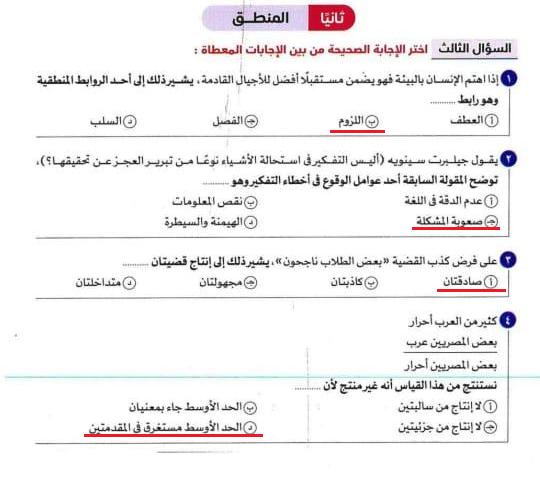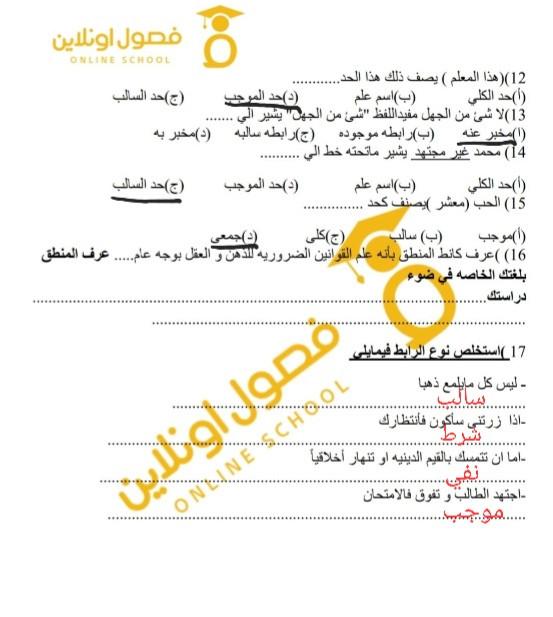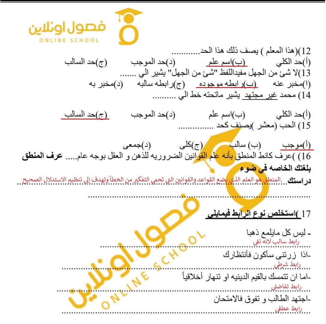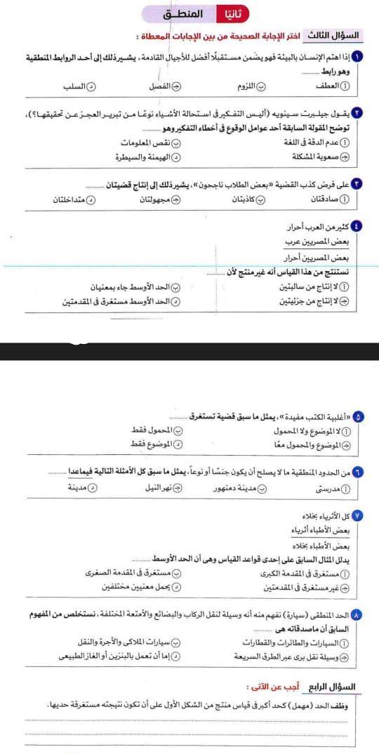 تم شرح الوحده الثانيه منطق و حل نموذجين من الاختبارات