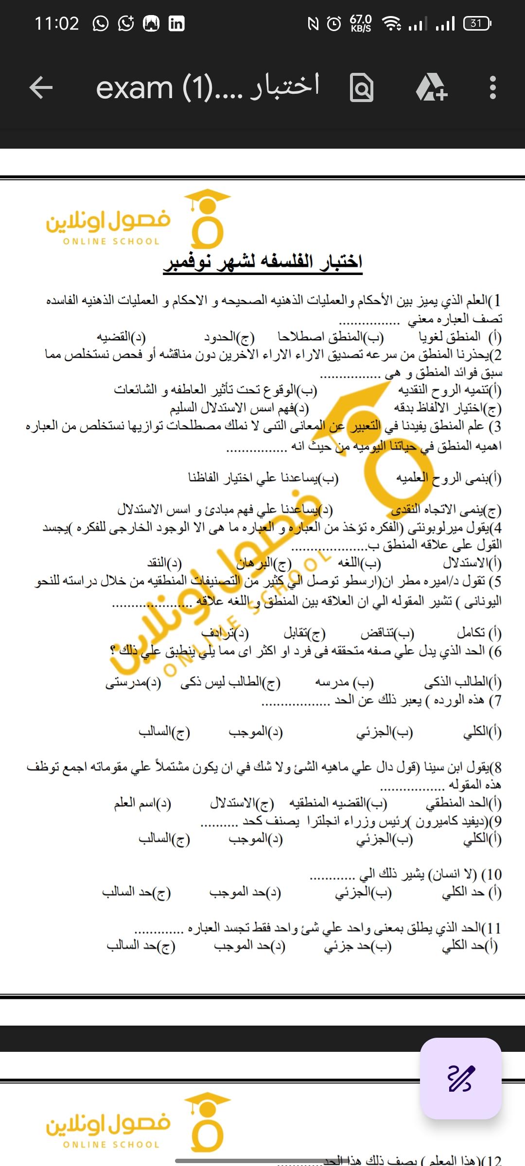 تم شرح الفلسفه و العلم و لا يوجد واجب