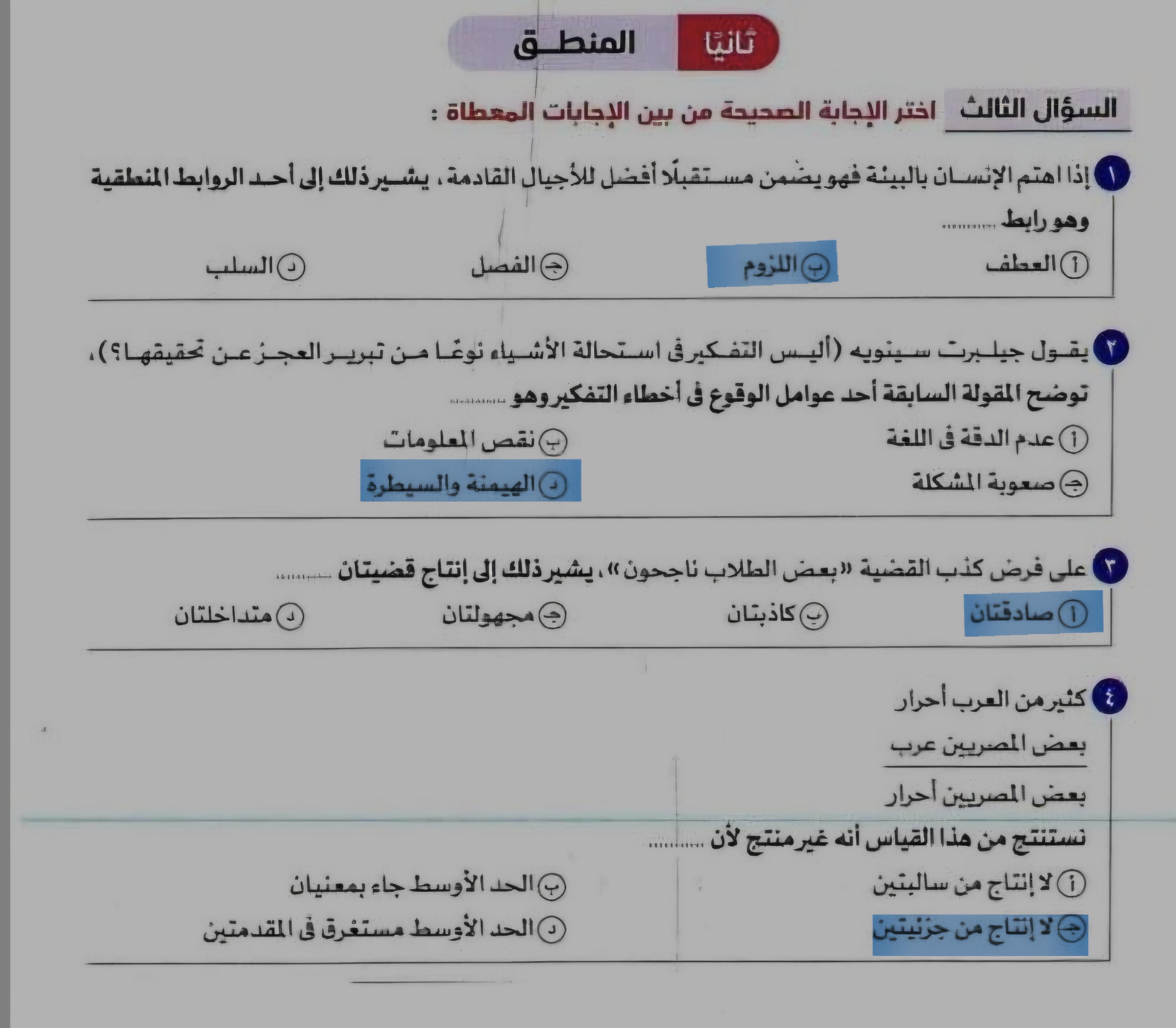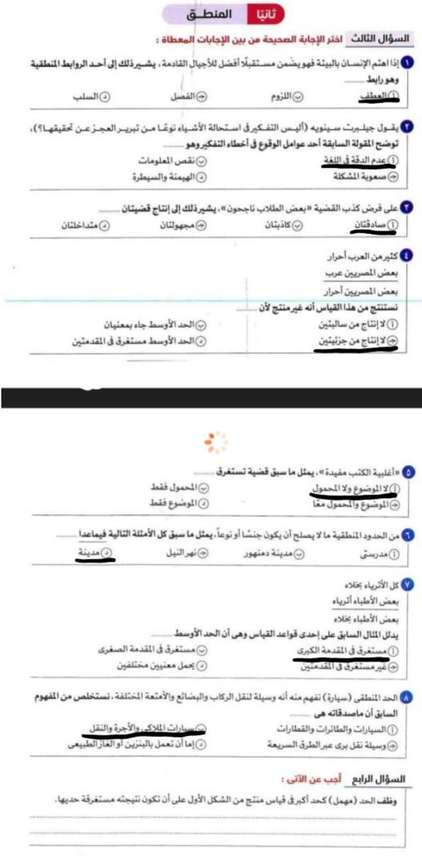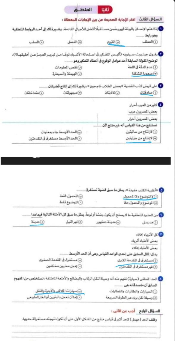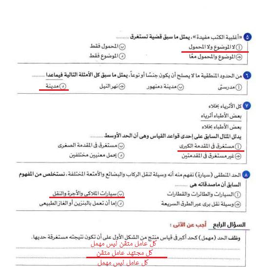 تم شرح درس الاول منطق وحل صفحه تدريبات