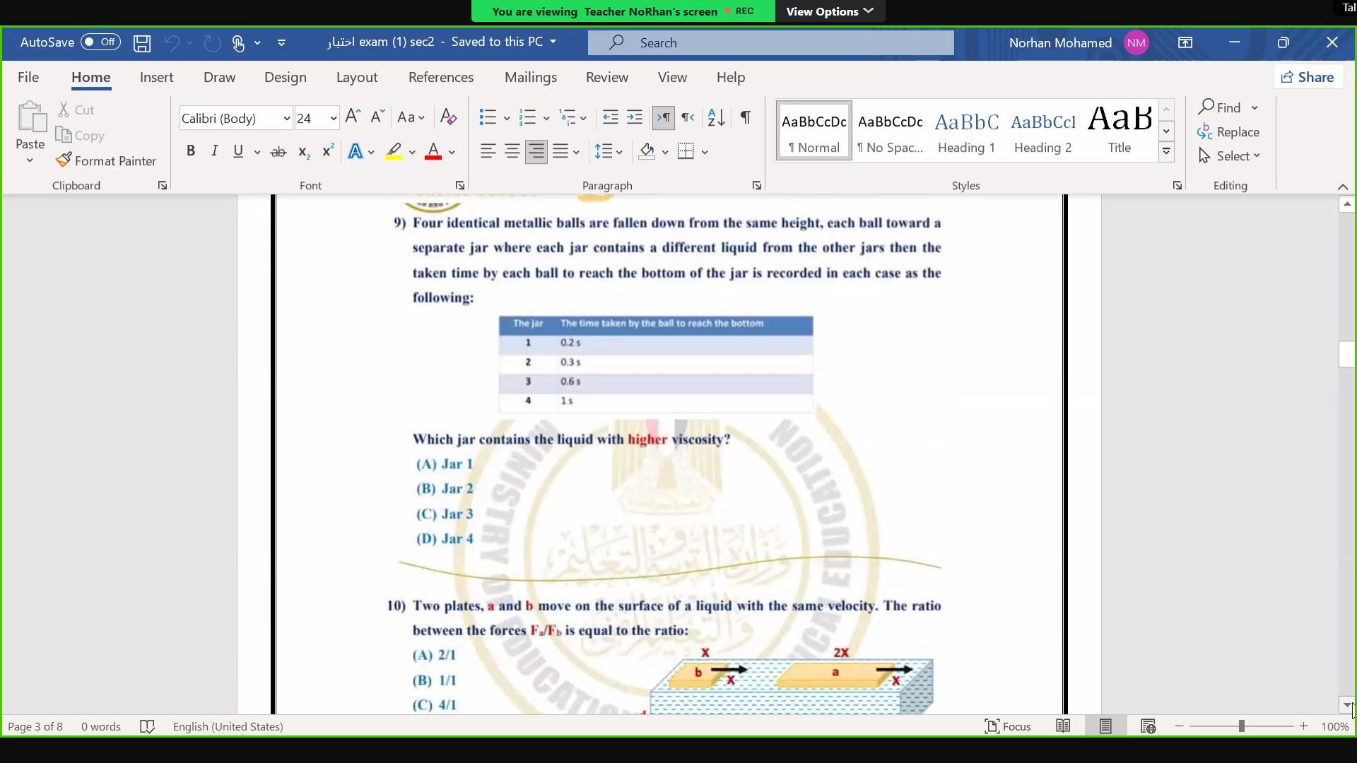 الواجب حل الجزء المشروح