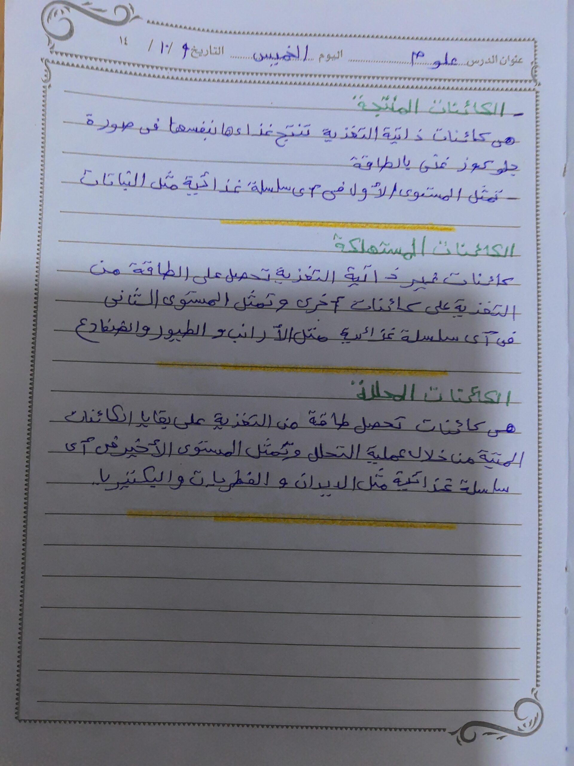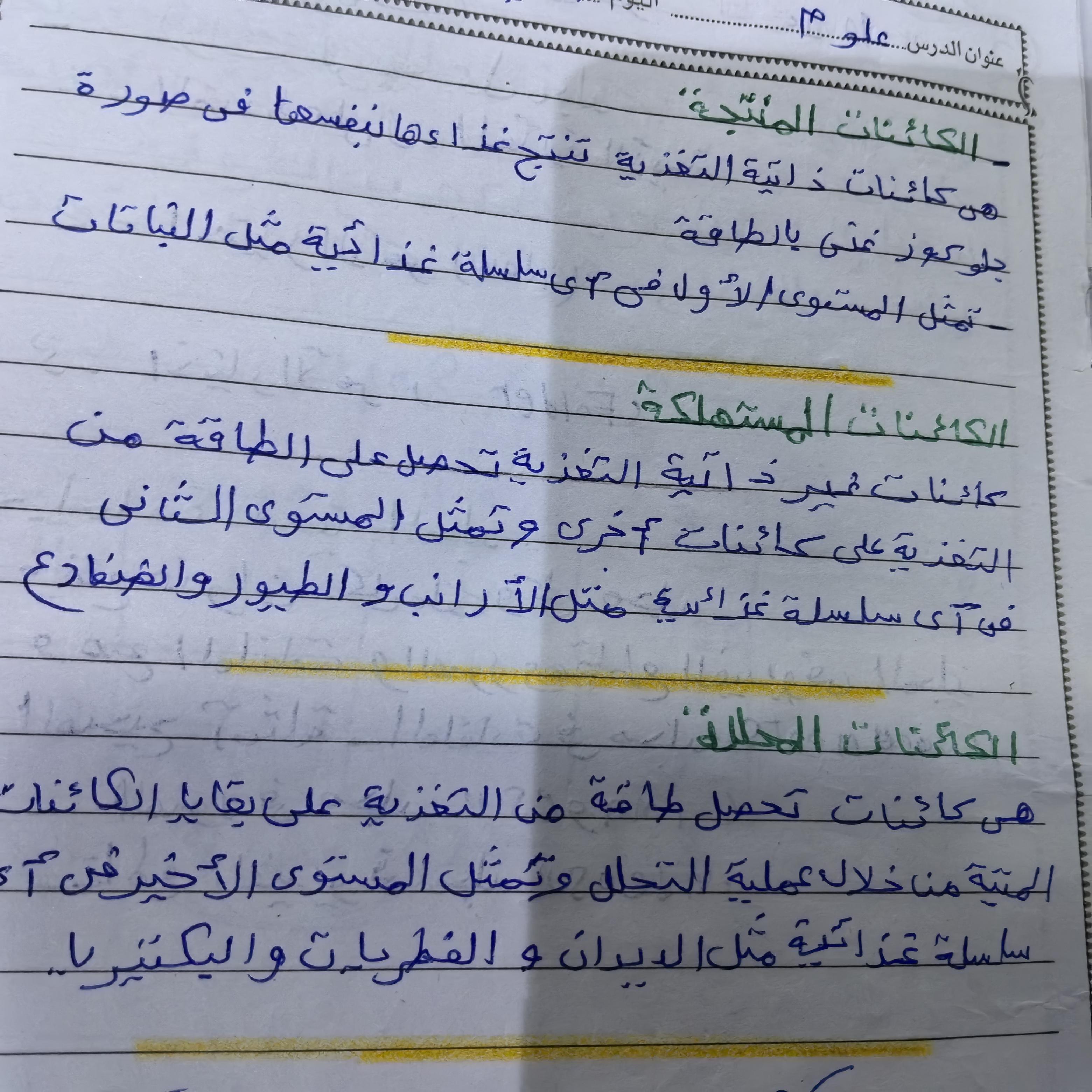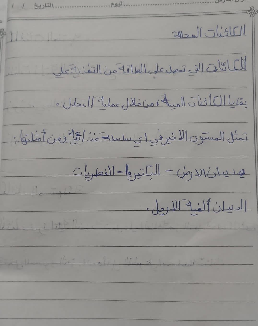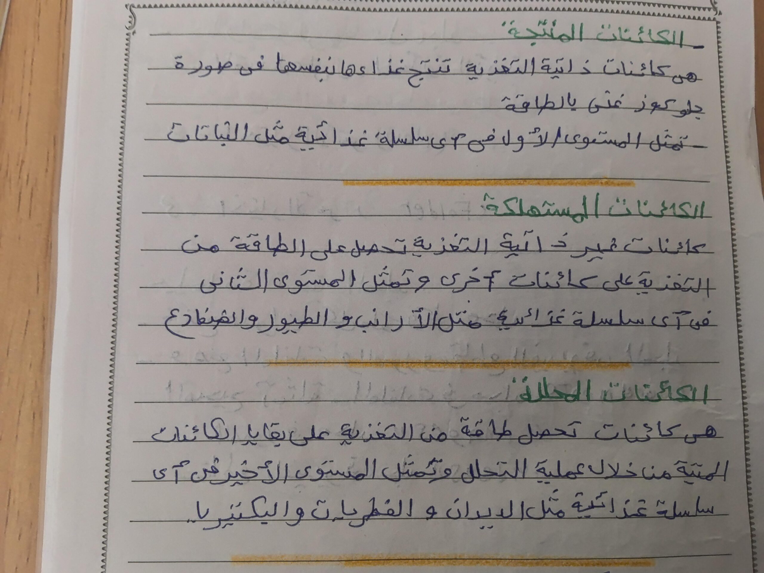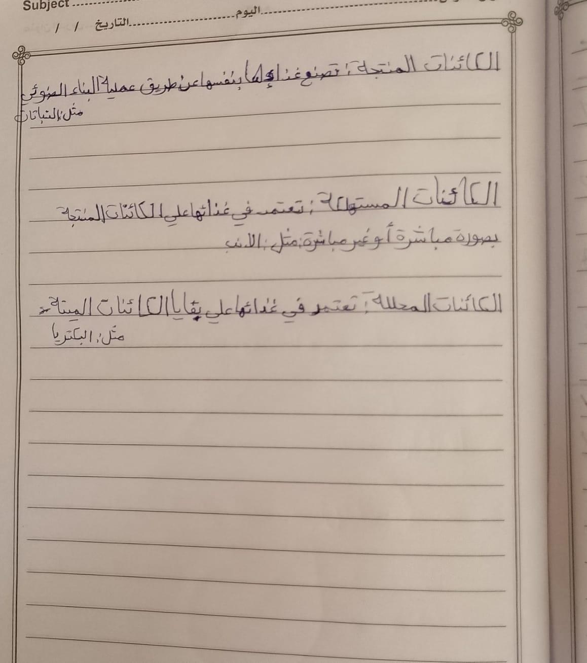 قارن بين الكائن المنتجة و المستهلكة و المحللة