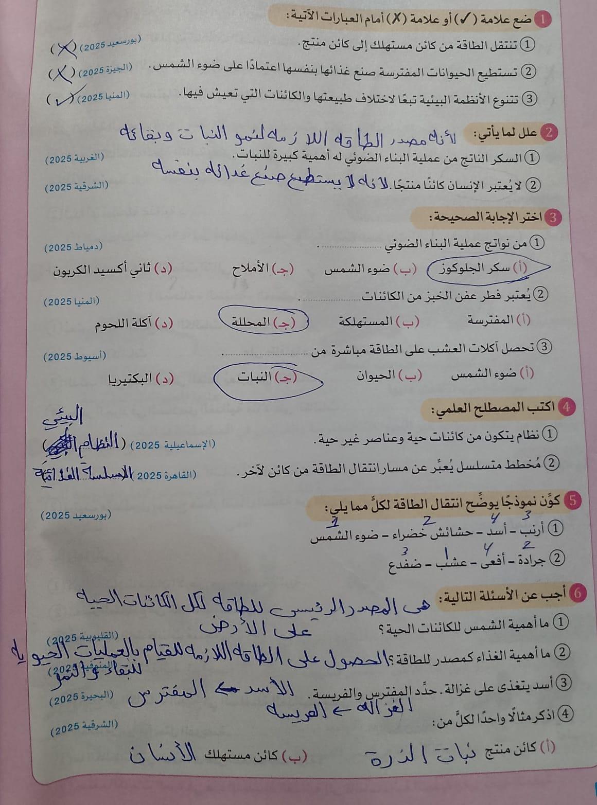 واجب العلوم شمس 💕 🍉 🌸 💮 💓 💗 💓 💞 ❤️🔥 🫀 💐 🌹