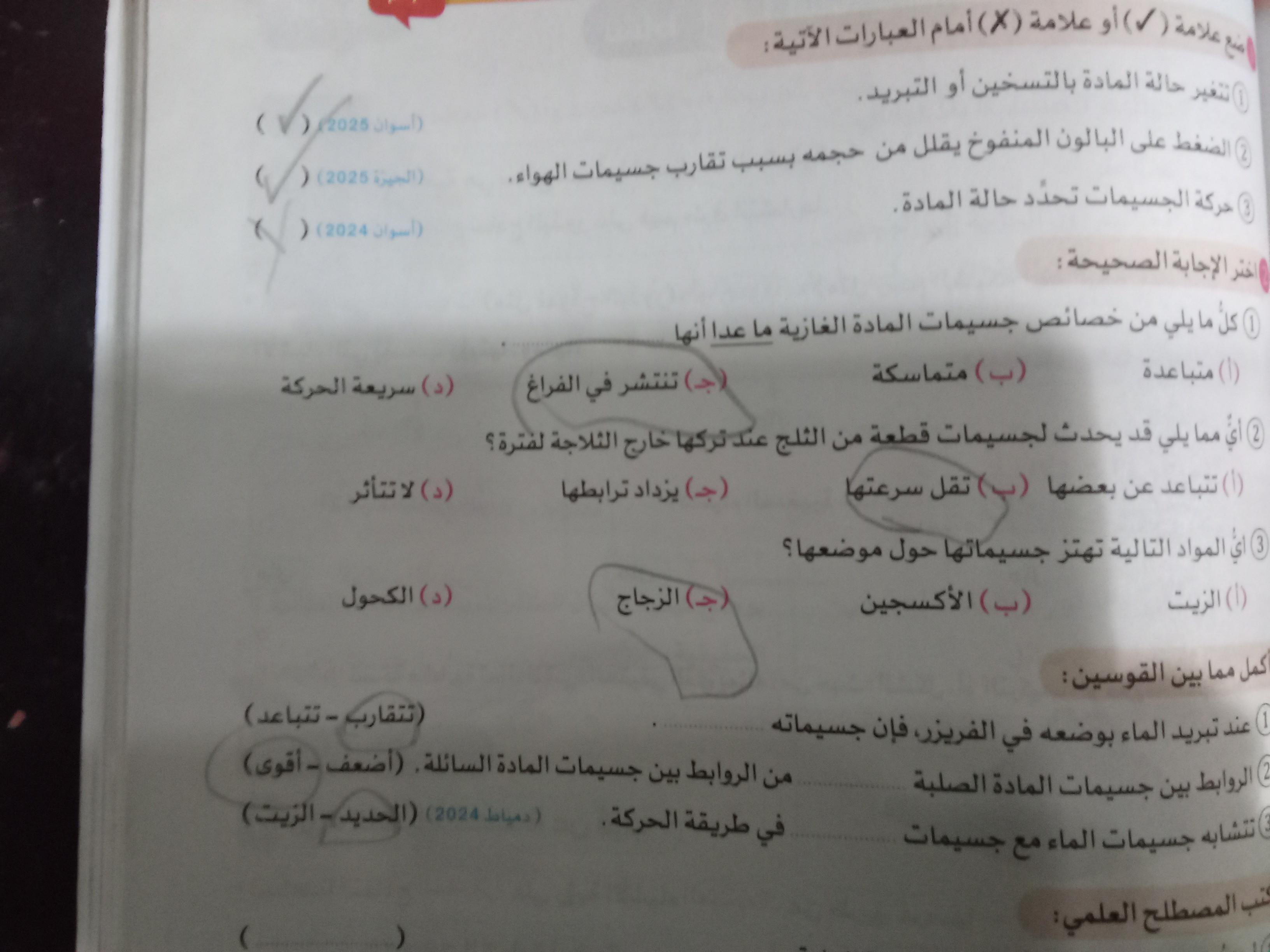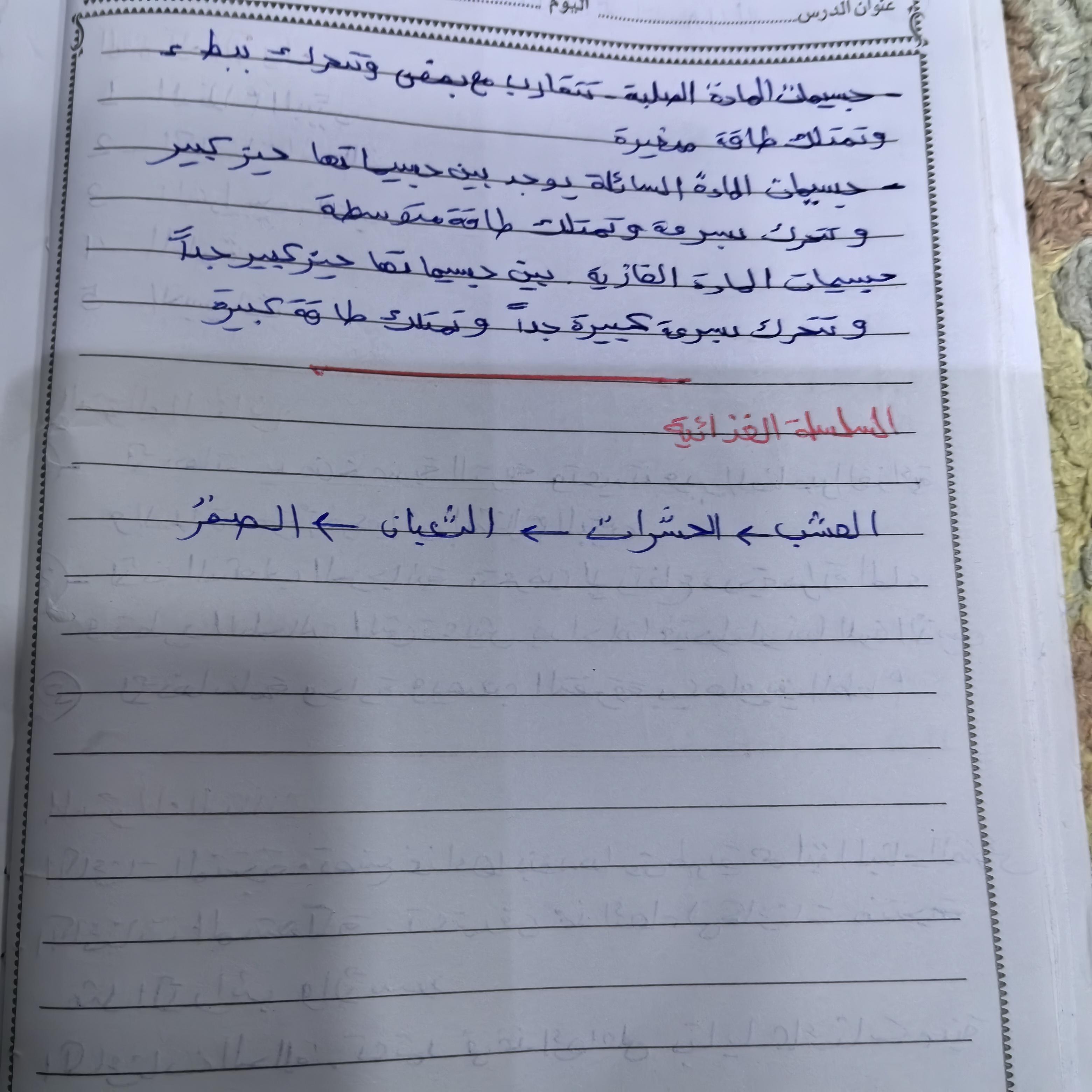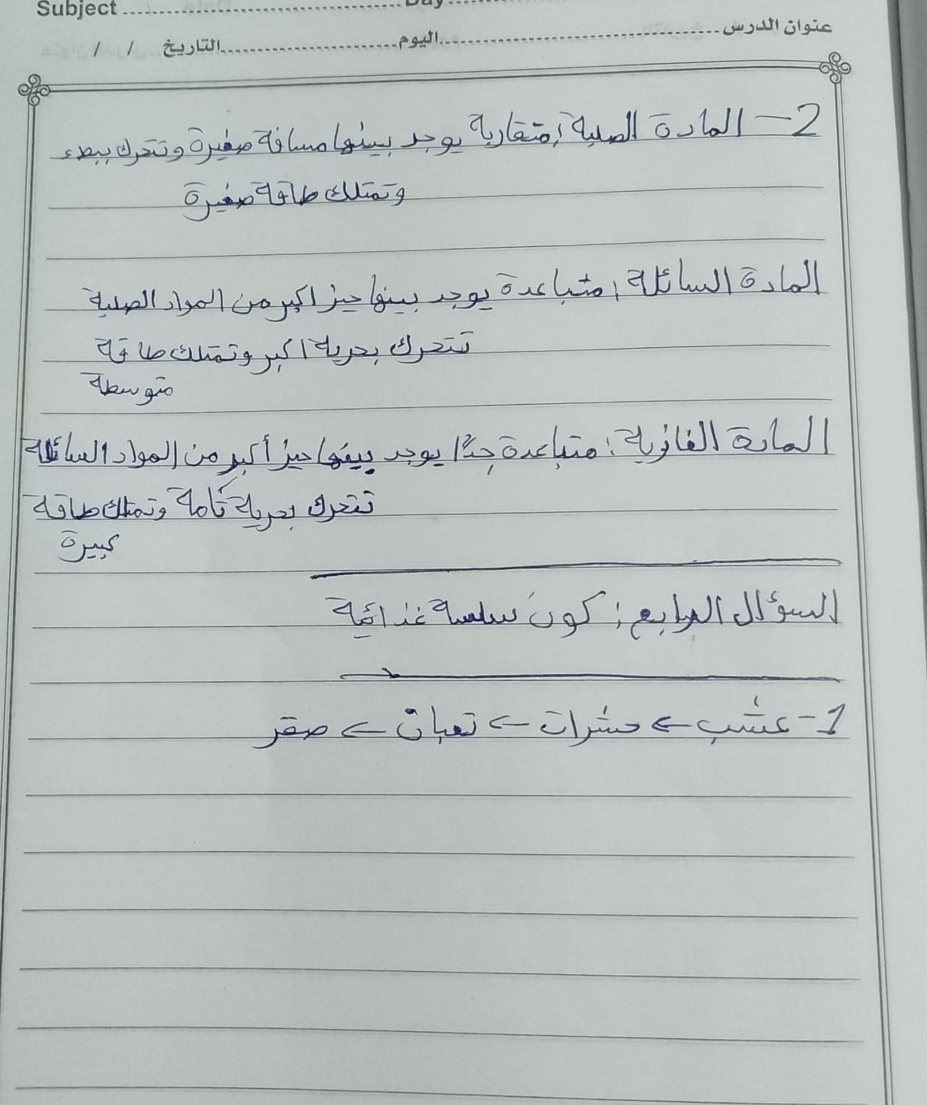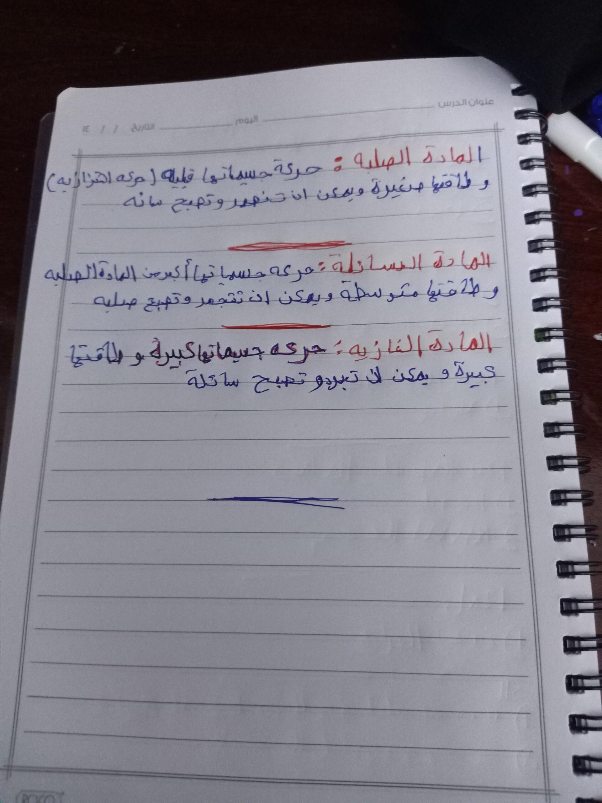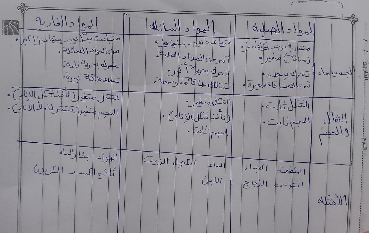 قارن بين المادة الصلبة و السائلة و الغازية من حيث