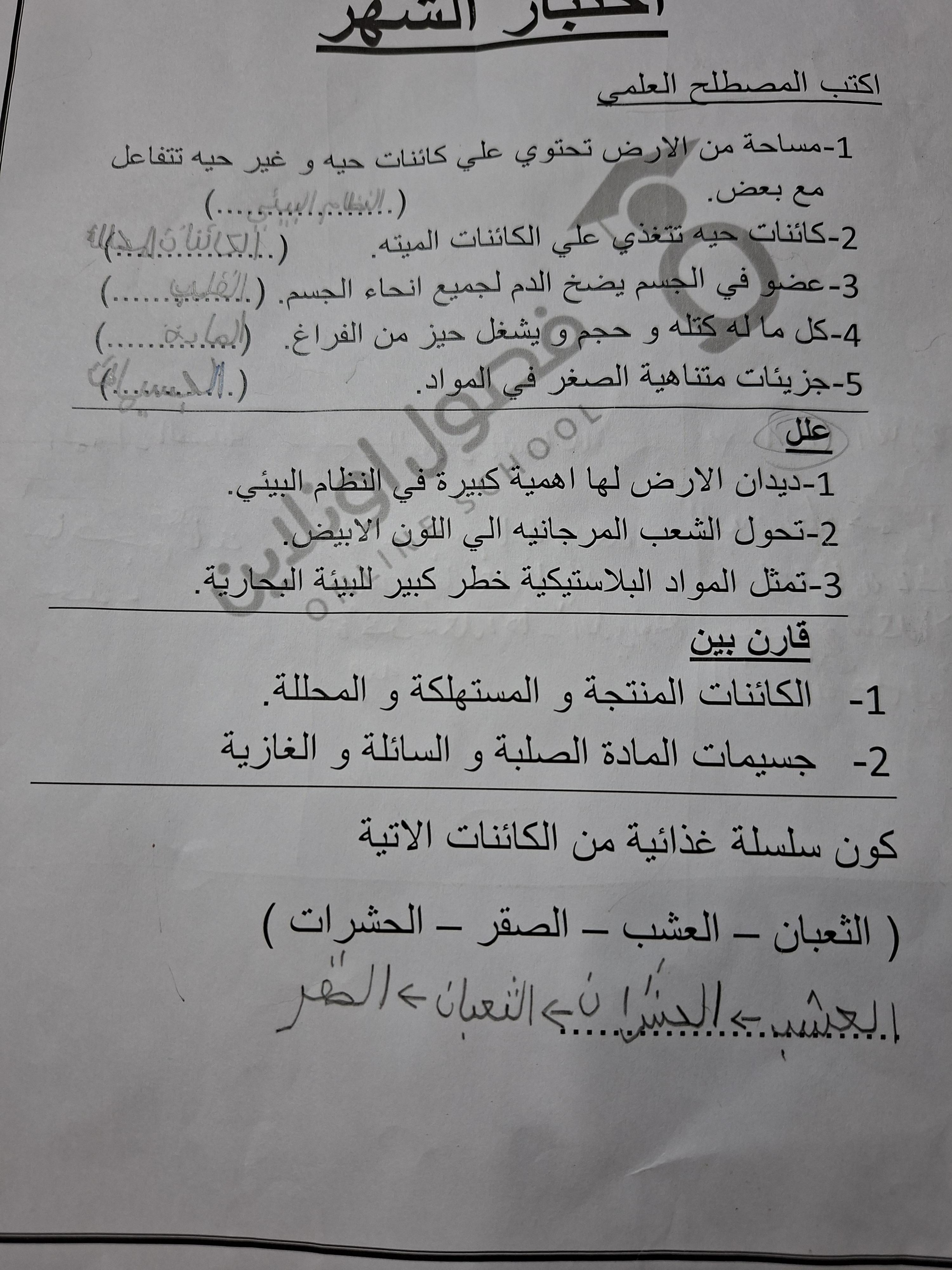 واجب العلوم 🪼 👊 💕 🪼 👊 💕 🪼